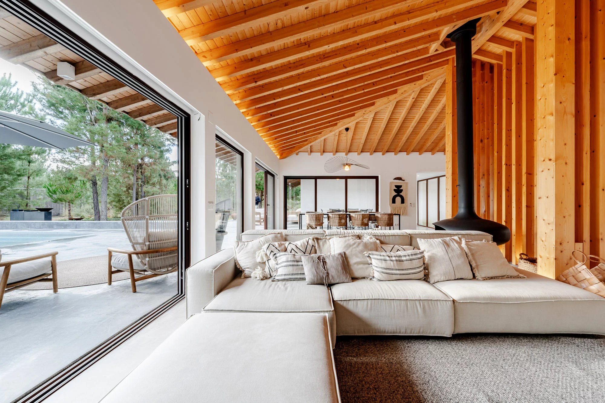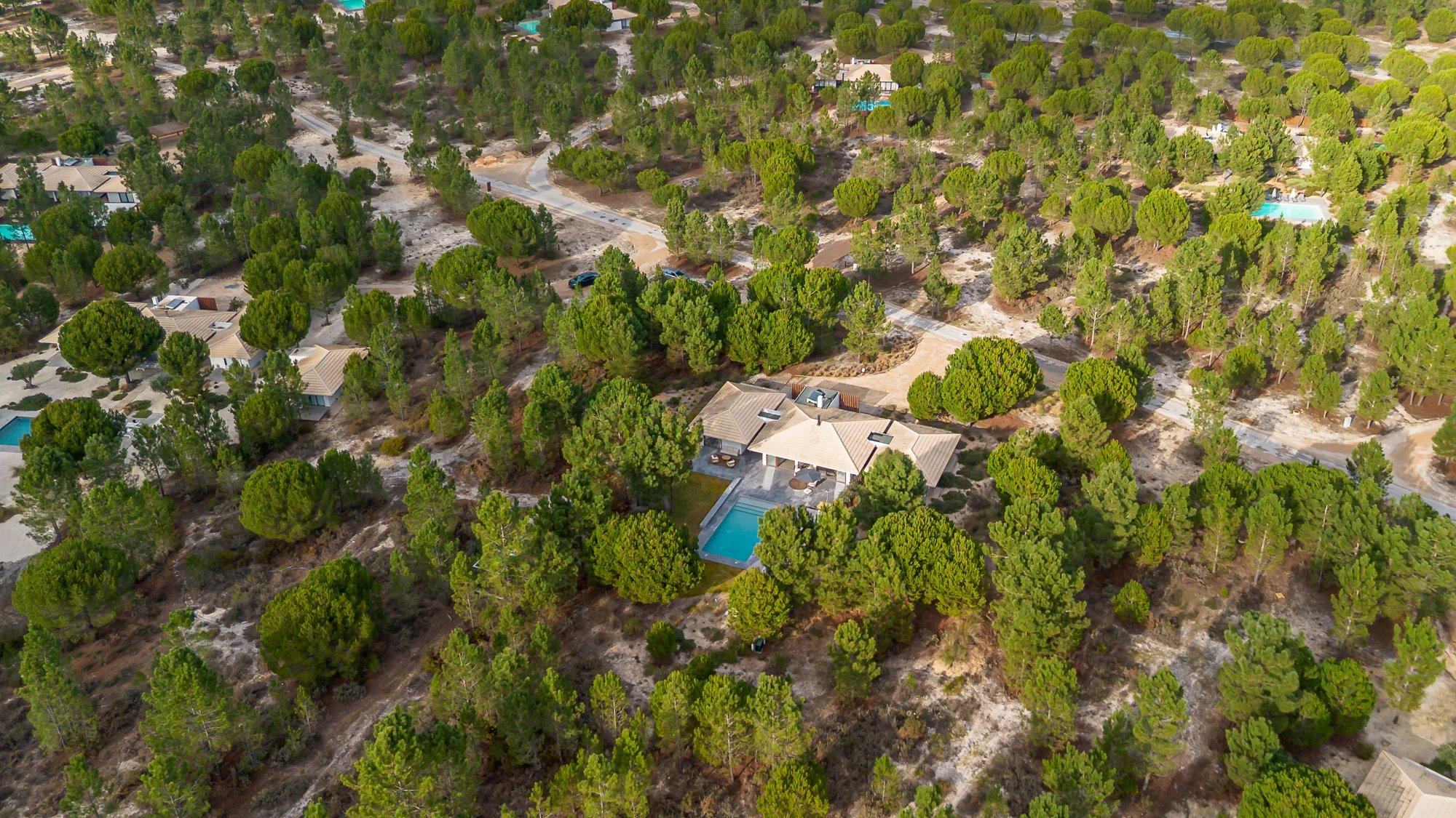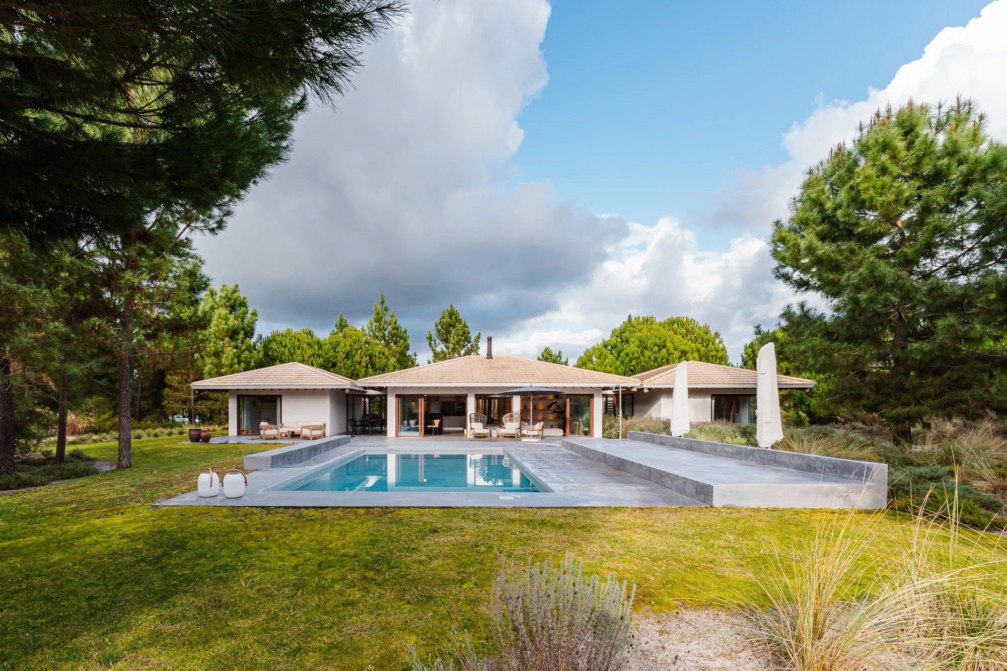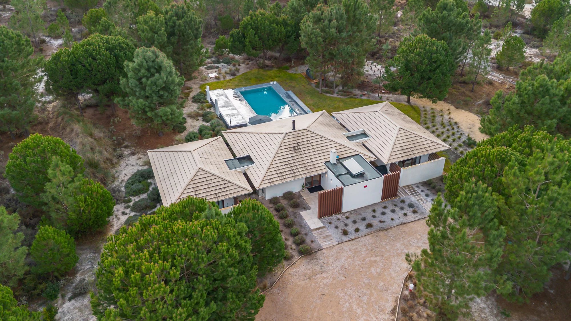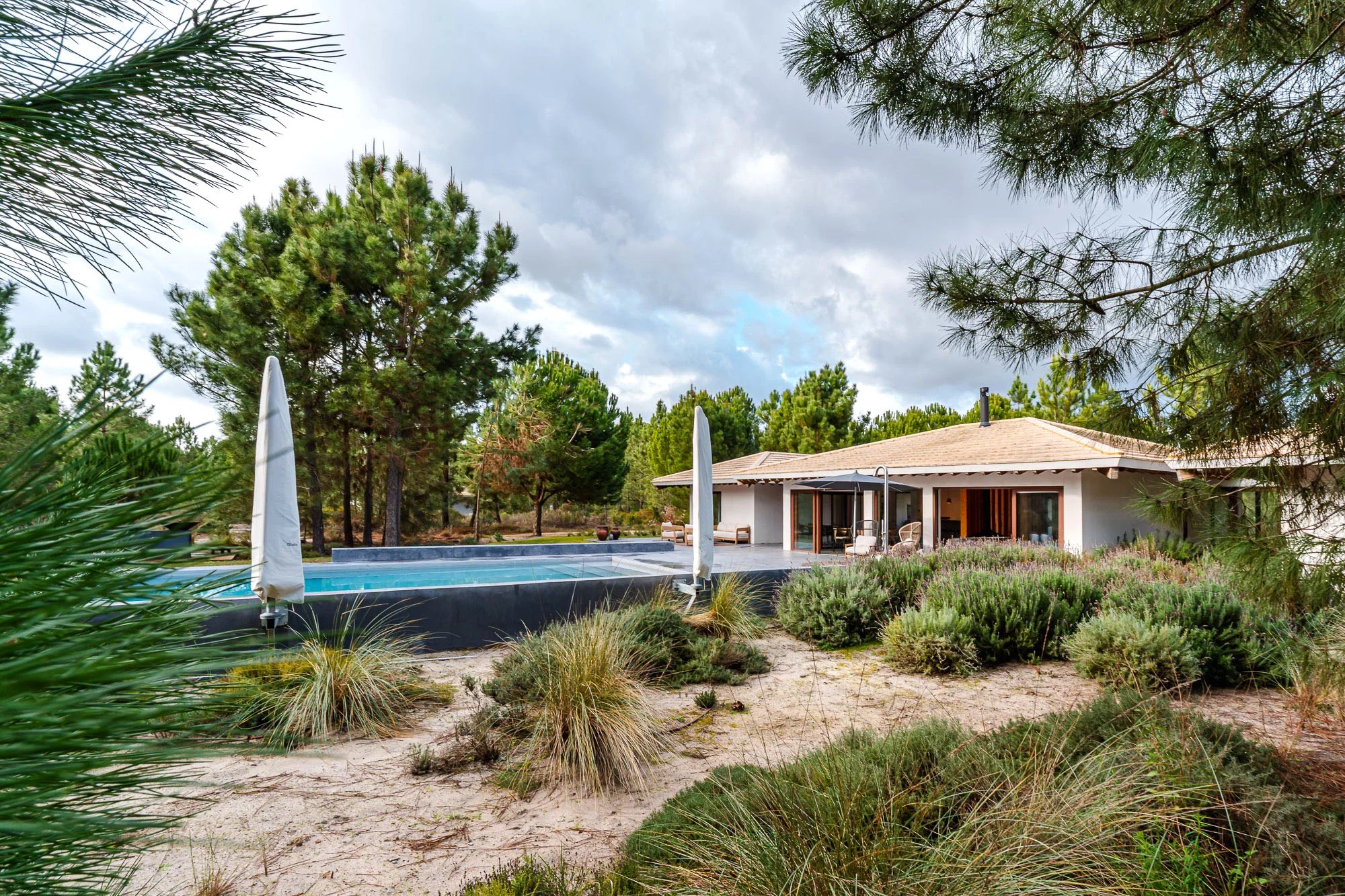 Villa mit 3 Schlafzimmern, 200 m² Bruttobaufläche, 980 m2 Grundstück, privatem Pool und privatem Garten, in der Siedlung Spatia Comporta in Muda gelegen.