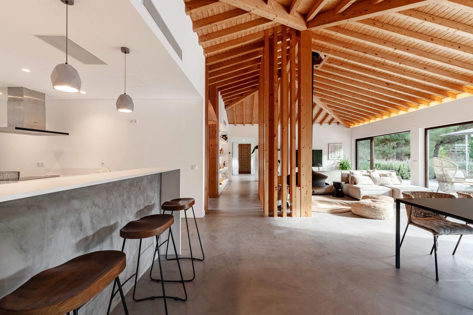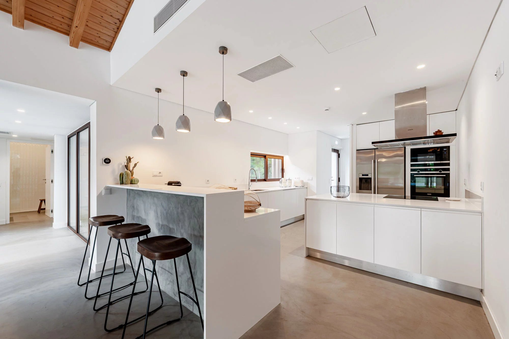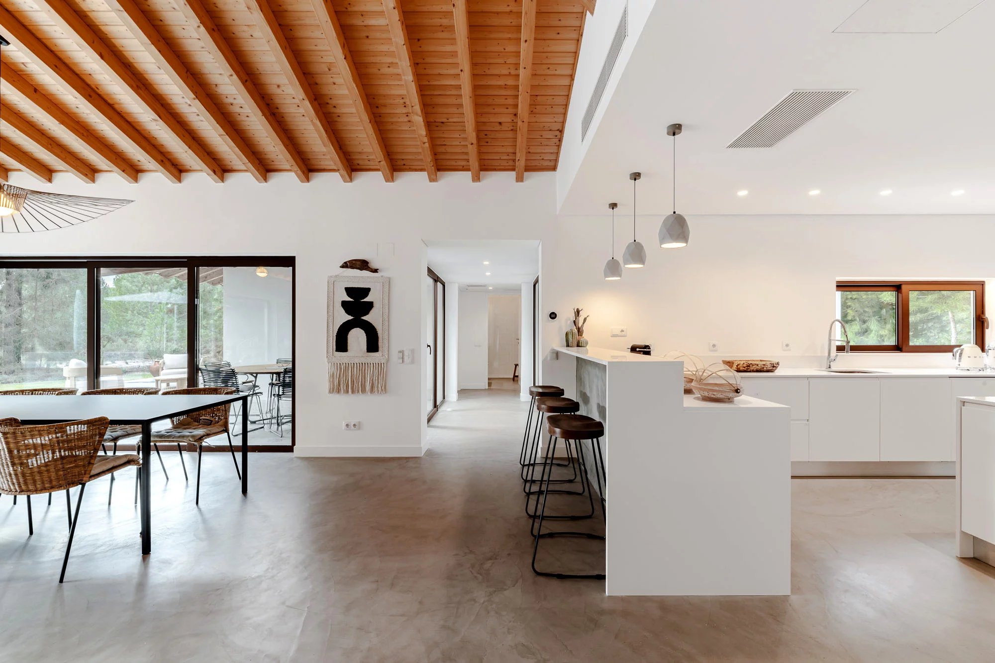 Das Haus besteht aus einer Suite und zwei Schlafzimmern, die sich ein Badezimmer teilen. Der Sozialbereich umfasst ein offenes Wohn- und Esszimmer, eine voll ausgestattete Küche, eine Waschküche und ein Gästebad. Es wird voll möbliert und ausgestattet verkauft.
