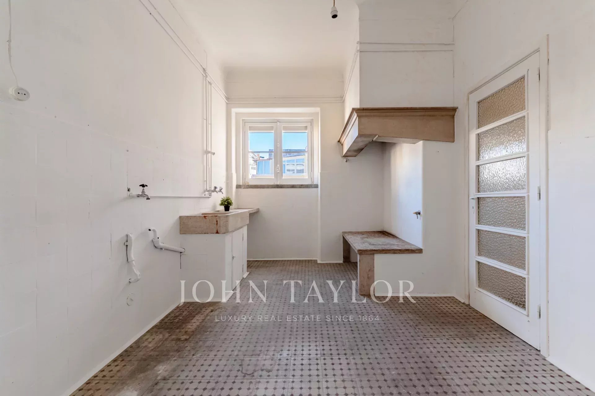 Die Innenräume sind sehr großzügig und bieten mit einem 8 m² großen Abstellraum ein hervorragendes Potenzial für eine individuelle Gestaltung: entweder durch eine zeitgemäße Renovierung mit modernen Linien oder durch die Wiederherstellung des ursprünglichen lissabonischen Charakters und des Charmes der klassischen Details.