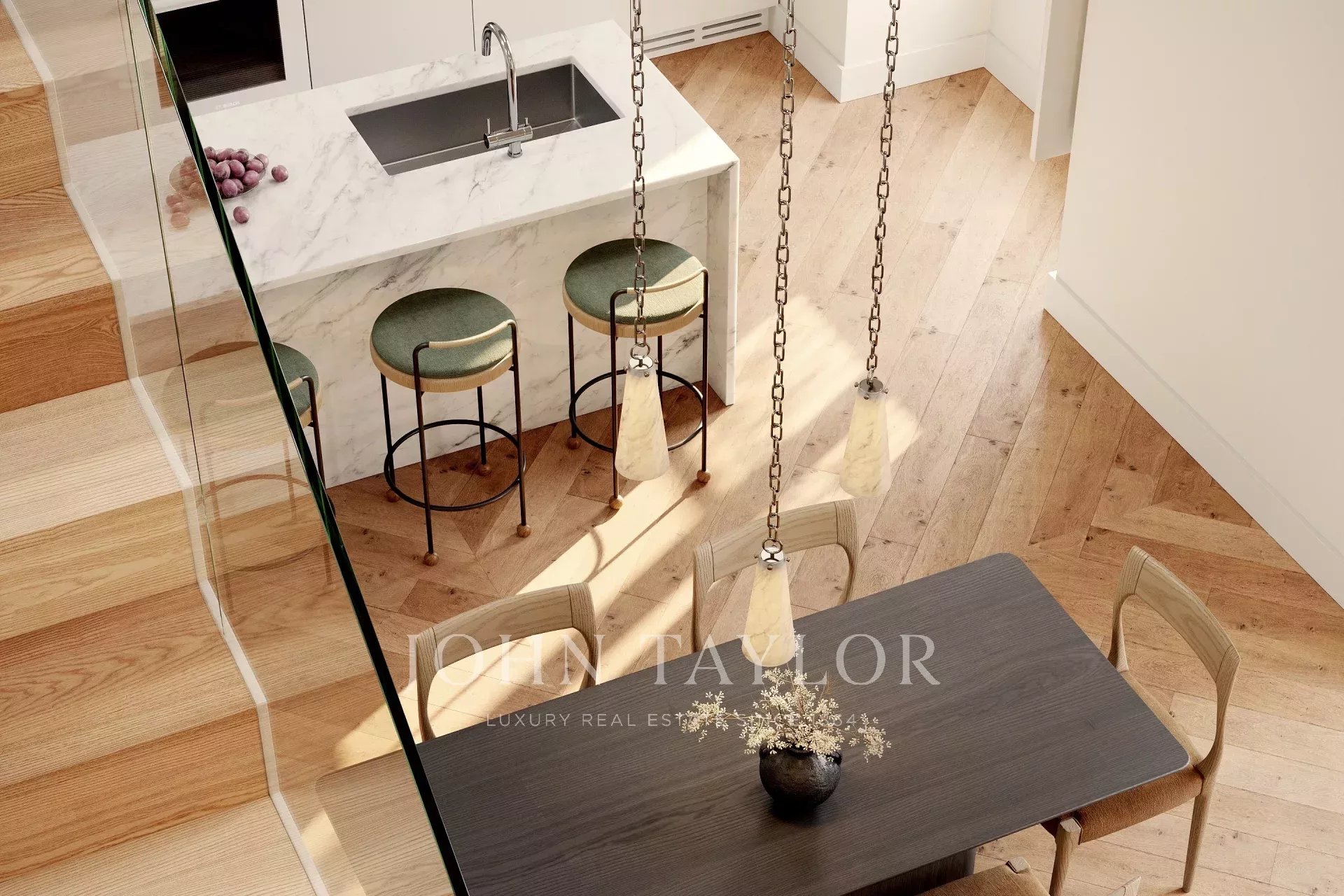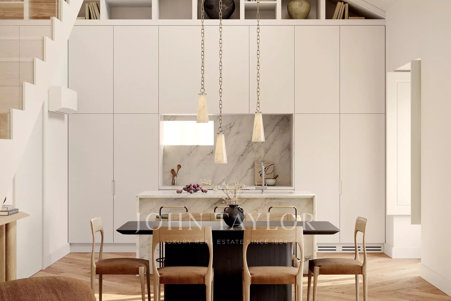 Zu den hochwertigen Ausstattungsmerkmalen gehören Massivholzböden, Marmorbäder, neutrale Farbtöne und originale Details, die im gesamten Gebäude erhalten sind. Die Aufteilung ist sowohl praktisch als auch elegant und eignet sich sowohl für einen Vollzeitwohnsitz als auch für einen Kurzzeitaufenthalt.