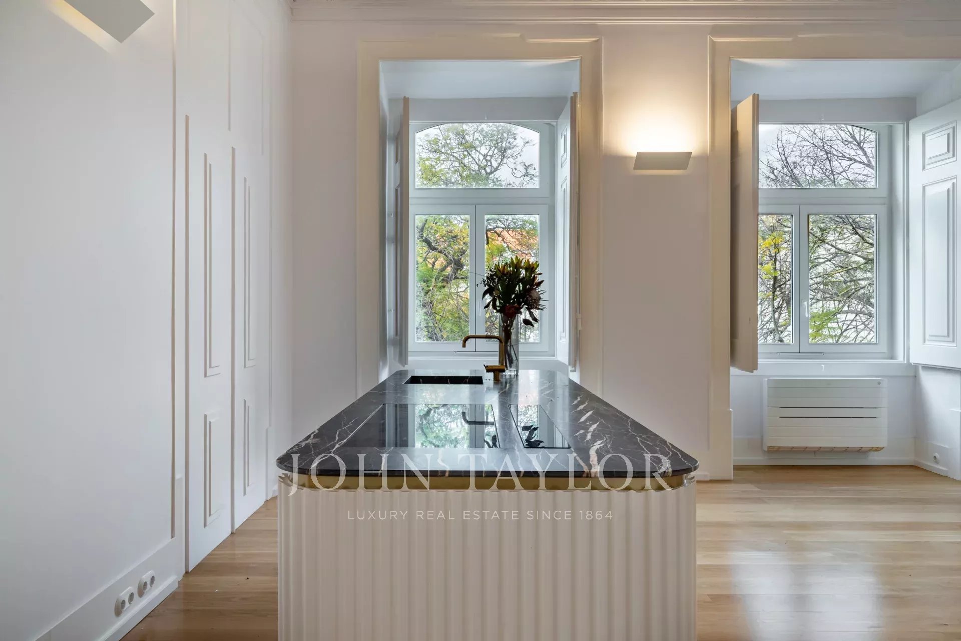 In der 2. Etage eines charmanten pombalischen Gebäudes wurde diese prächtige Wohnung komplett renoviert und mit hochwertigen Materialien ausgestattet. Mit hohen Decken, großen Eingängen, 4 Schlafzimmern, 2 en suite, einem Büro und einem unverbaubaren Blick auf einen charmanten Platz und ein historisches Monument.