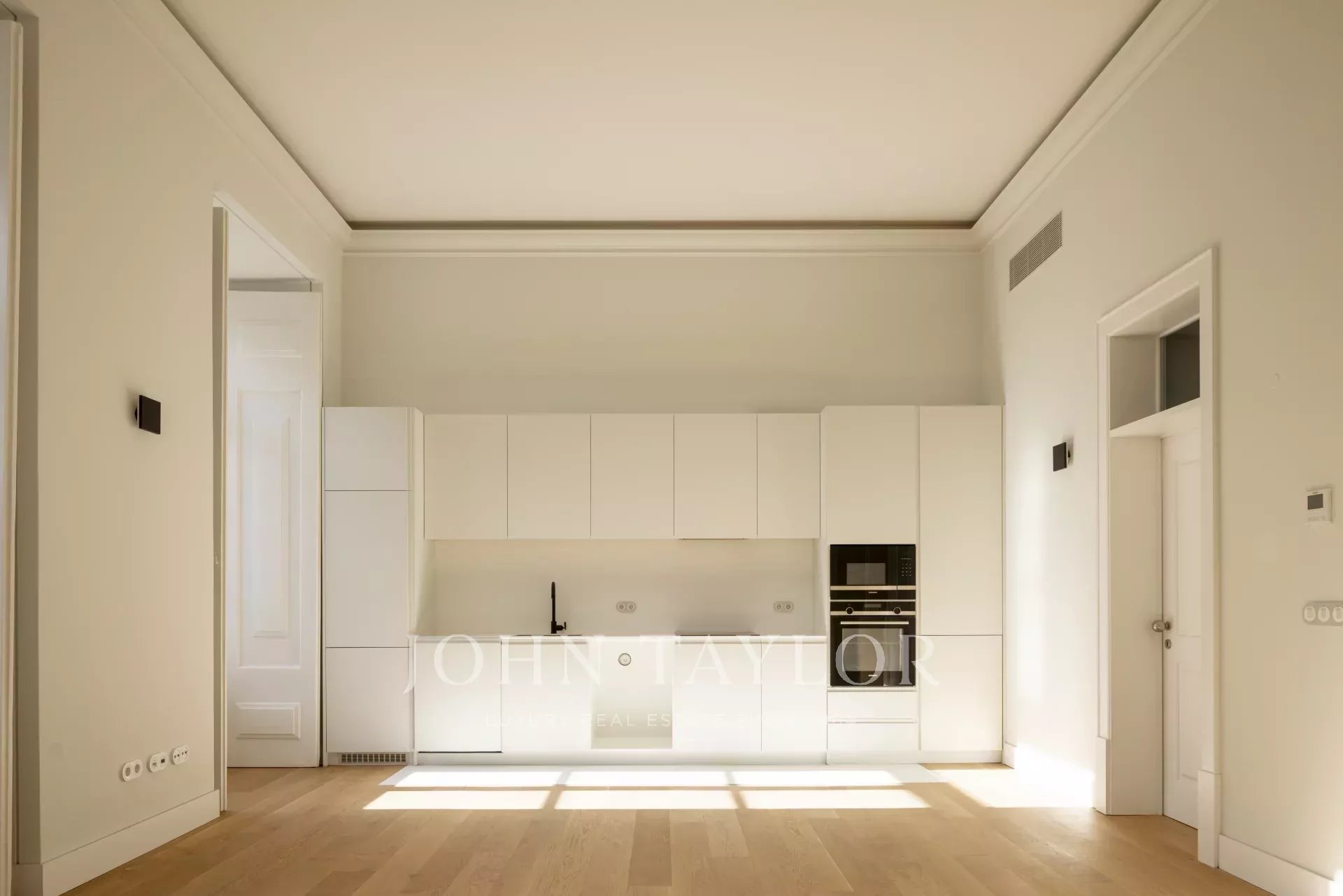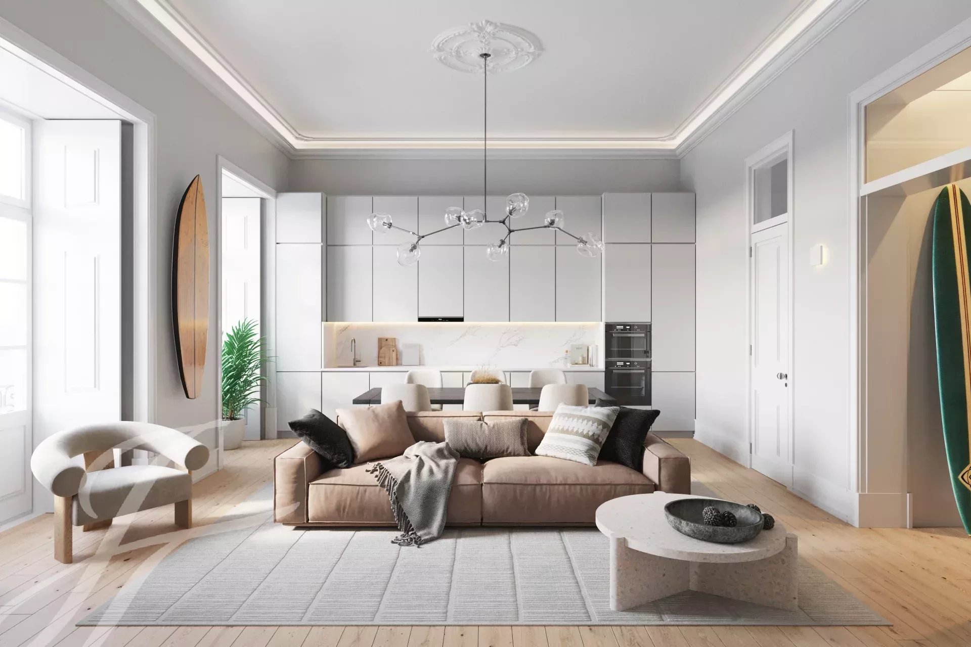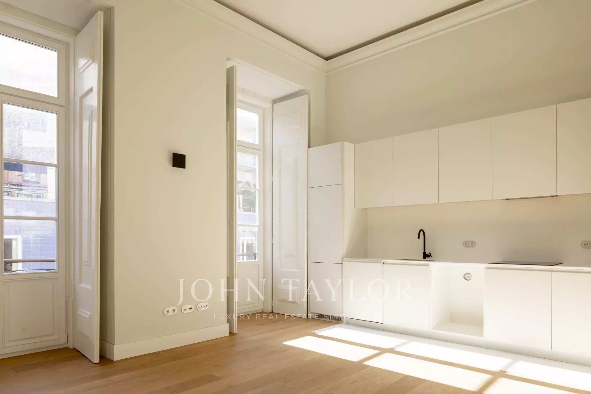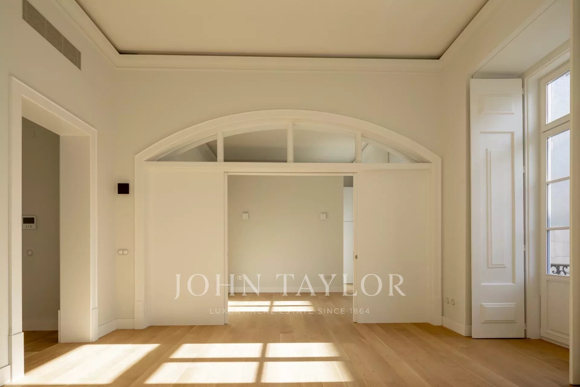 Die Wohnung ist mit hochwertigen Materialien und luxuriösen Annehmlichkeiten ausgestattet, die ein anspruchsvolles und zugleich komfortables Wohnumfeld schaffen. Große Fenster sorgen für viel natürliches Licht und einen bezaubernden Blick auf die historischen Straßen von Lissabon.