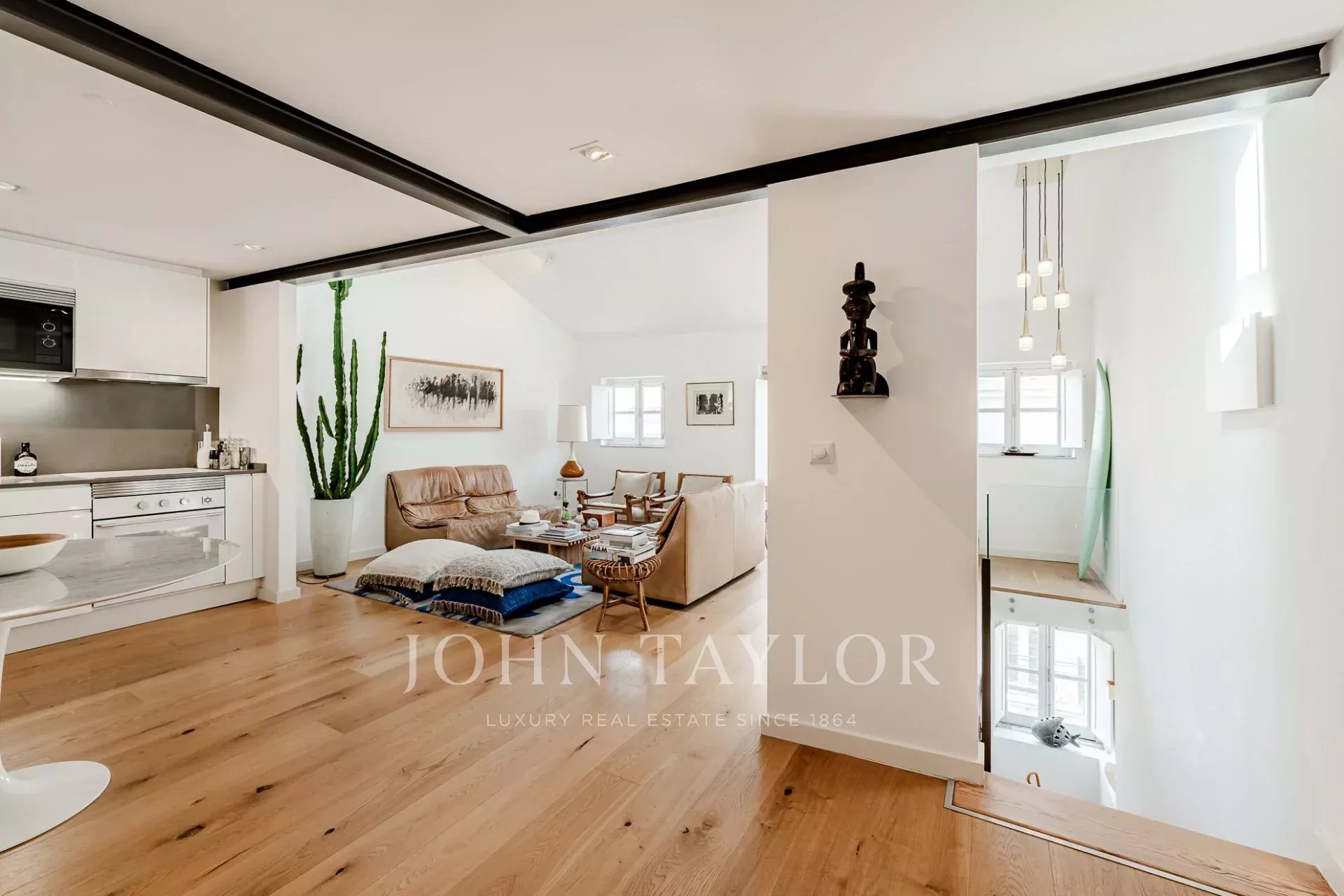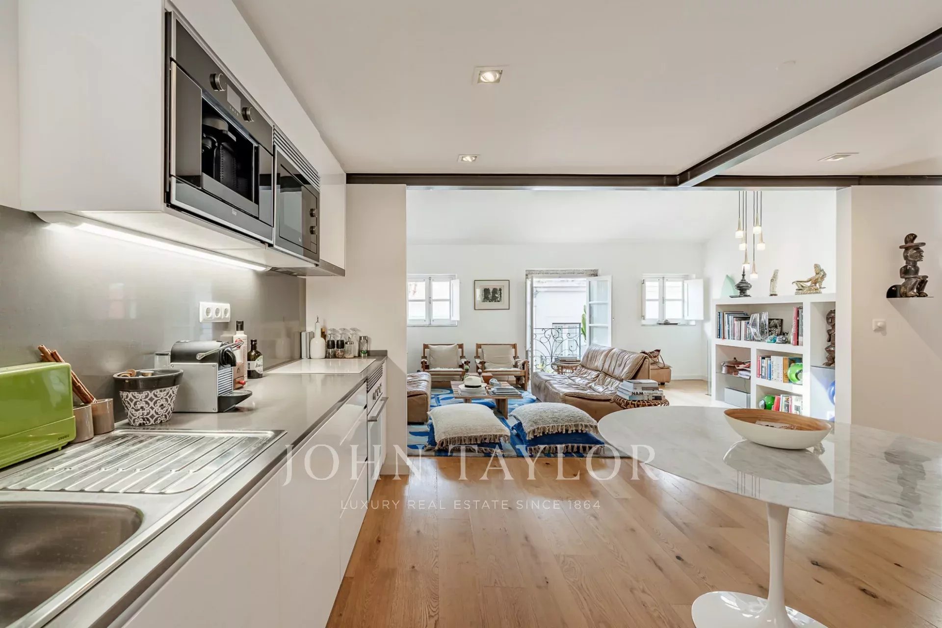 Diese vollständig renovierte Maisonette-Wohnung befindet sich im obersten Stockwerk eines klassischen Gebäudes im Herzen des Viertels Santa Catarina. Sie verfügt über zwei Schlafzimmer und bietet eine harmonische Mischung aus historischem Charme und moderner Eleganz.
