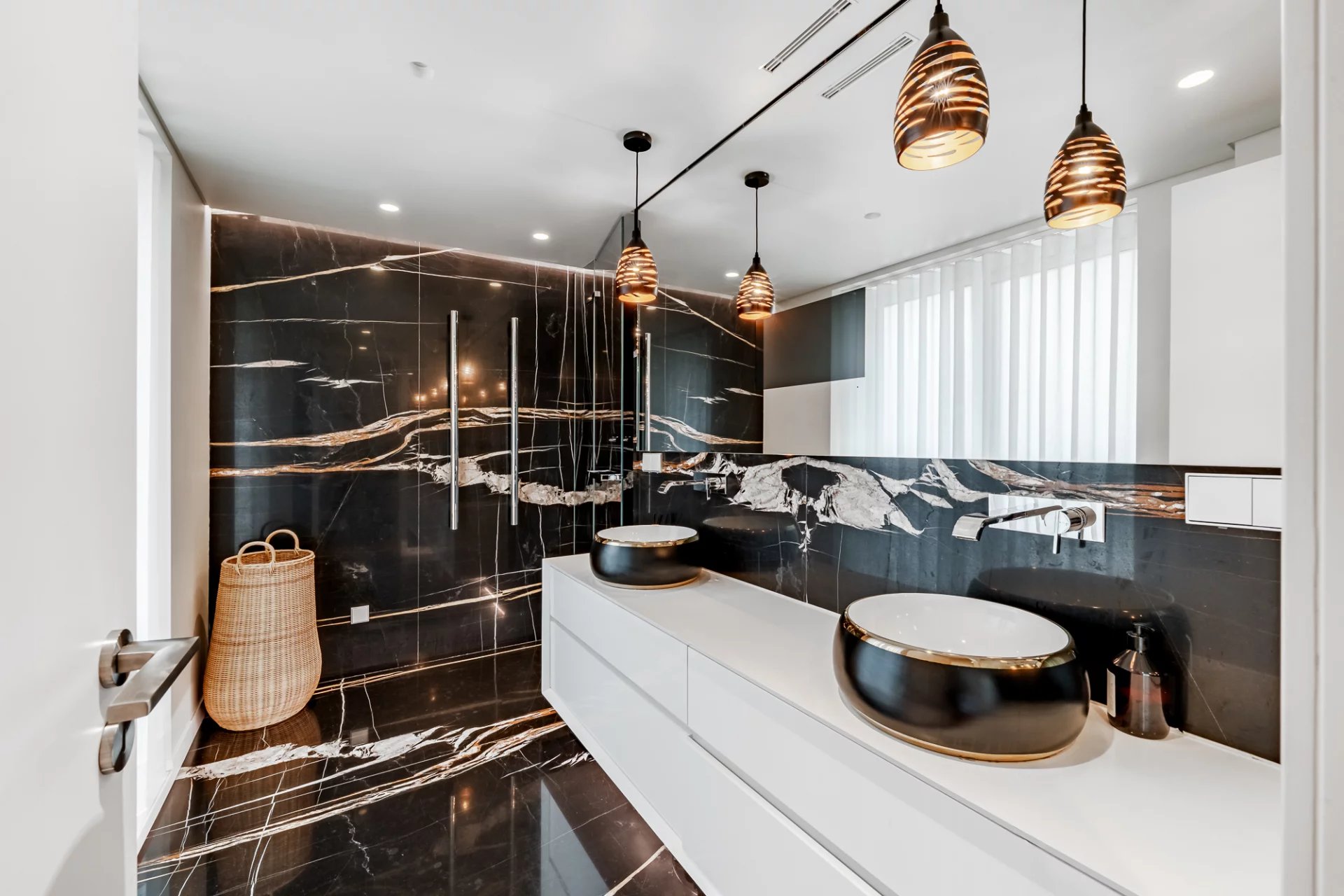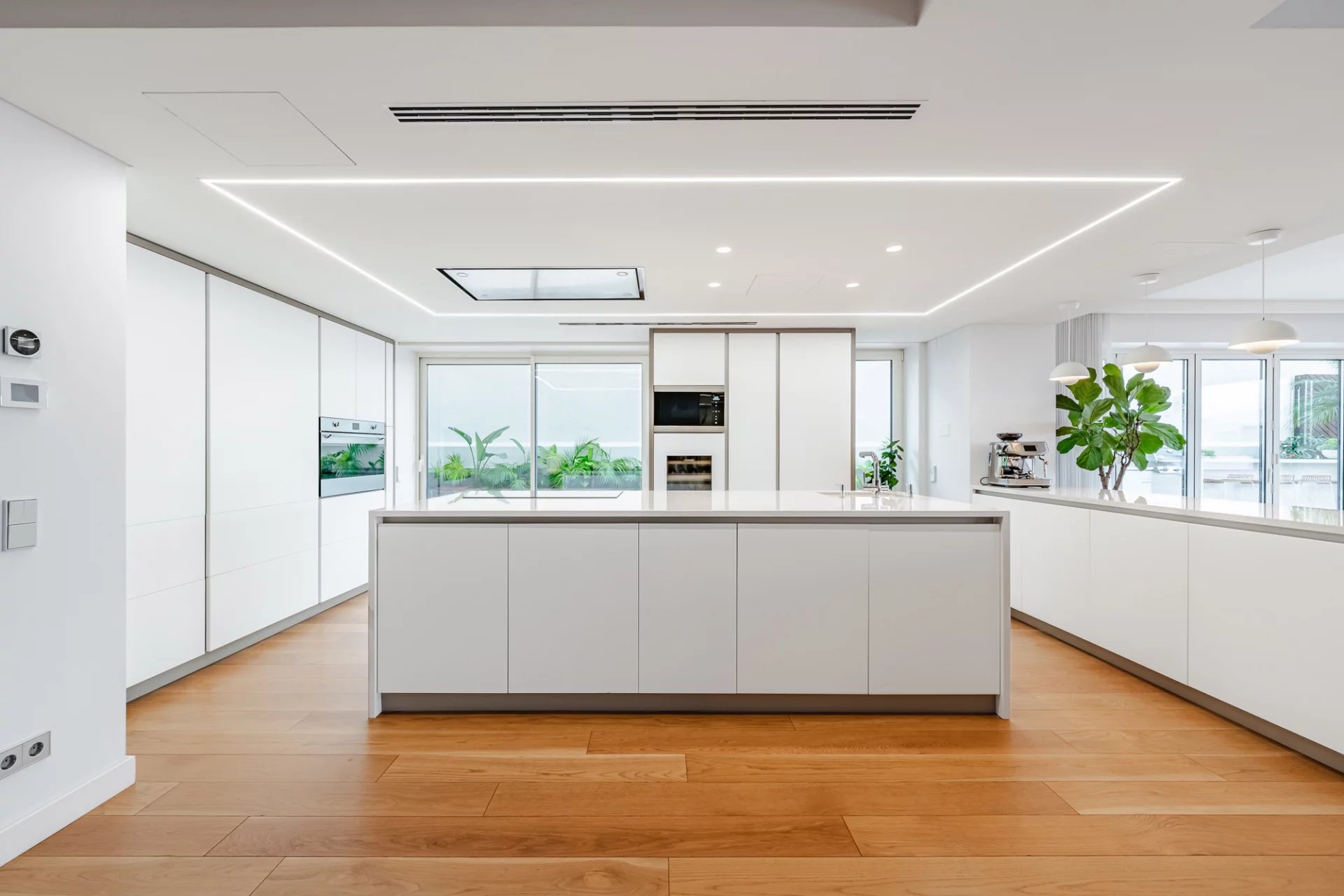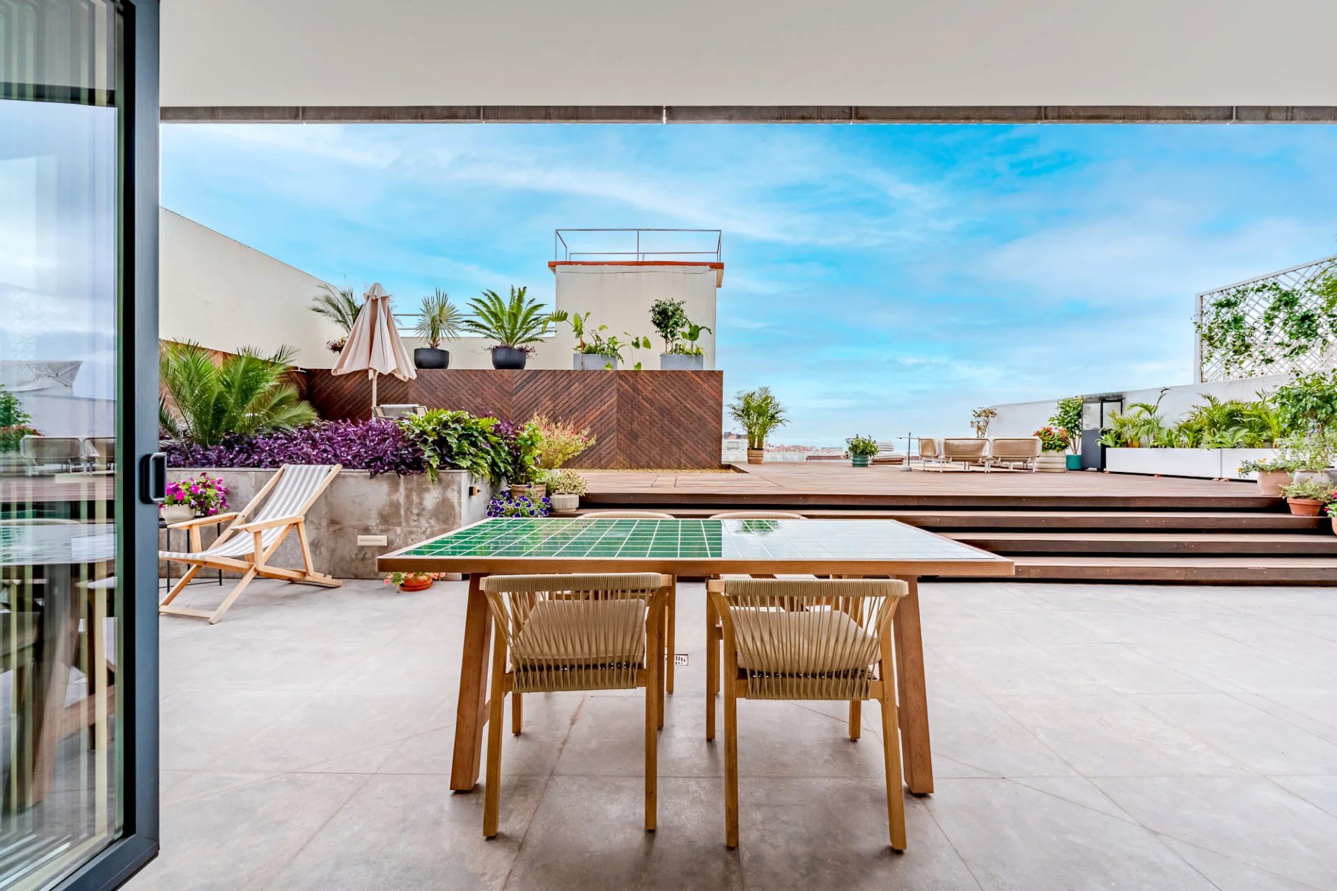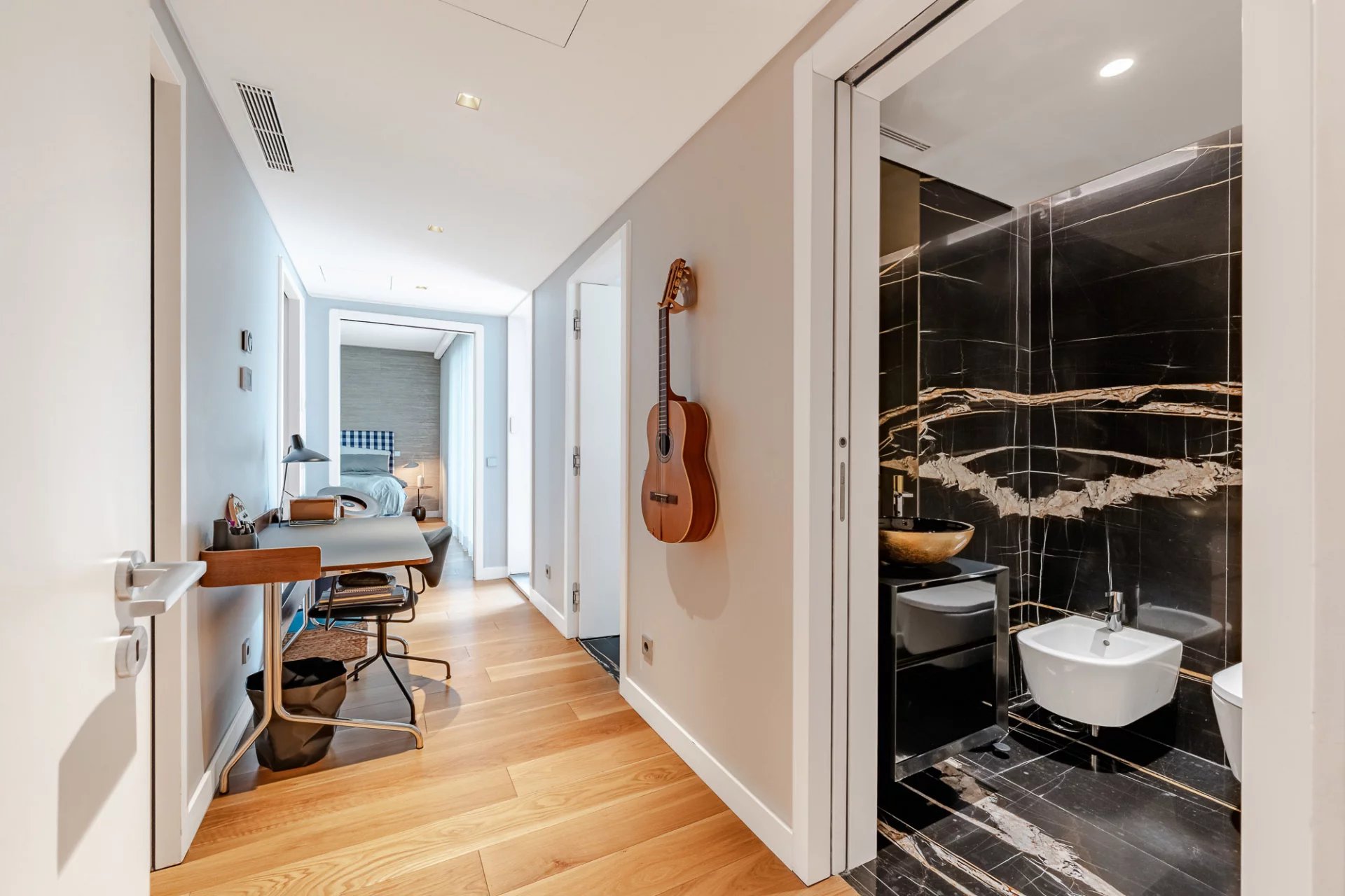 Die Wohnung verfügt über fünf Schlafzimmer mit eigenem Bad, einen großzügigen, offenen Wohn- und Essbereich und eine voll ausgestattete Küche. Eine zweite Küche auf der Terrasse ist ideal, um im Freien zu speisen und Gäste mit Blick auf den Fluss zu unterhalten. Vom Boden bis zur Decke reichende Fenster erfüllen die Innenräume mit natürlichem Licht und bieten eine ständige Sichtverbindung zur Terrasse und der umliegenden Landschaft.