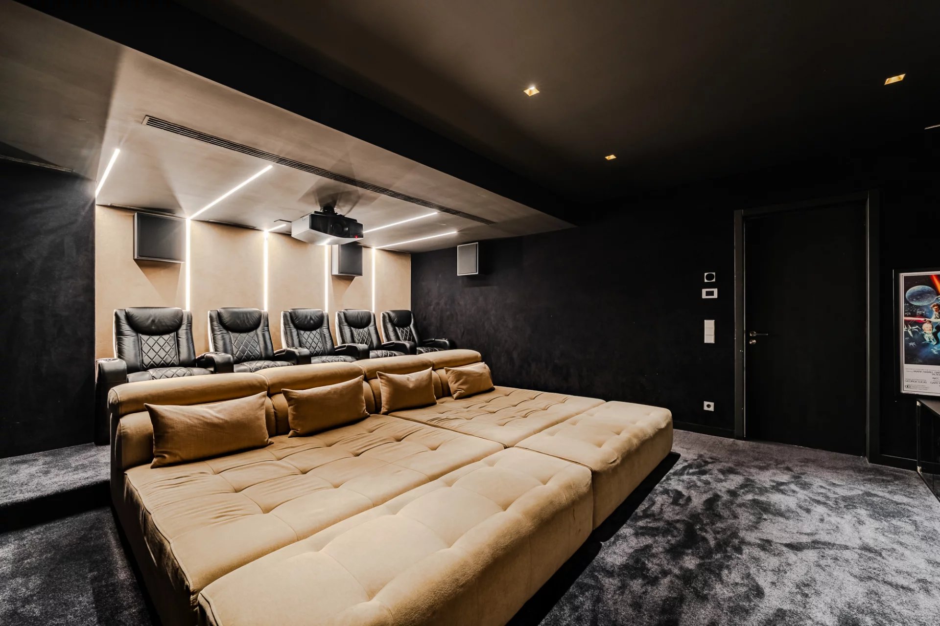Zu den weiteren Annehmlichkeiten gehören ein privater, schallisolierter Kinoraum, ein Dampfbad und ein Swimmingpool, der so positioniert ist, dass er die Aussicht auf den Fluss optimal nutzt.