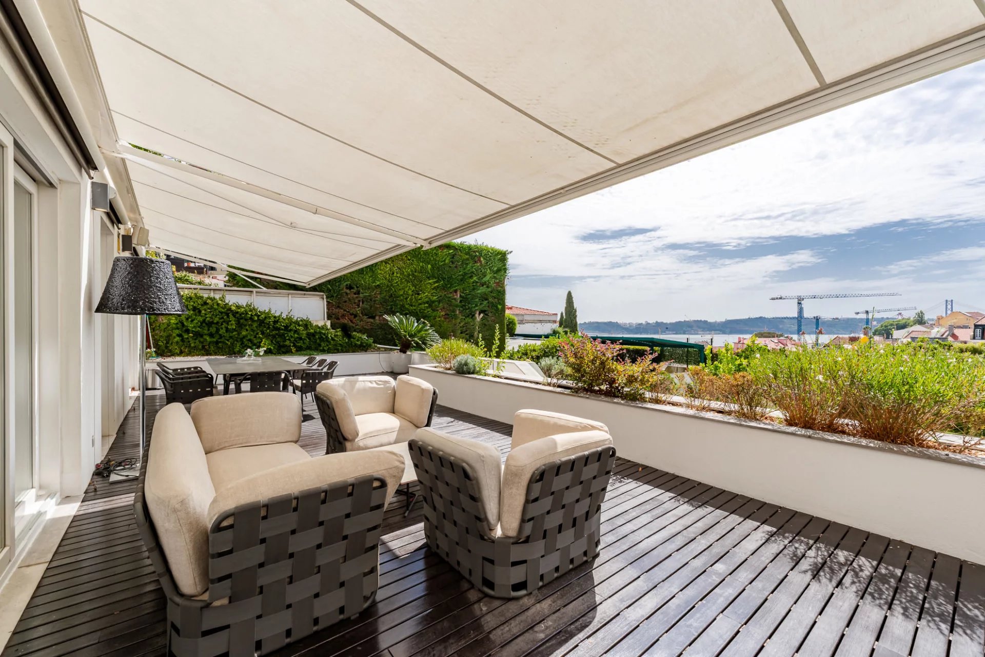 Duplex-Wohnung mit 3+2 Schlafzimmern, 300 m² privater Bruttofläche und 171 m² Außenfläche, mit 4 Parkplätzen und einem Abstellraum, in privilegierter Lage in Lapa mit atemberaubendem Blick auf den Fluss Tejo und die Stadt Lissabon.