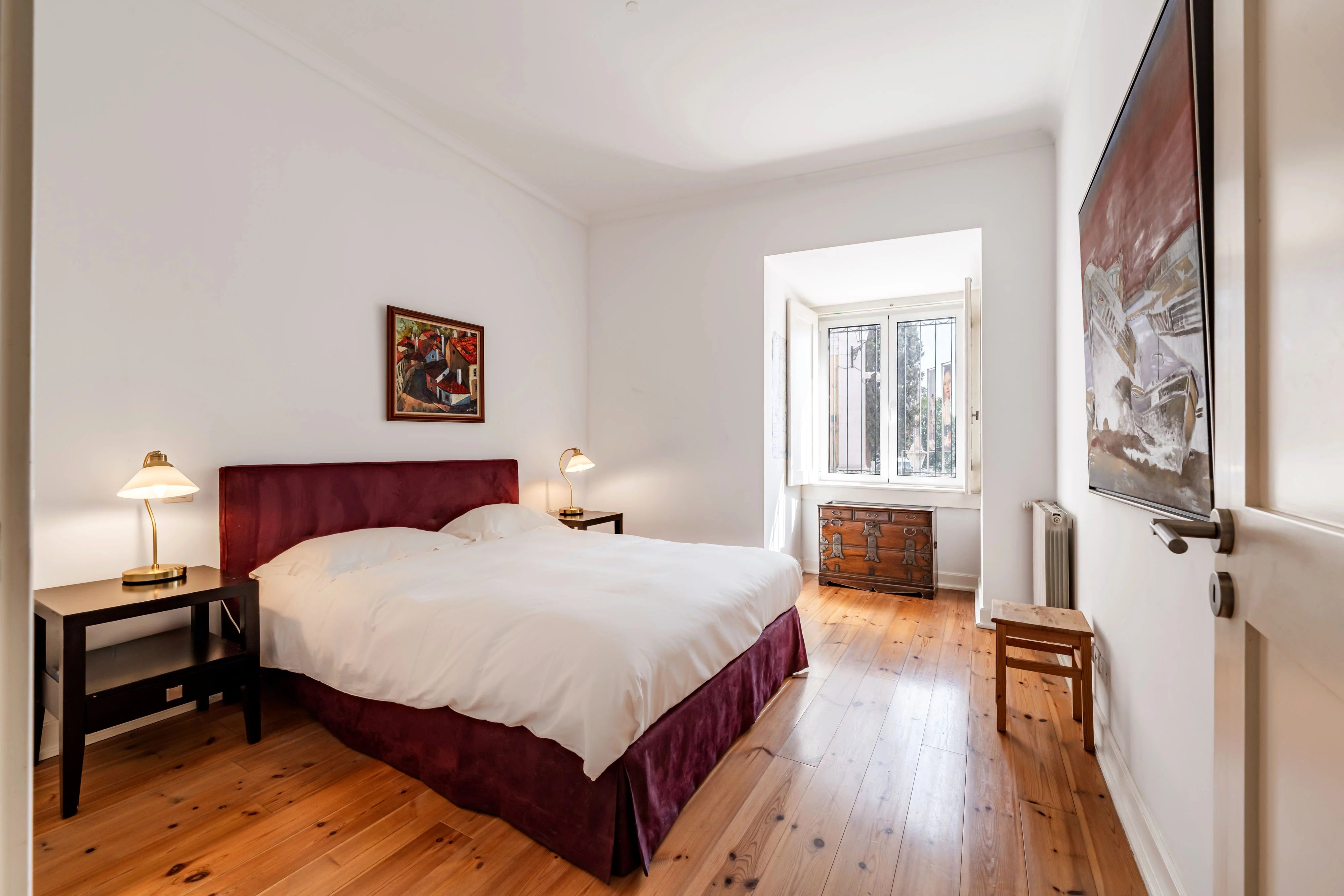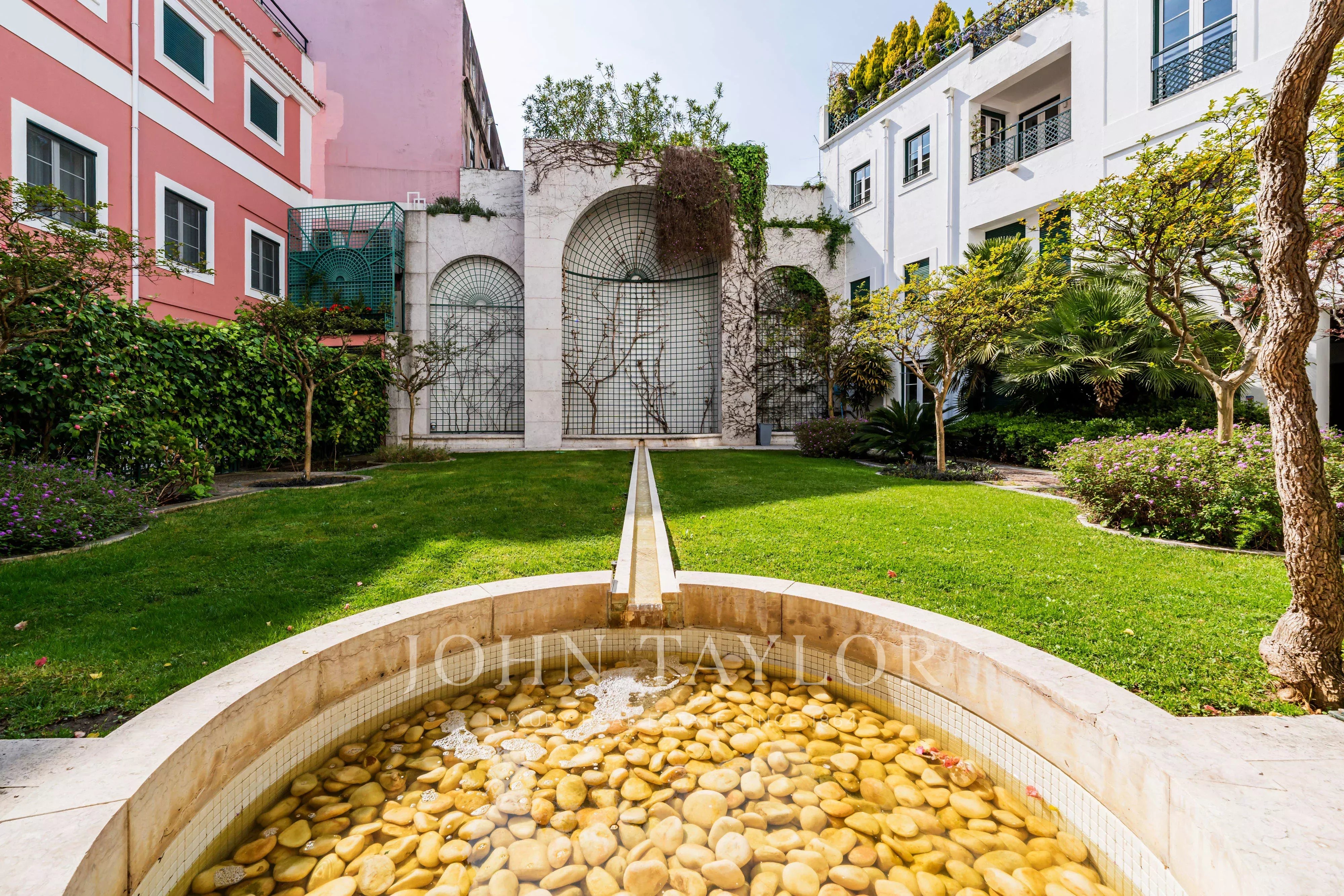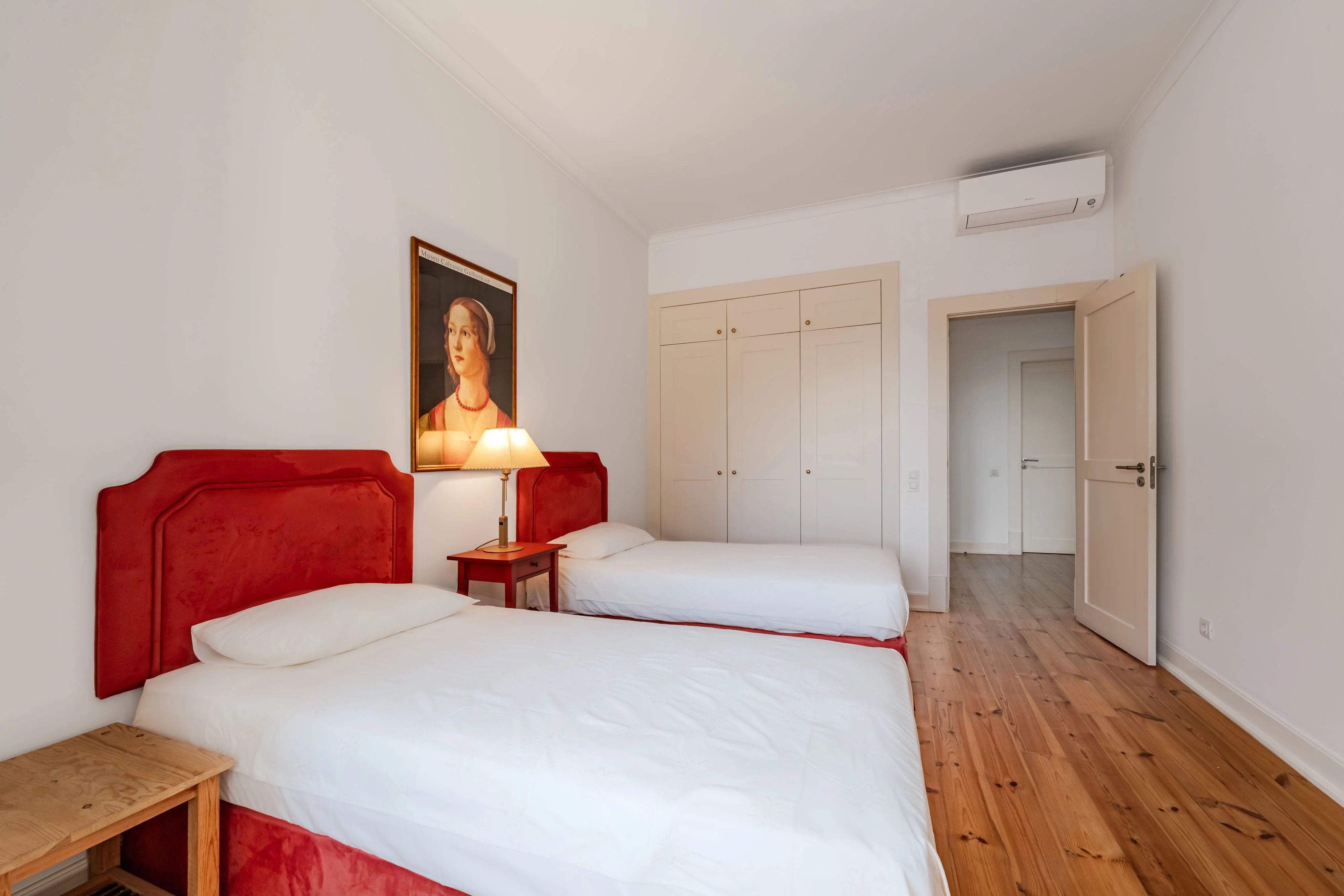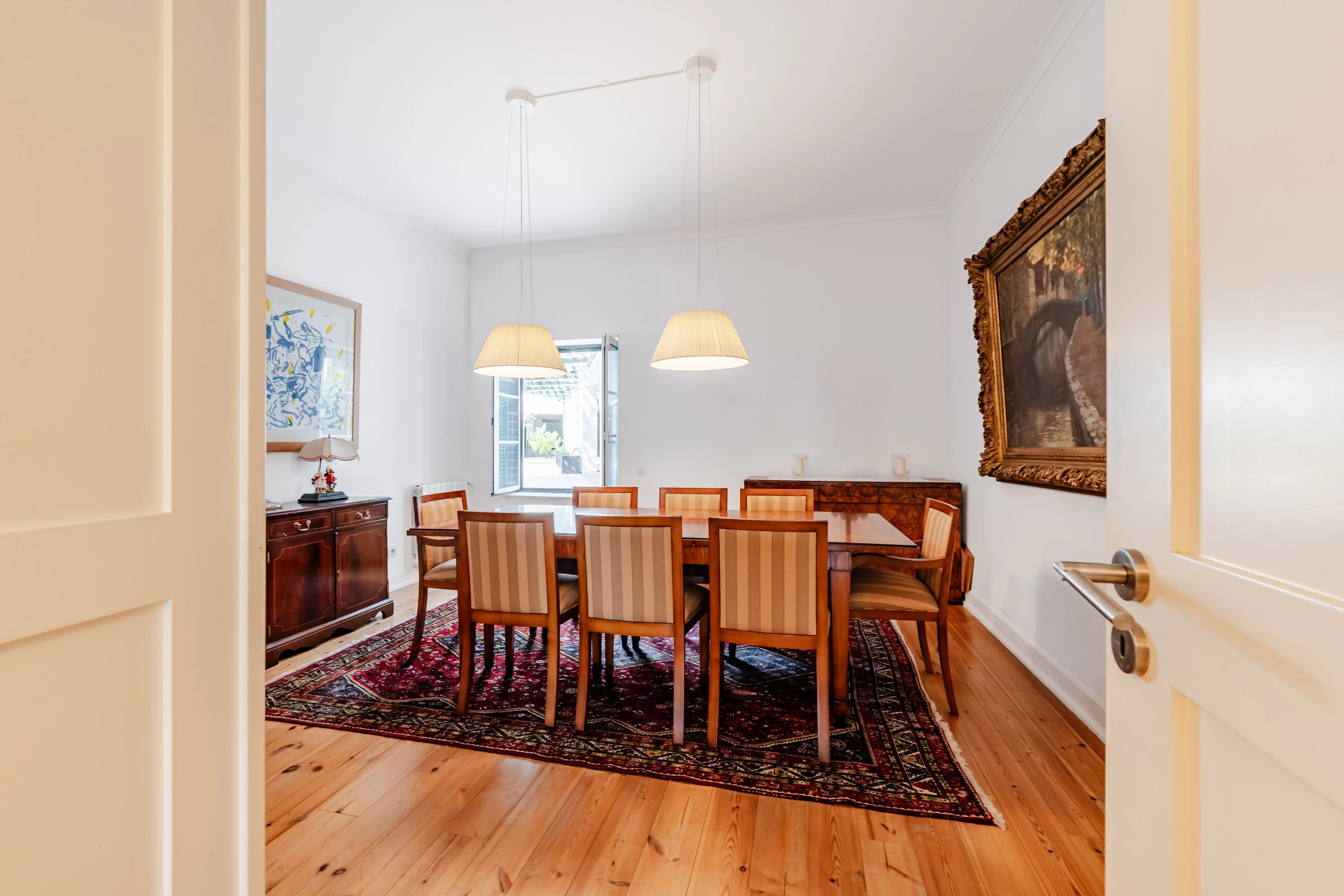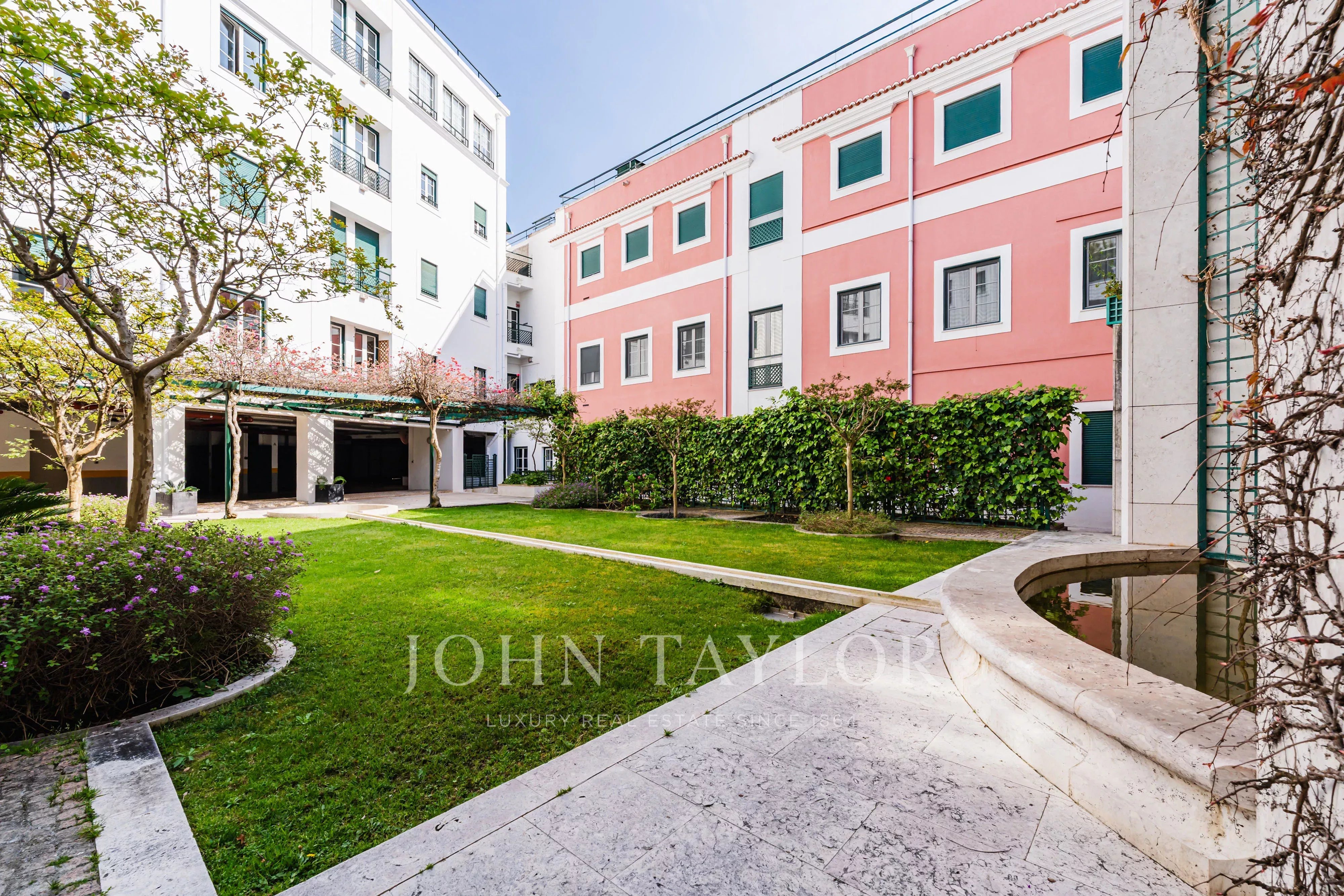 Renoviert von José Baganha & Arquitectos bewahrt die Wohnung ihren ursprünglichen Charakter mit einem sorgfältig modernisierten Interieur. Sie umfasst ein geräumiges Wohnzimmer, ein separates Esszimmer und eine voll ausgestattete Küche mit Speisekammer. Der private Bereich besteht aus zwei Schlafzimmern und einer 30 m² großen Suite mit Ankleideraum und eigenem Bad. Ein zusätzlicher Raum kann als Büro, Gästezimmer oder zusätzliches Schlafzimmer genutzt werden.