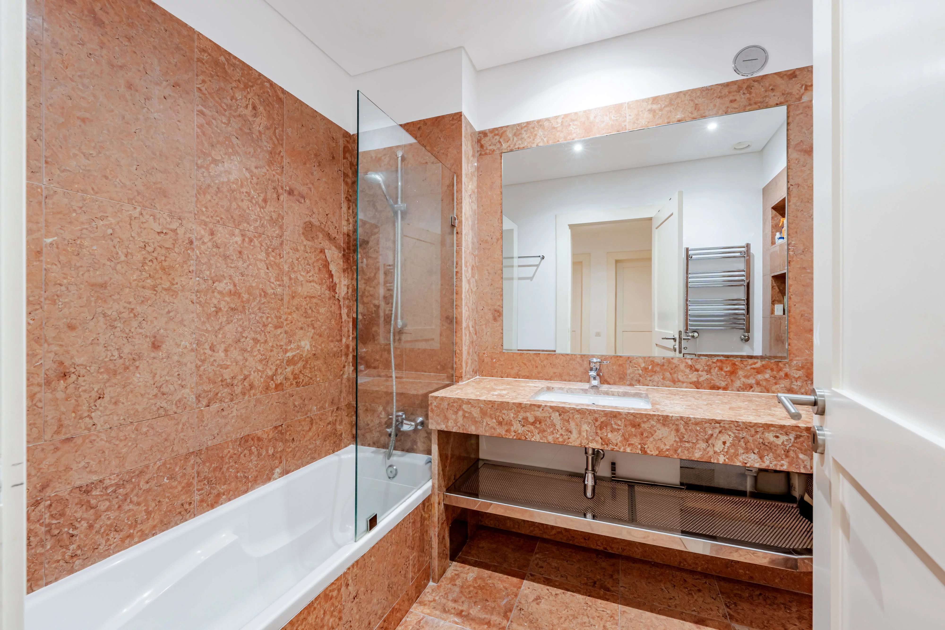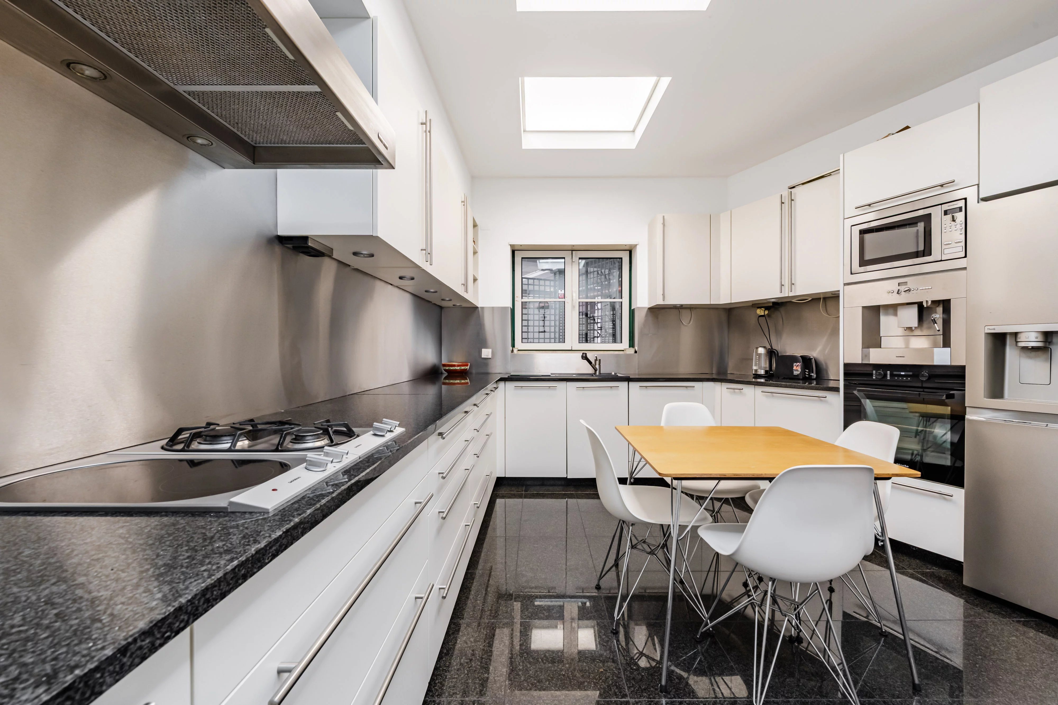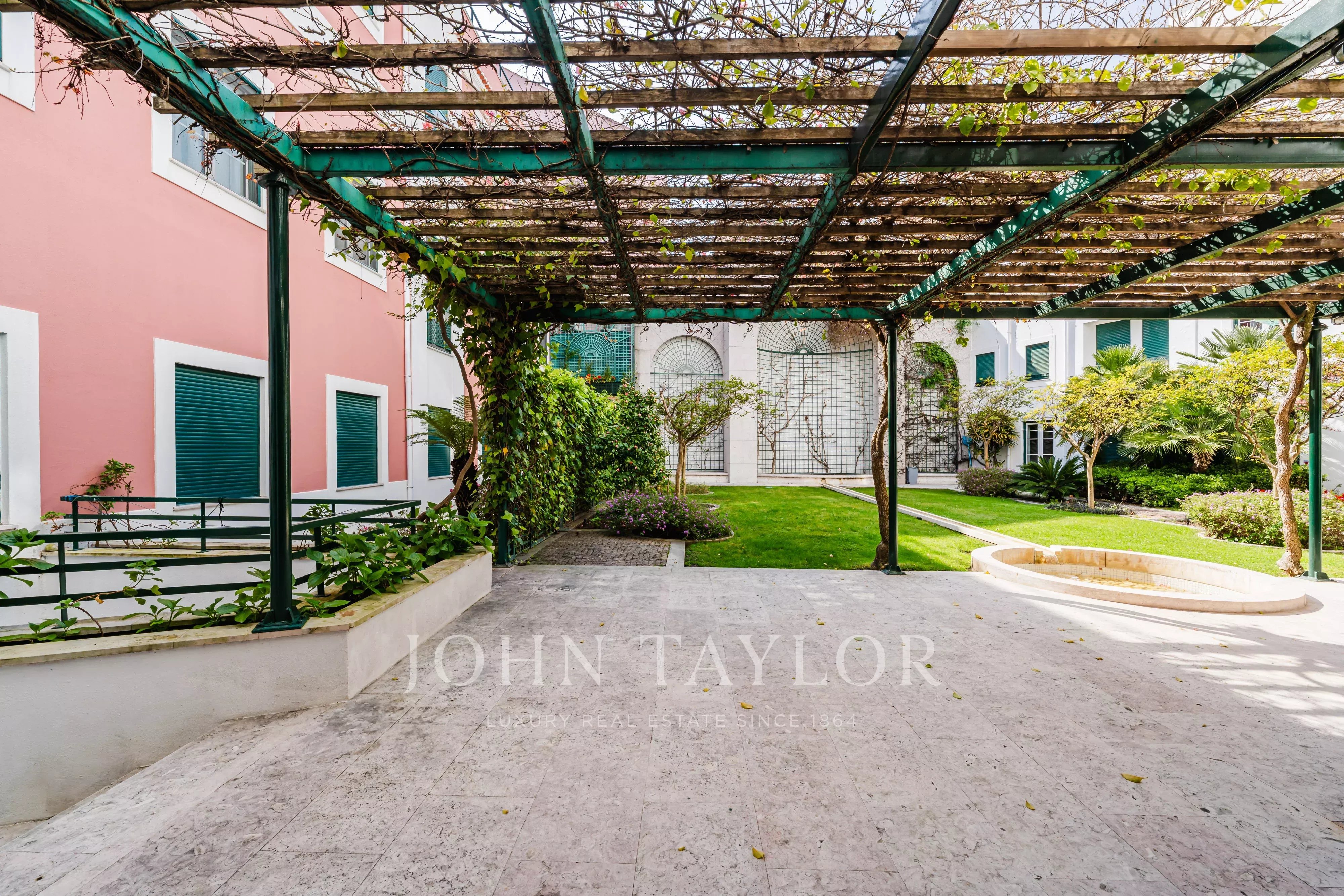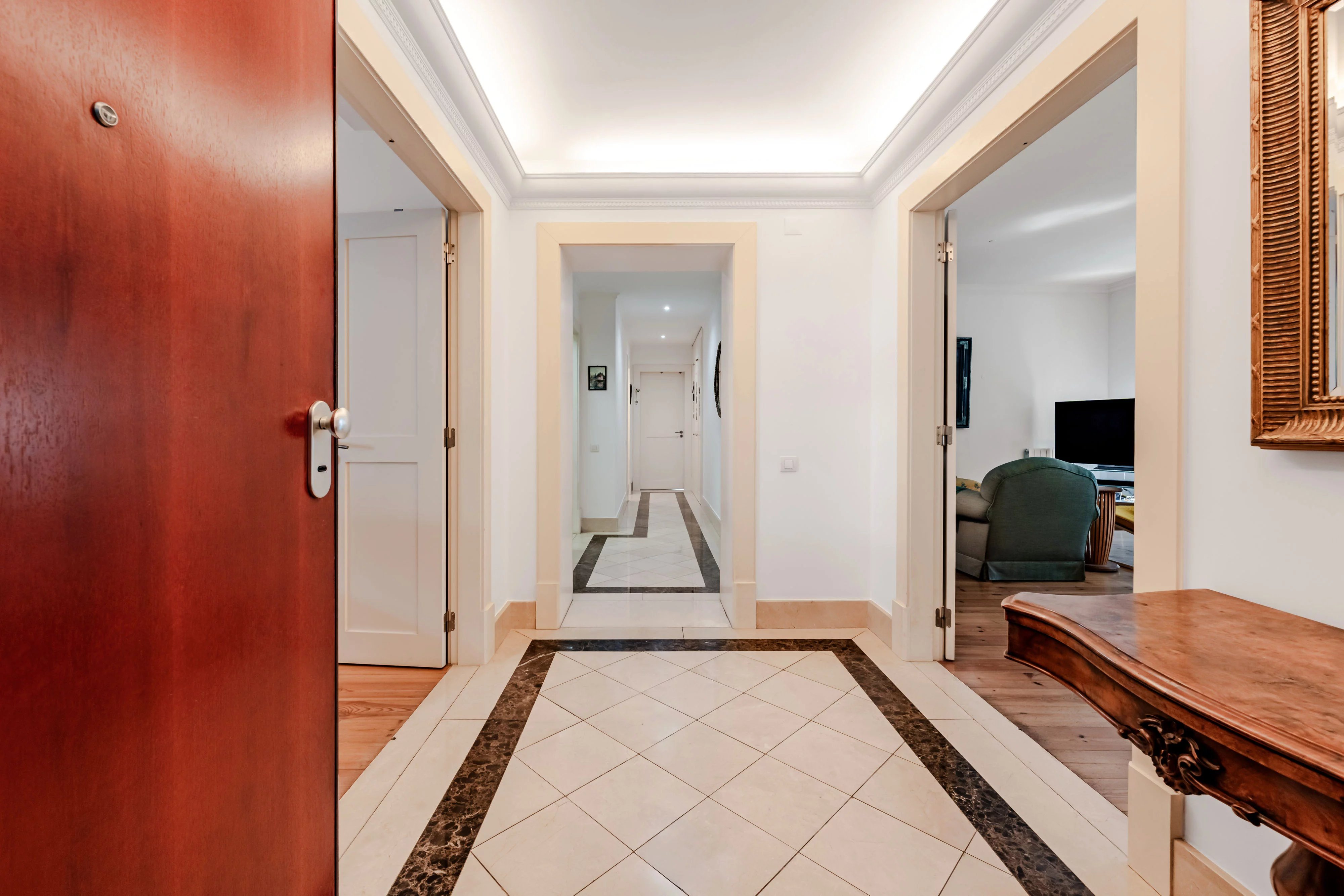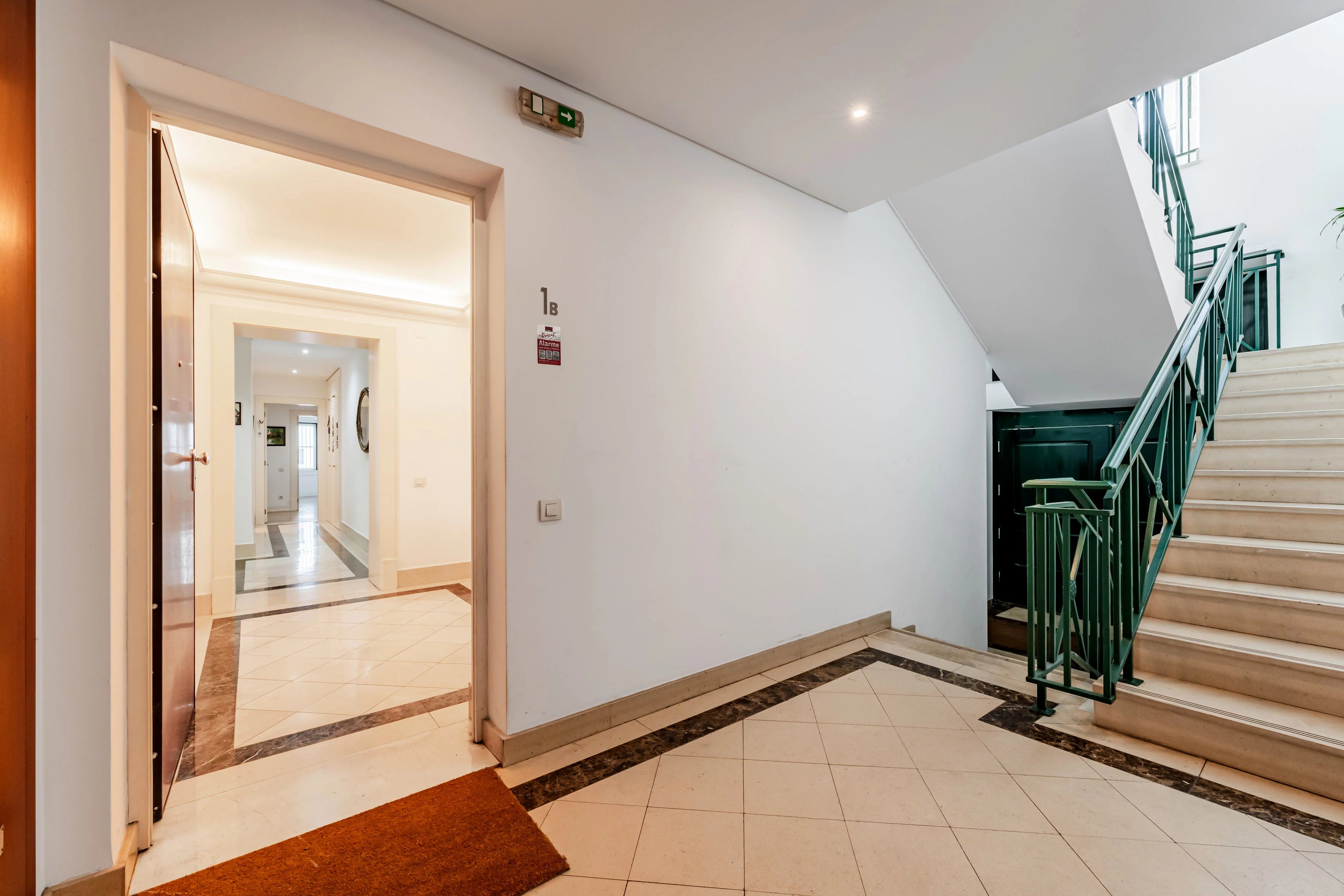 Renoviert von José Baganha & Arquitectos bewahrt die Wohnung ihren ursprünglichen Charakter mit einem sorgfältig modernisierten Interieur. Sie umfasst ein geräumiges Wohnzimmer, ein separates Esszimmer und eine voll ausgestattete Küche mit Speisekammer. Der private Bereich besteht aus zwei Schlafzimmern und einer 30 m² großen Suite mit Ankleideraum und eigenem Bad. Ein zusätzlicher Raum kann als Büro, Gästezimmer oder zusätzliches Schlafzimmer genutzt werden.