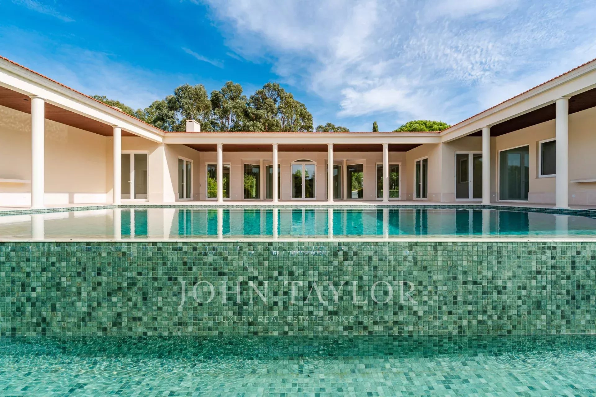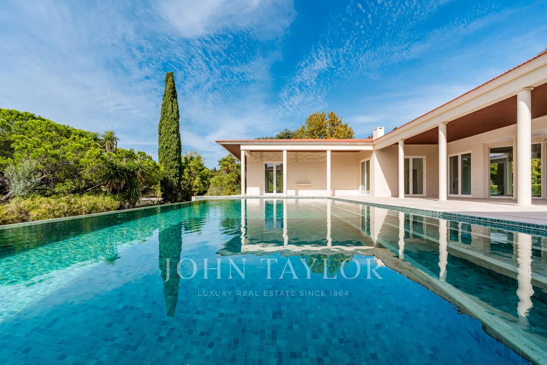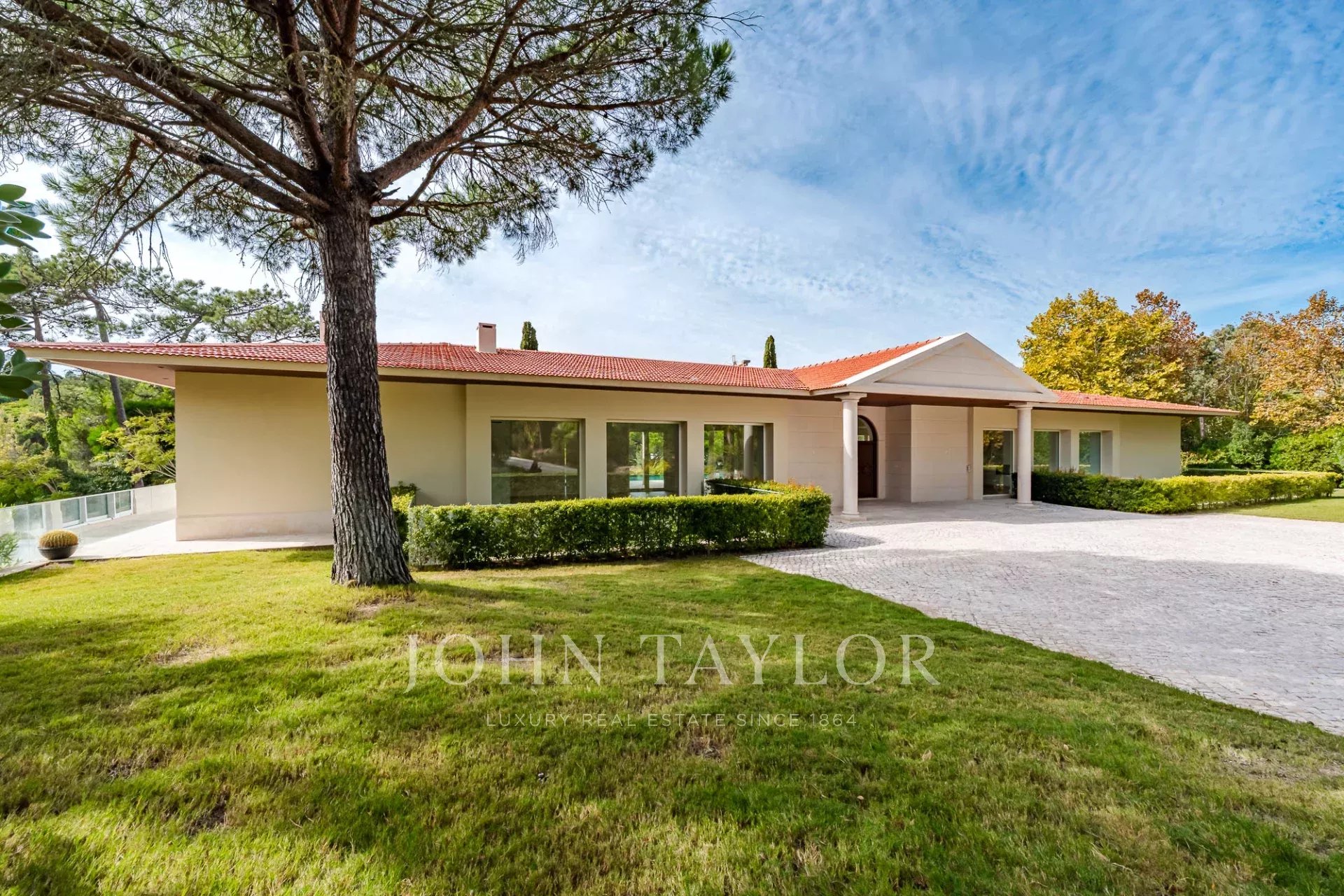 Auf einem weitläufigen 4.606 m² großen Grundstück, einem der größten innerhalb des Anwesens. Das Anwesen bietet absolute Privatsphäre, umgeben von reifen Gärten und mit einem großen Swimmingpool.