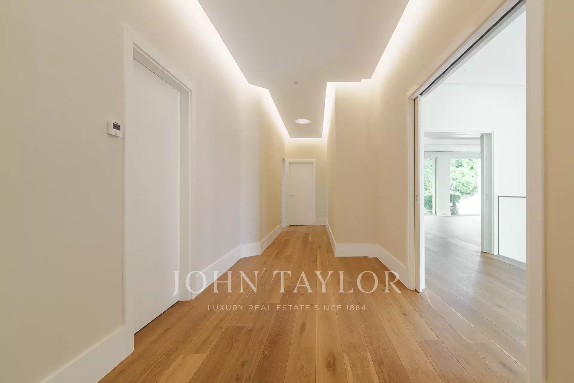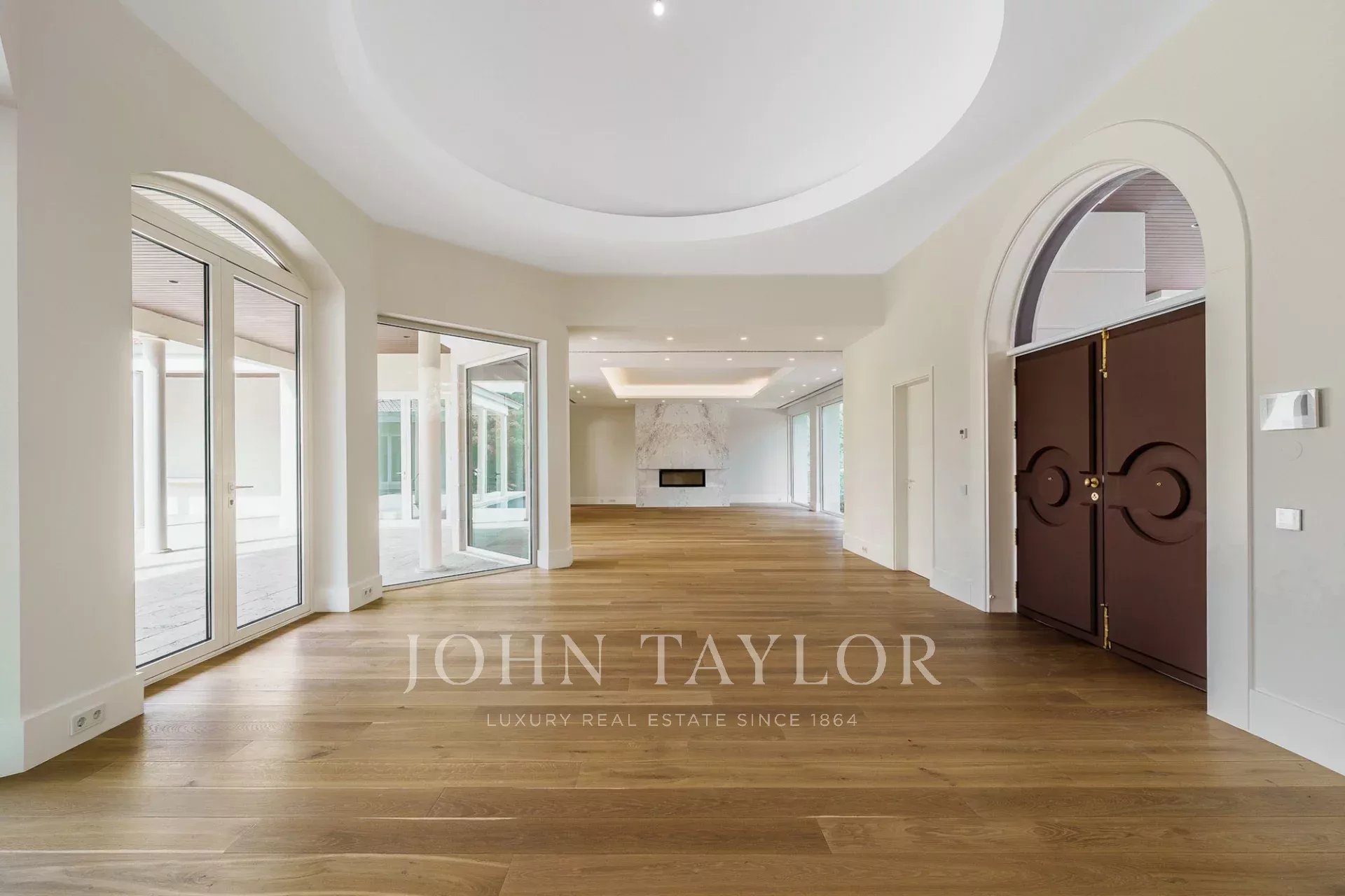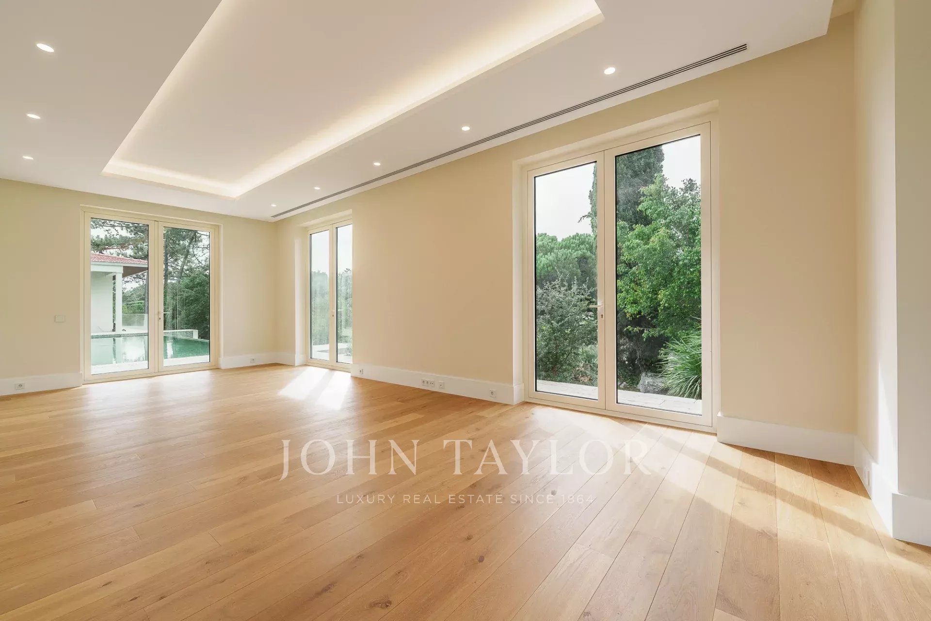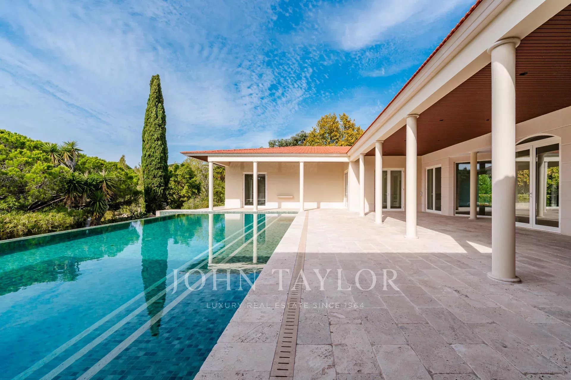 Auf einem weitläufigen 4.606 m² großen Grundstück, einem der größten innerhalb des Anwesens. Das Anwesen bietet absolute Privatsphäre, umgeben von reifen Gärten und mit einem großen Swimmingpool.