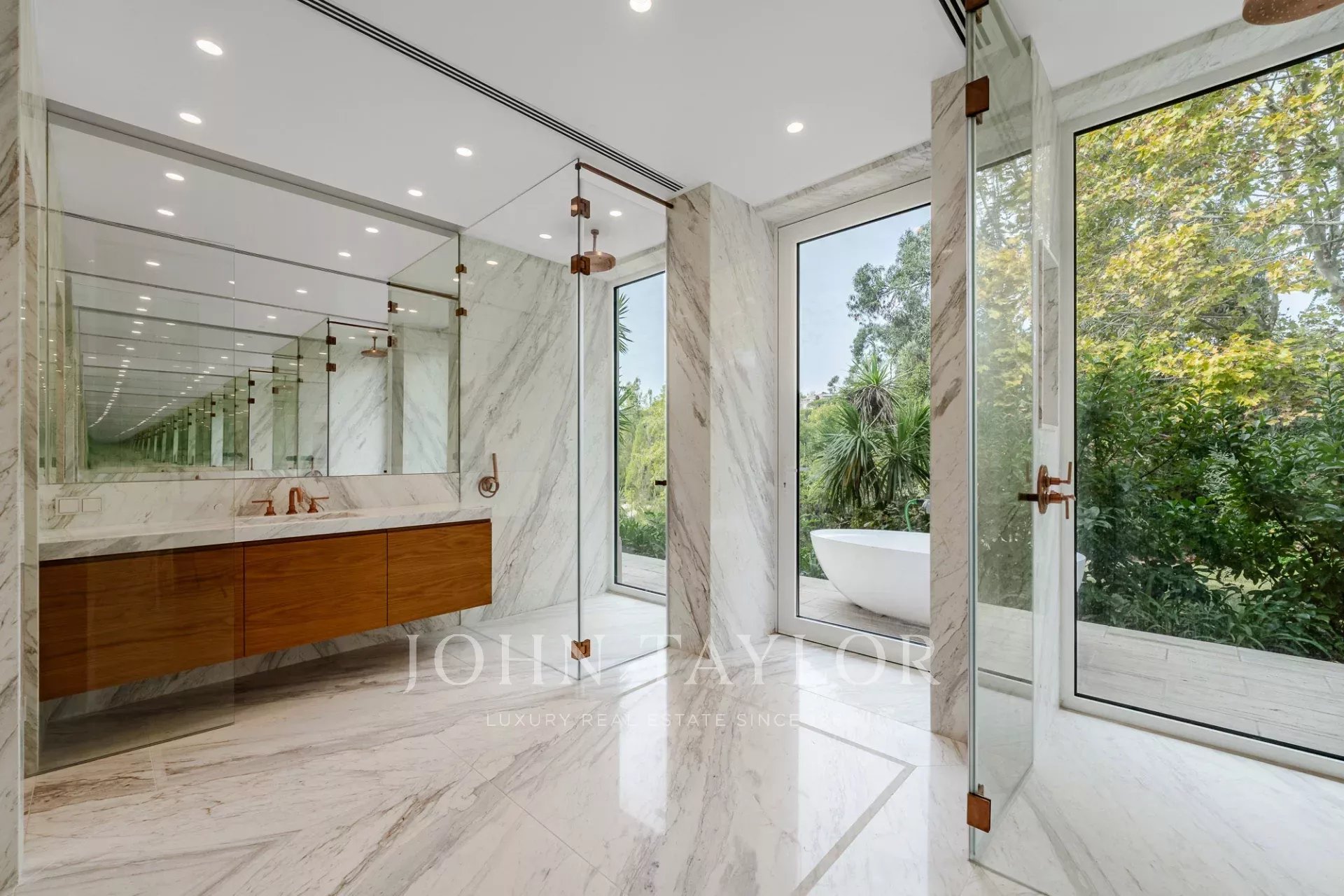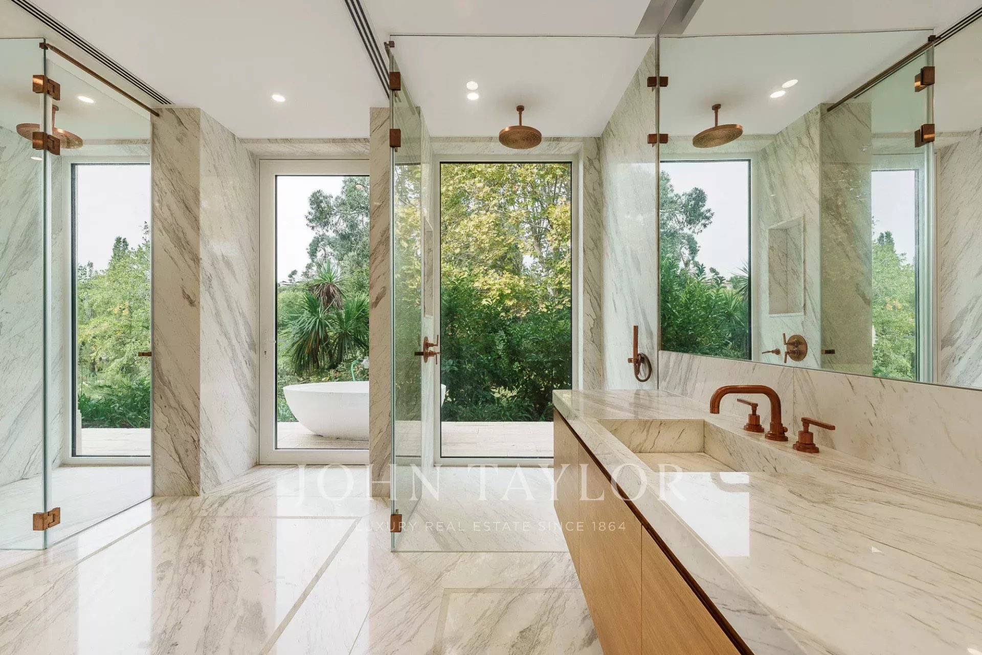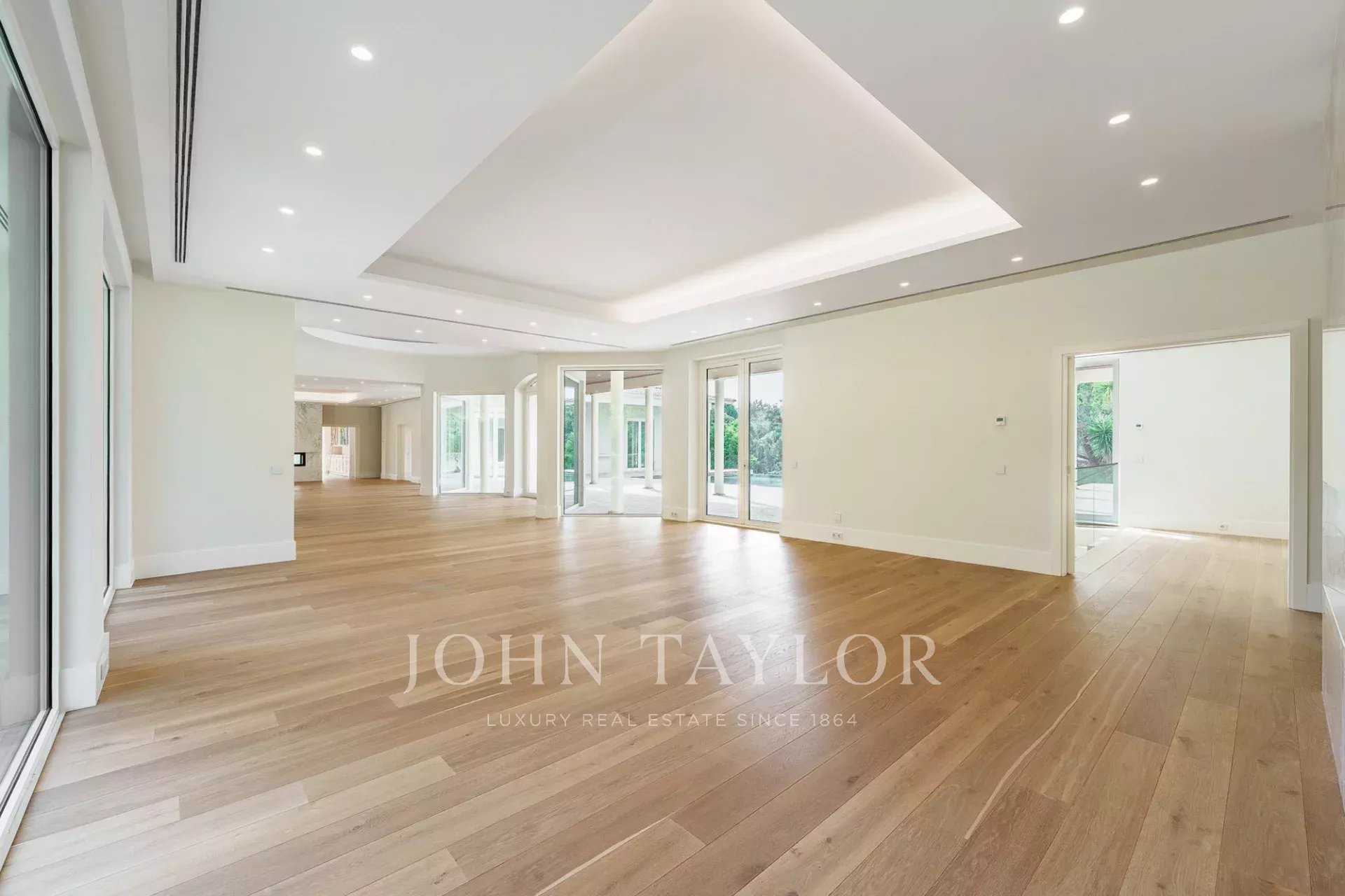Auf der Gartenebene befindet sich im linken Flügel ein eigenständiges Apartment mit eigener Küche, Wohnbereich und Schlafzimmer. Auf der gegenüberliegenden Seite befindet sich eine weitere großzügige Suite mit Zugang zum Garten sowie ein Mehrzweckraum, der als Fitnessraum, Spa, Kino oder Studio genutzt werden kann.