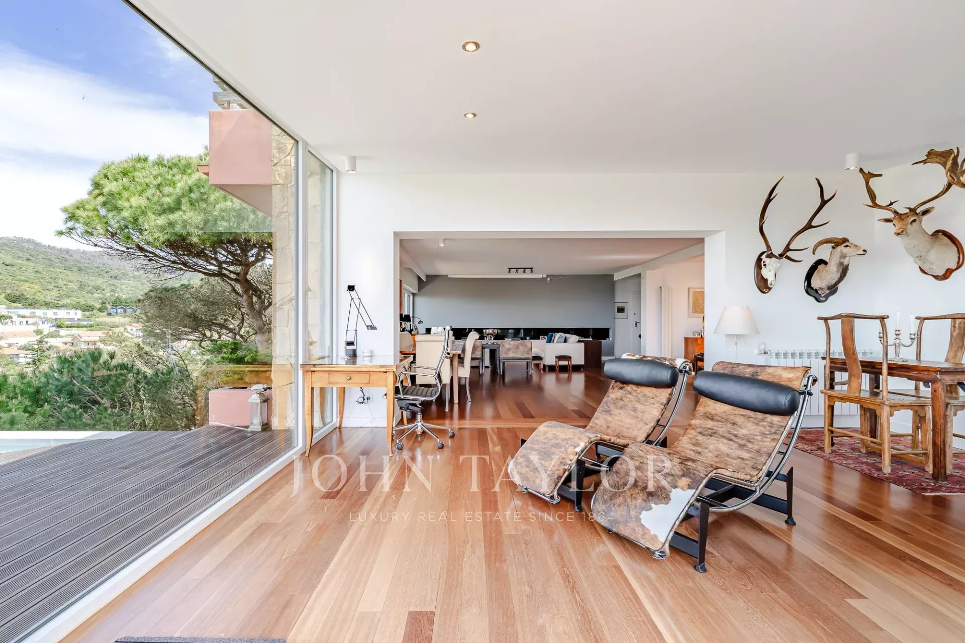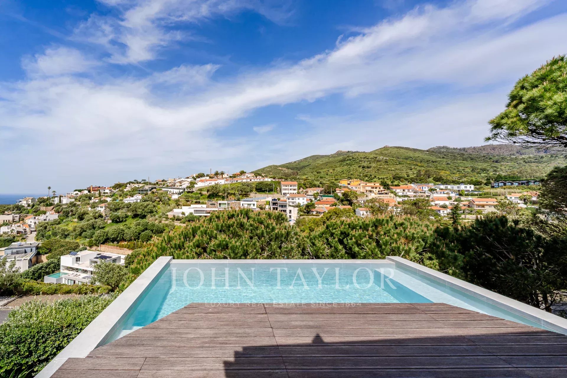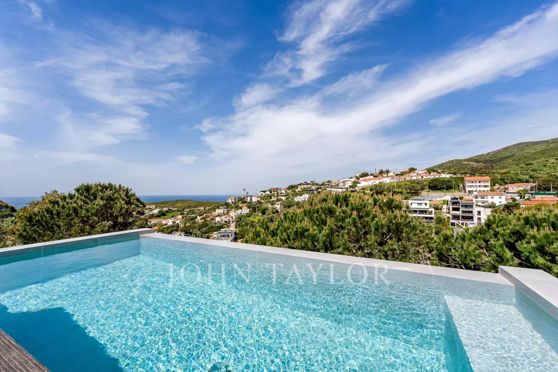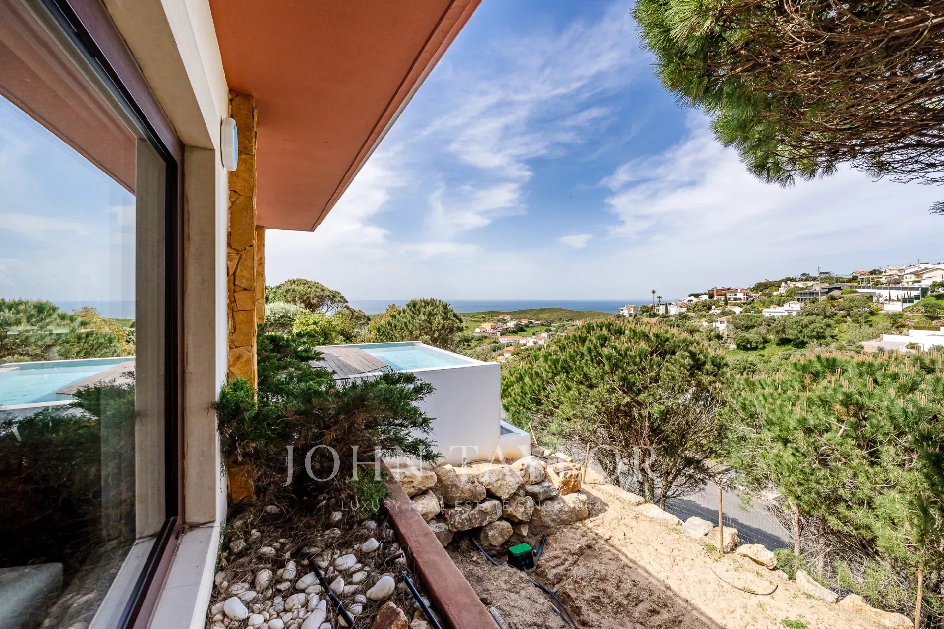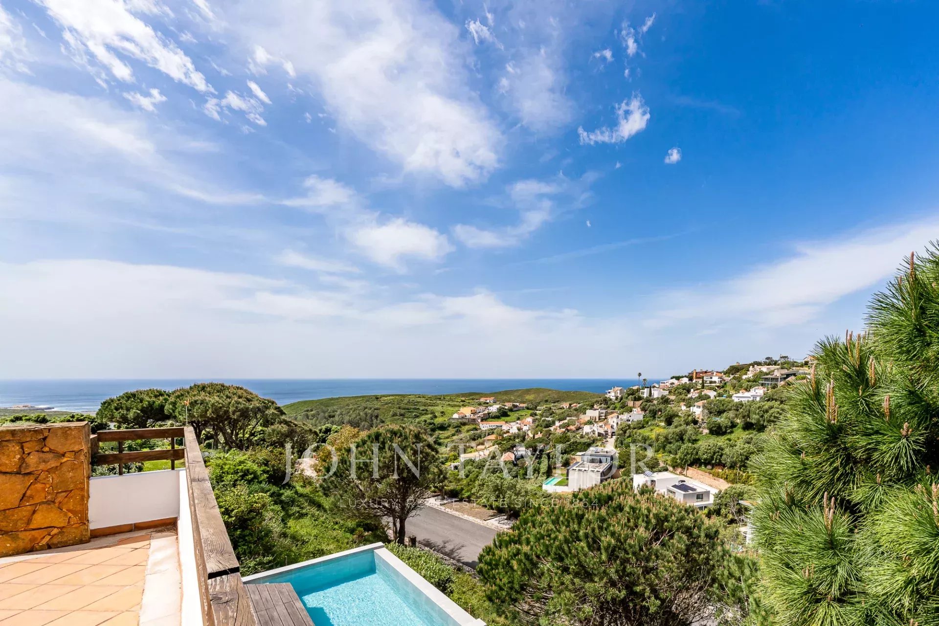 Diese Villa befindet sich in einer sicheren privaten Wohnanlage in der Nähe der Guincho-Bucht und bietet von mehreren Zimmern und Außenbereichen aus einen ungehinderten Blick auf den Atlantik. Sie zeichnet sich durch ihre erhöhte Lage und den offenen Ausblick aus, wobei das Meer von den Wohnbereichen, der Terrasse und dem privaten Pool aus sichtbar ist.