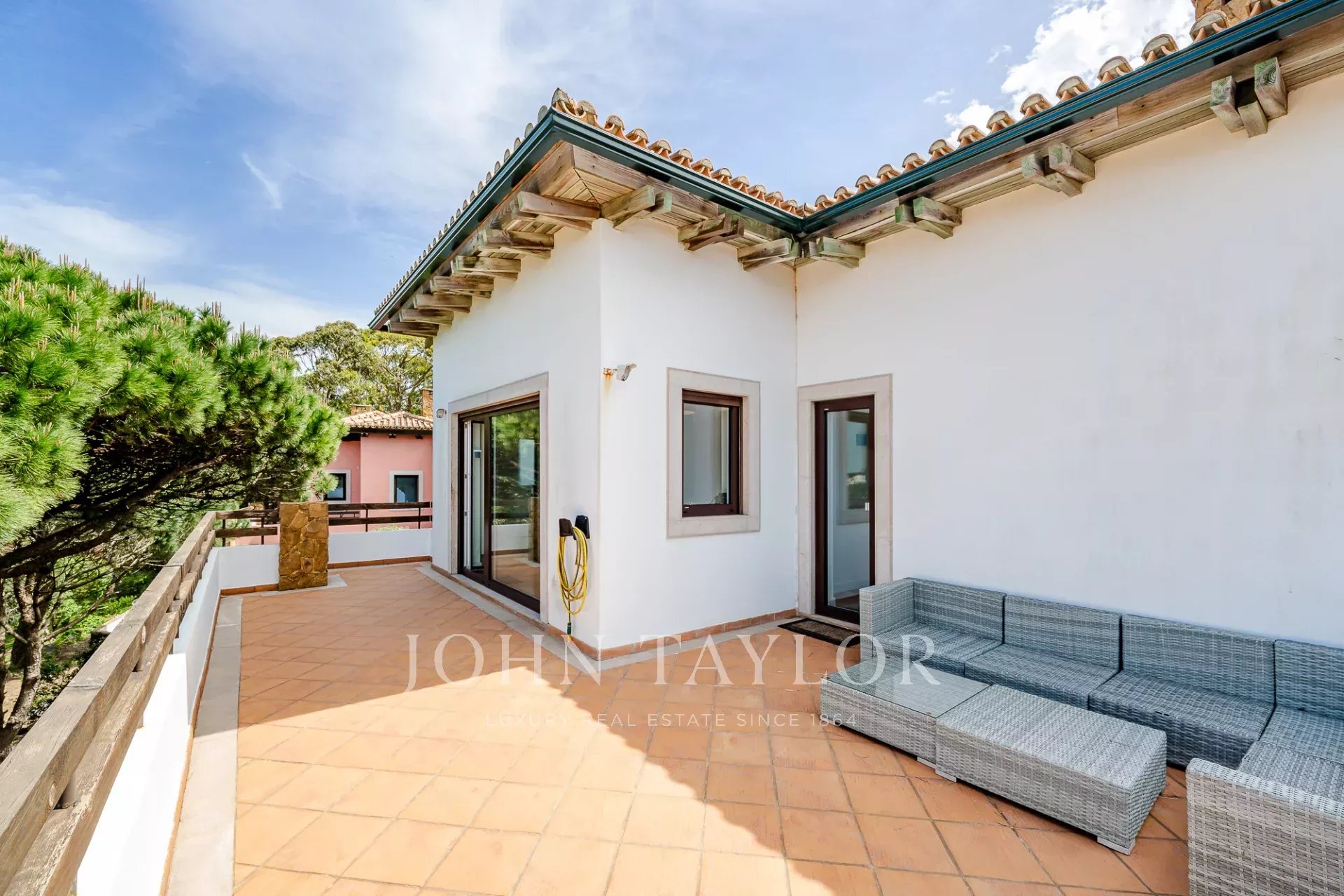 Den Bewohnern stehen ein 24-Stunden-Sicherheitsdienst, gepflegte Gärten, gemeinsame Swimmingpools und Tennisplätze zur Verfügung. Die Immobilie verfügt außerdem über einen Privatparkplatz und eine hochwertige Ausstattung. Der Strand ist nur wenige Minuten entfernt, und Lissabon ist in etwas mehr als einer halben Stunde zu erreichen.