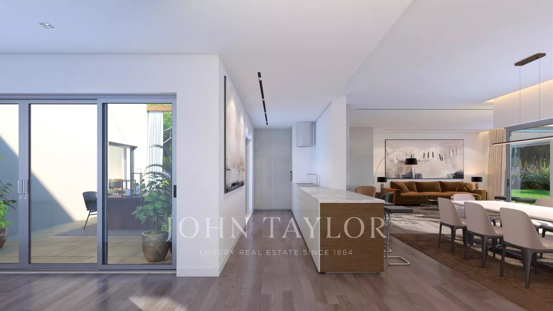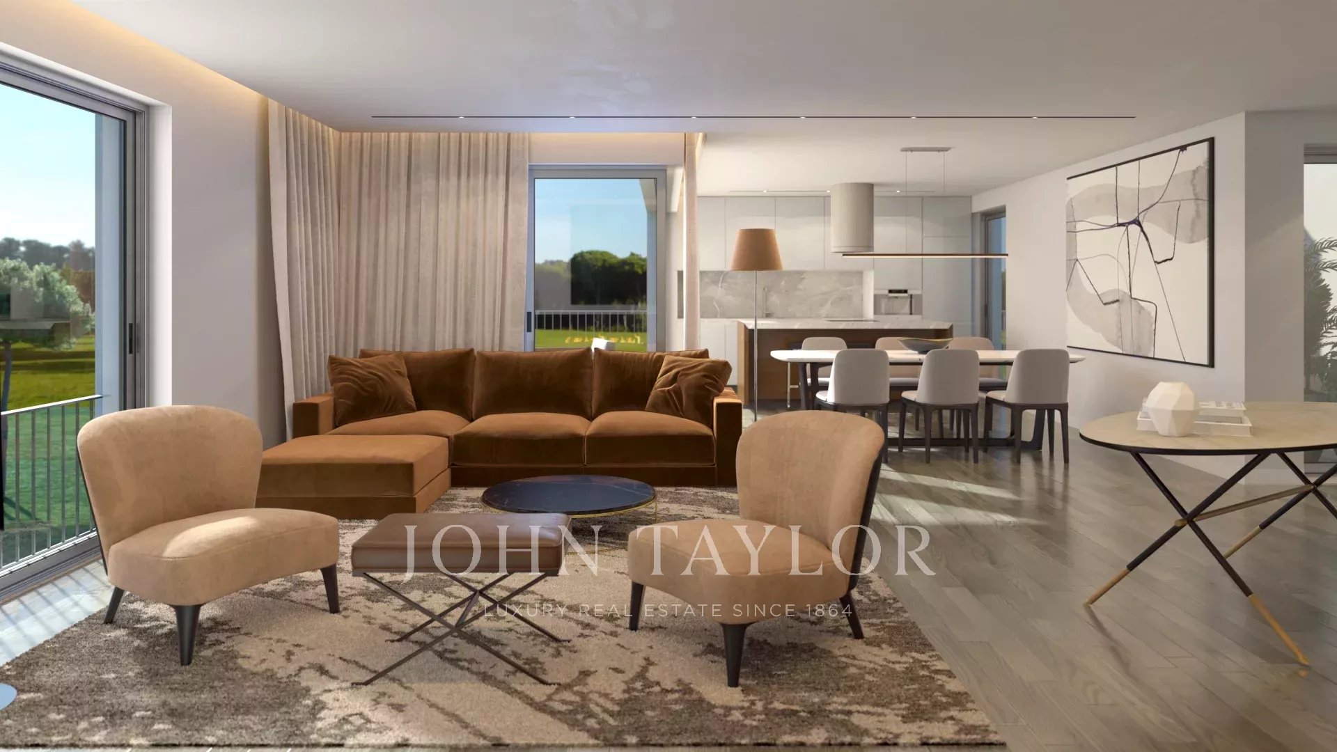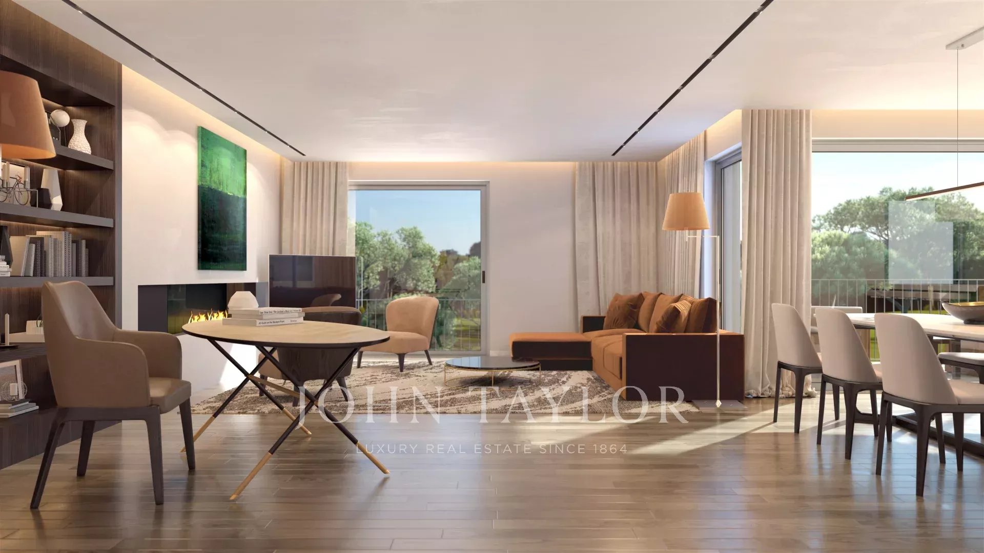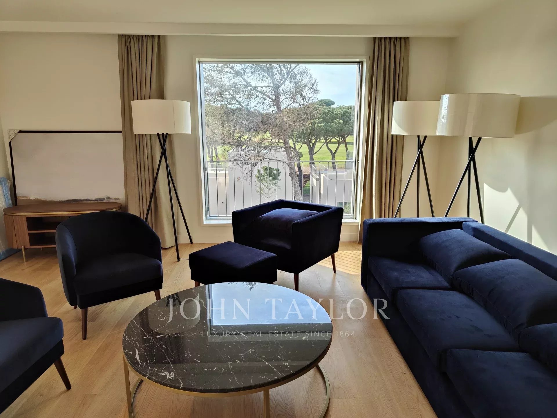In dieser T4-Maisonette-Wohnung mit 261 m2 Bruttofläche betreten wir eine 16 m2 große Halle, die mit dem großen Wohnzimmer von 44 m2 verbunden ist, mit großen Fenstern vom Boden bis zur Decke, die einen angenehmen Blick auf den Golfplatz bieten.