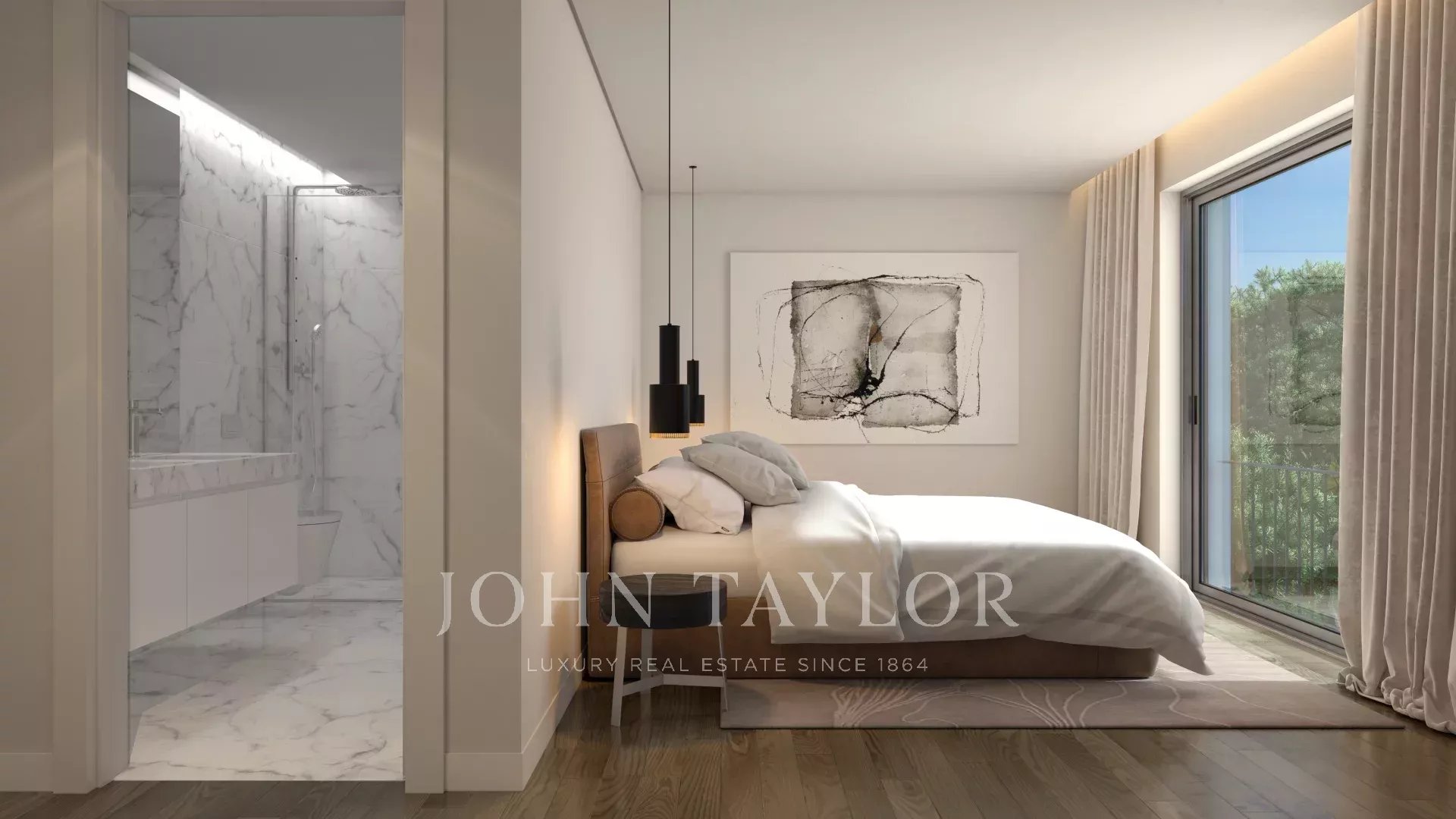 Auf der unteren Etage verfügt der private Bereich über 3 Suiten mit 16m2, 19m2 und 40,50m2 die Hauptsuite mit Balkon.