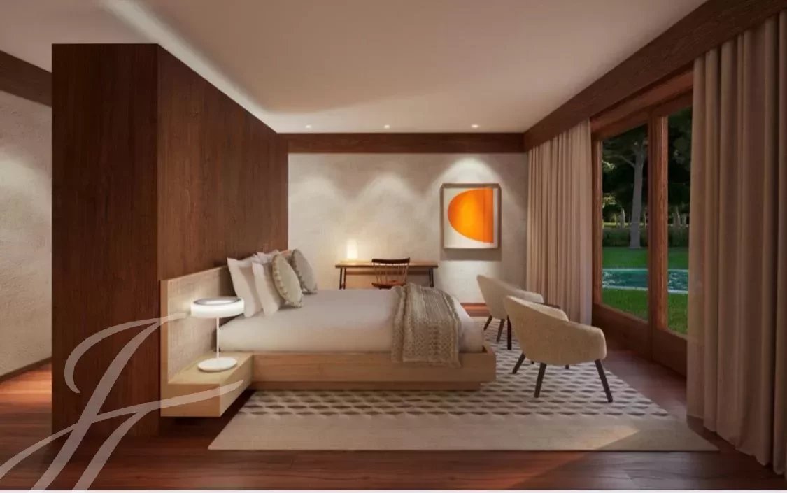 Diese luxuriöse Wohnanlage wurde vom renommierten Büro Promontório Arquitectos konzipiert und entworfen. Sie besteht aus 18 freistehenden Villen, die sich in die landschaftliche Struktur des Golfplatzes und die umgebende Pinienwaldlandschaft einfügen, die als Inspiration für die verwendeten Materialien und Farben diente, zusammen mit Stein, glasierter Keramik und Naturholz.
