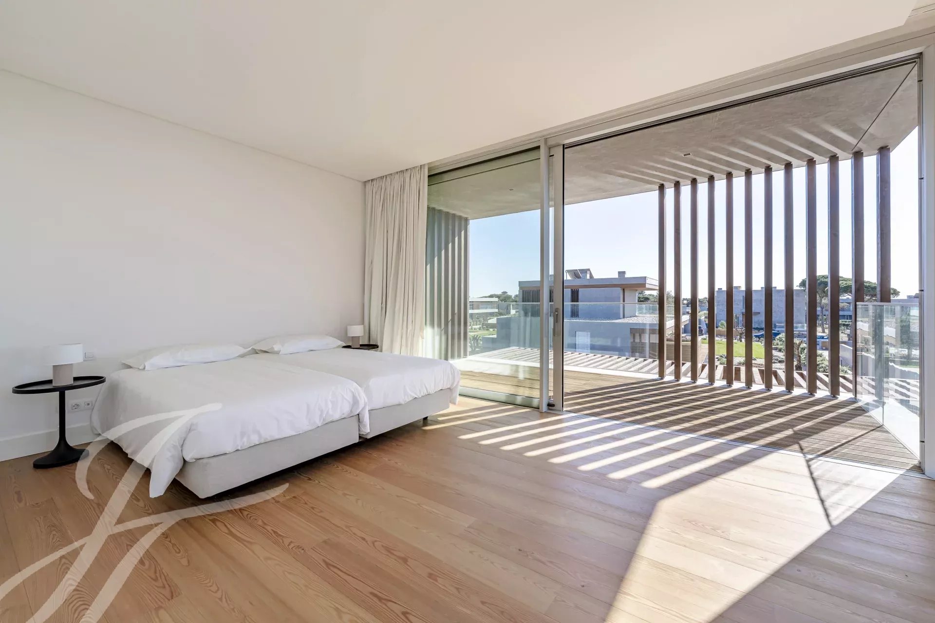 Erleben Sie modernes Design und natürliche Schönheit in dieser außergewöhnlichen Villa in Quinta da Marinha in Cascais. Inspiriert von der atemberaubenden portugiesischen Küste, bietet das Haus geräumige, offene Bereiche und einen freien Blick auf die Berge von Sintra und die Landschaft.