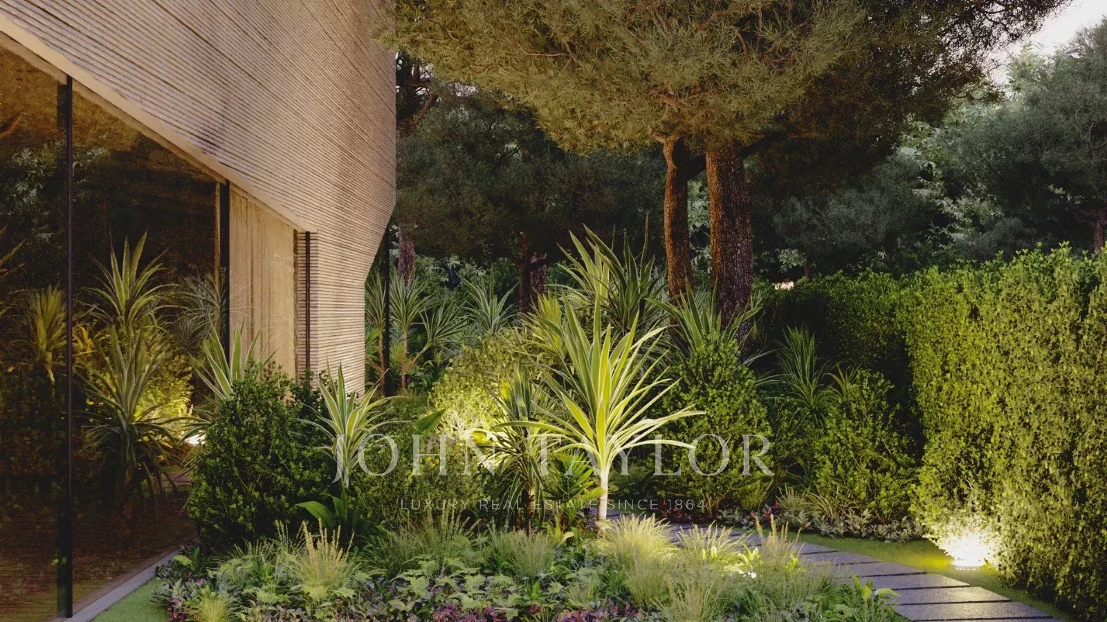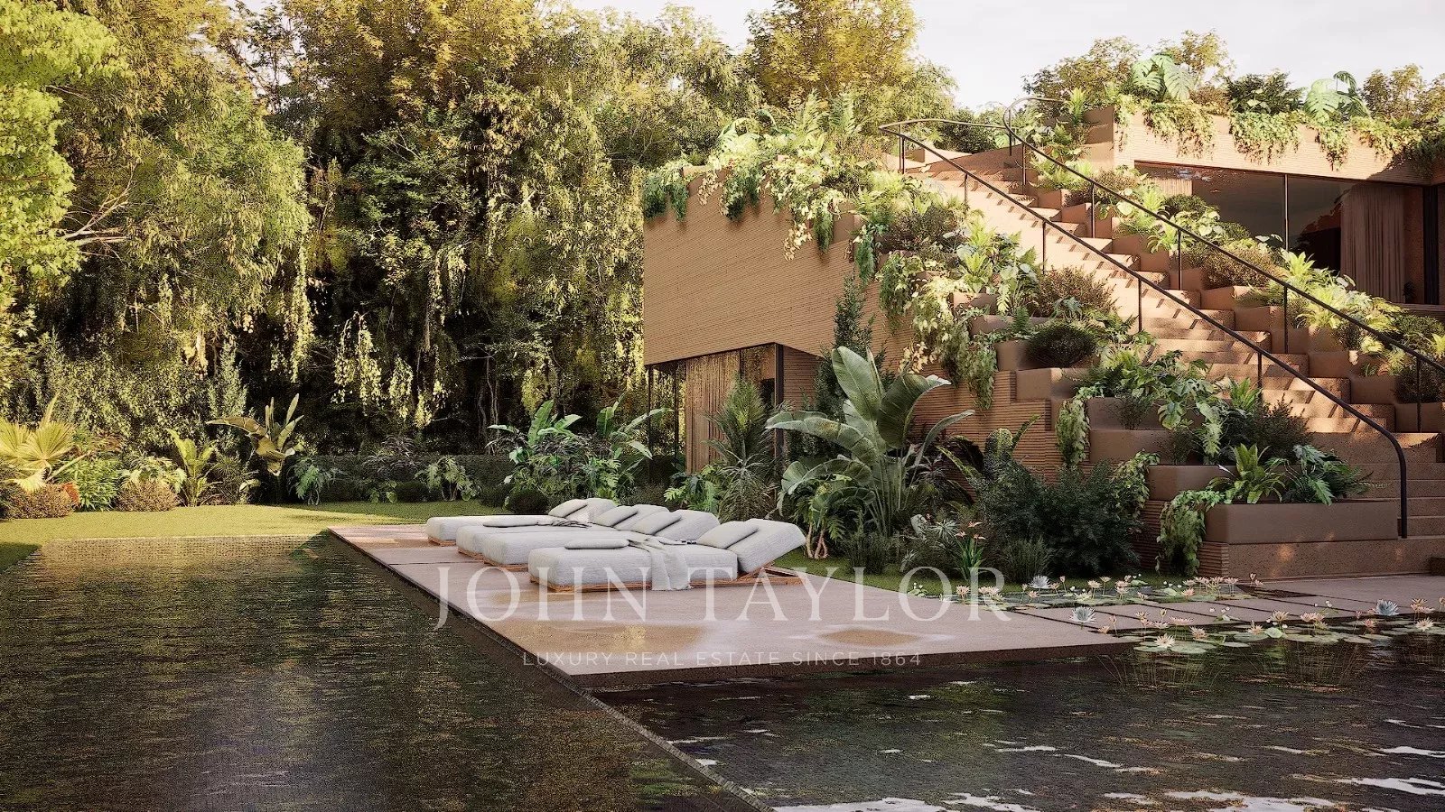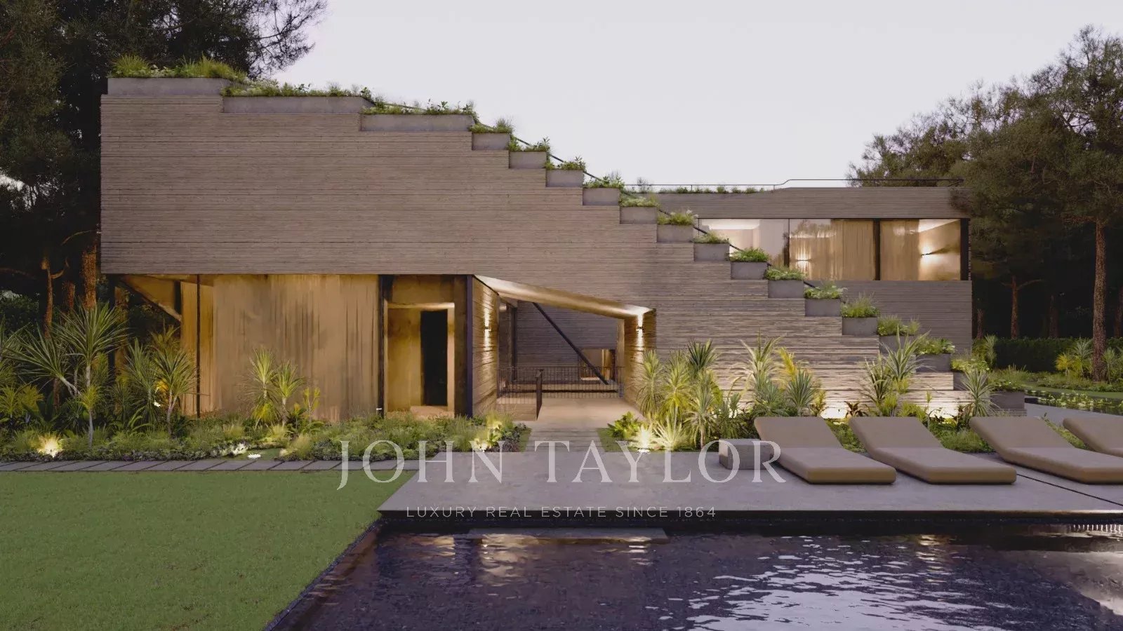 Der Außenbereich des "Infinite House" ist eine wahre Oase, mit einem Landschaftsgarten, der den Pool umgibt, und einer Panoramadachterrasse, die einen atemberaubenden Blick auf die natürliche Umgebung bietet.