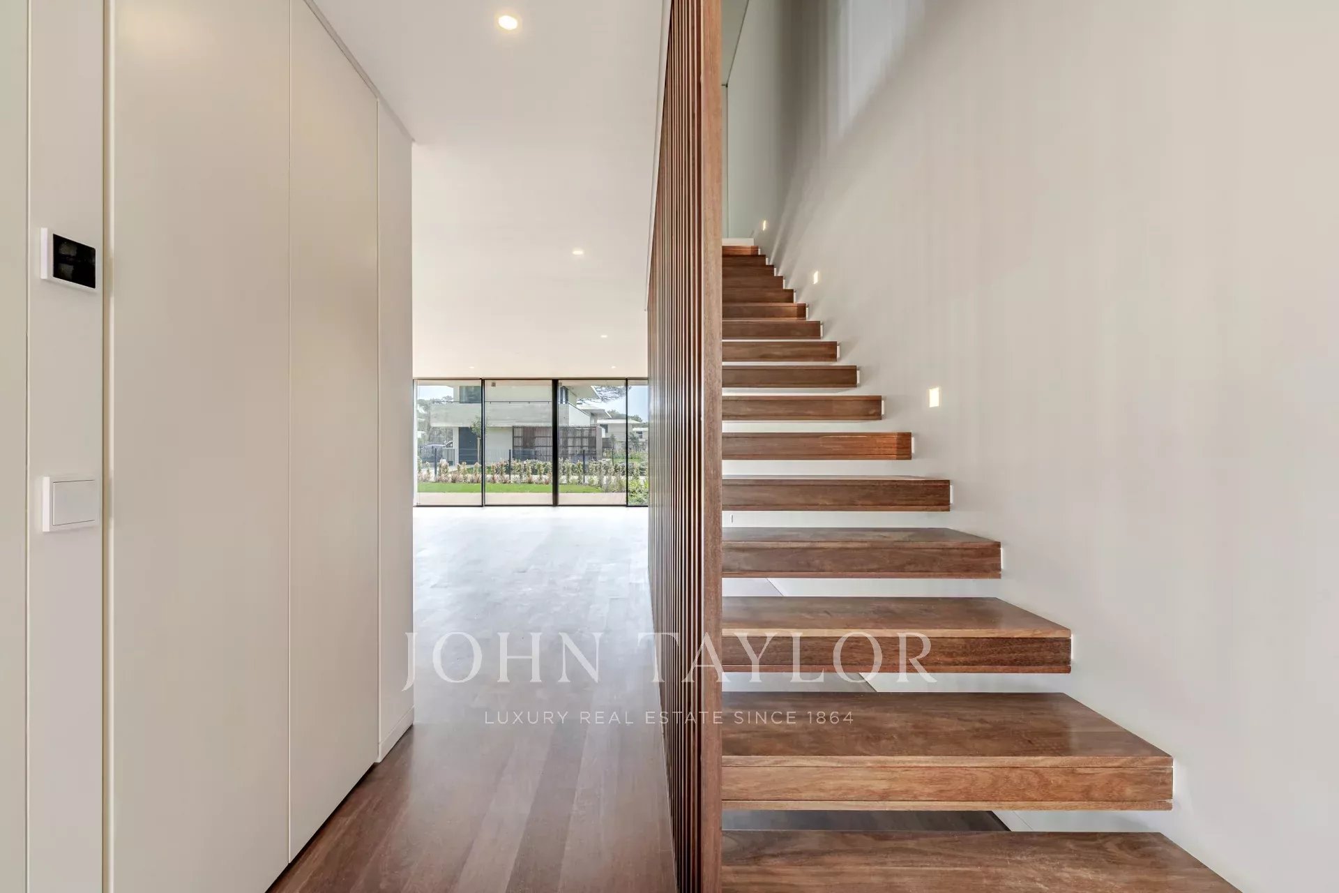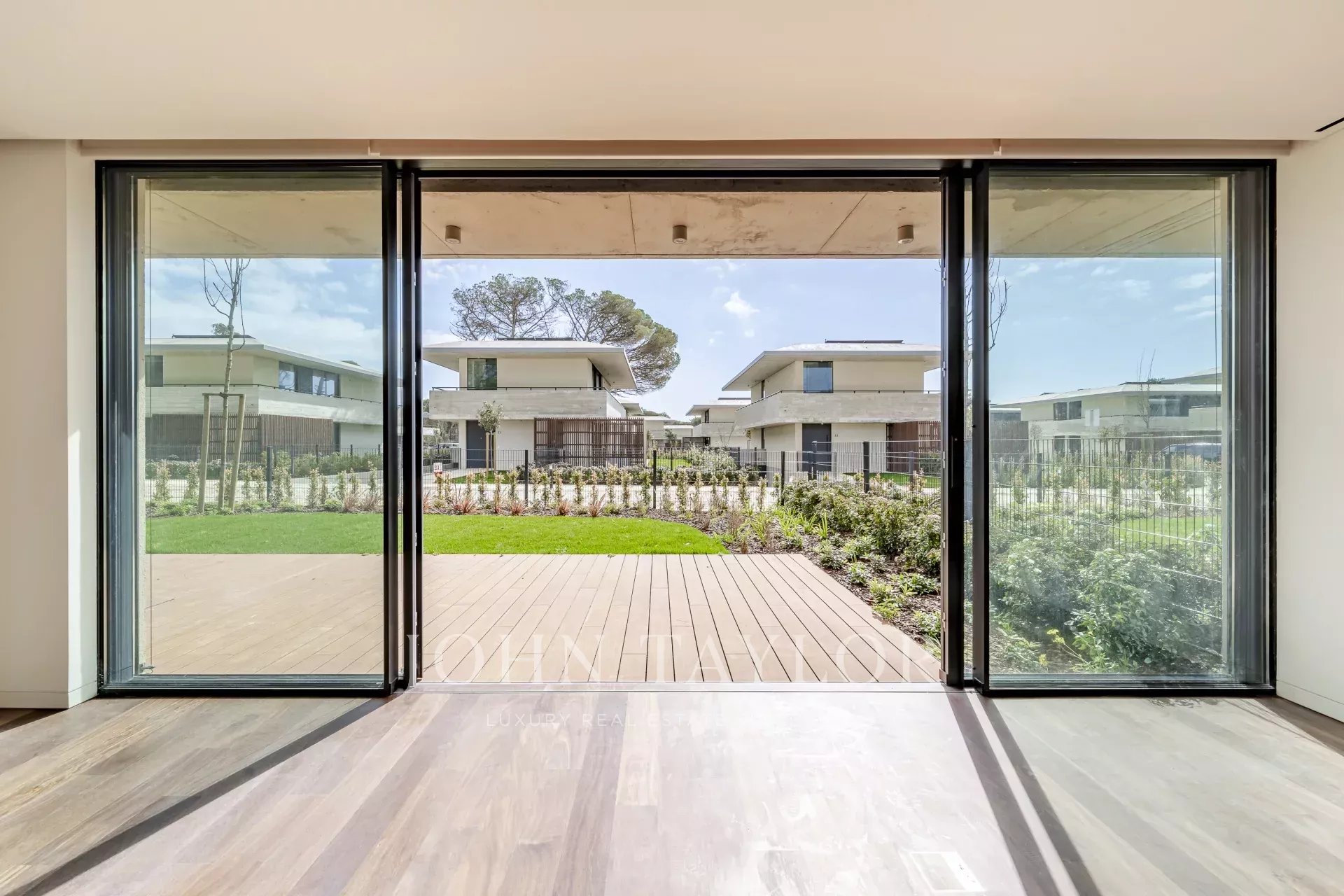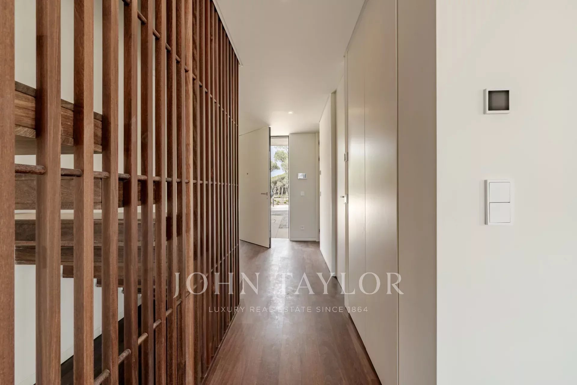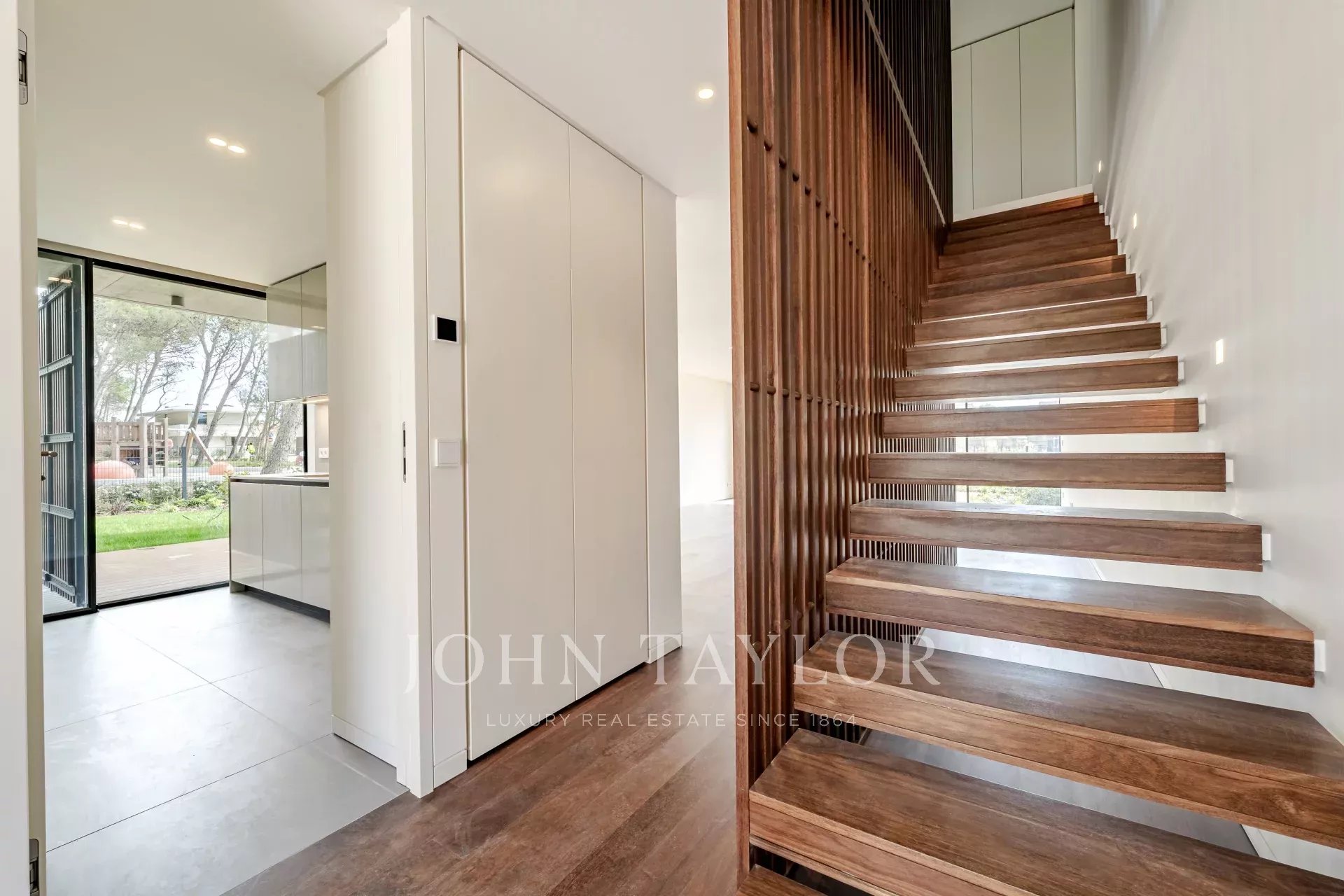 Im Erdgeschoss befindet sich ein geräumiger, 48 m² großer, offener Wohn- und Essbereich mit direktem Zugang zur Terrasse und zum Garten, wodurch ein nahtloser Übergang zwischen Innen- und Außenbereich entsteht. Auf dieser Ebene befinden sich auch eine voll ausgestattete Küche, eine Waschküche mit Zugang zu einer Serviceterrasse und ein Gäste-WC. Die Villa verfügt über drei private Parkplätze.