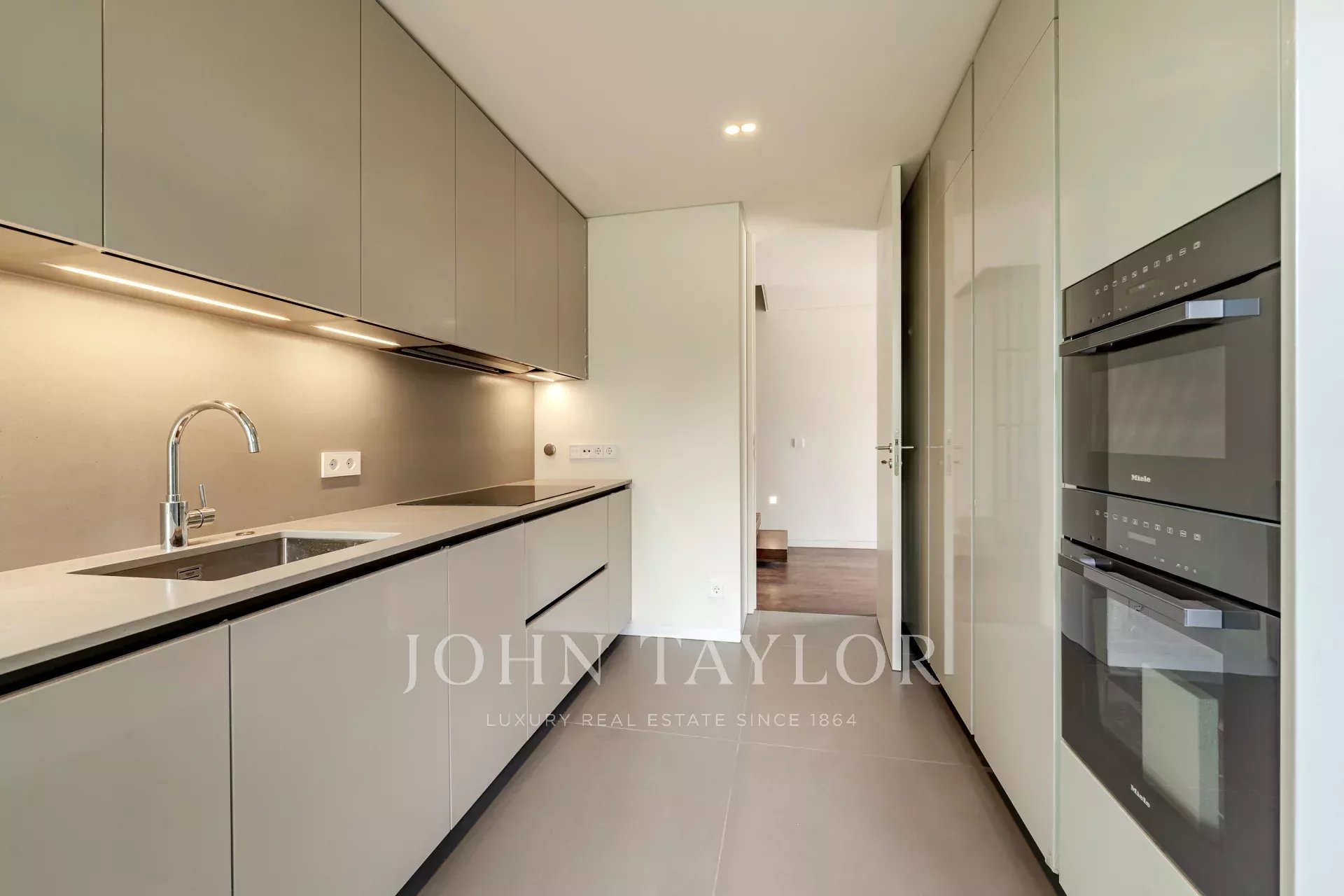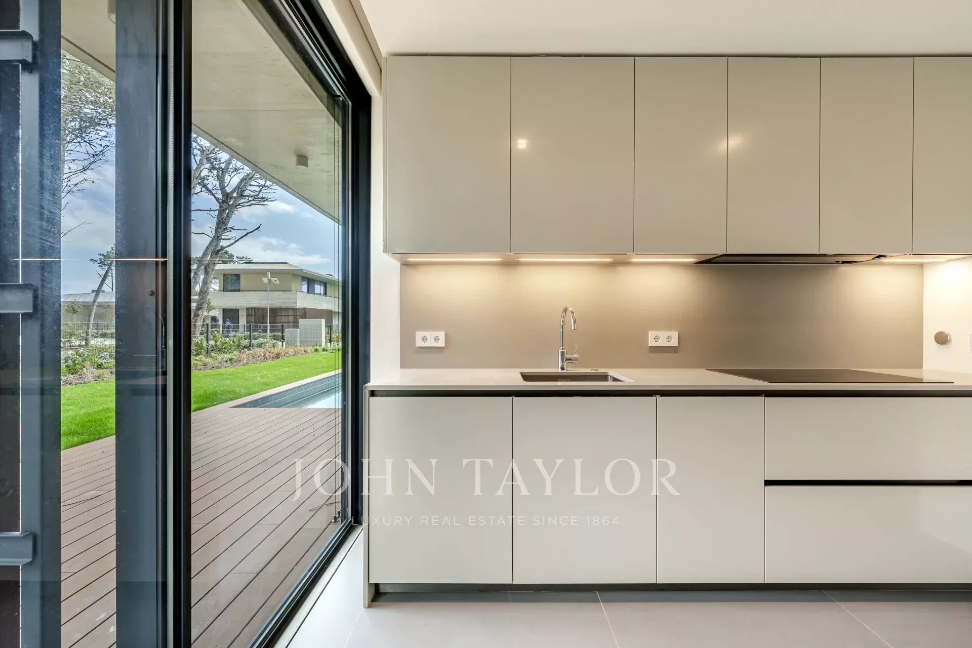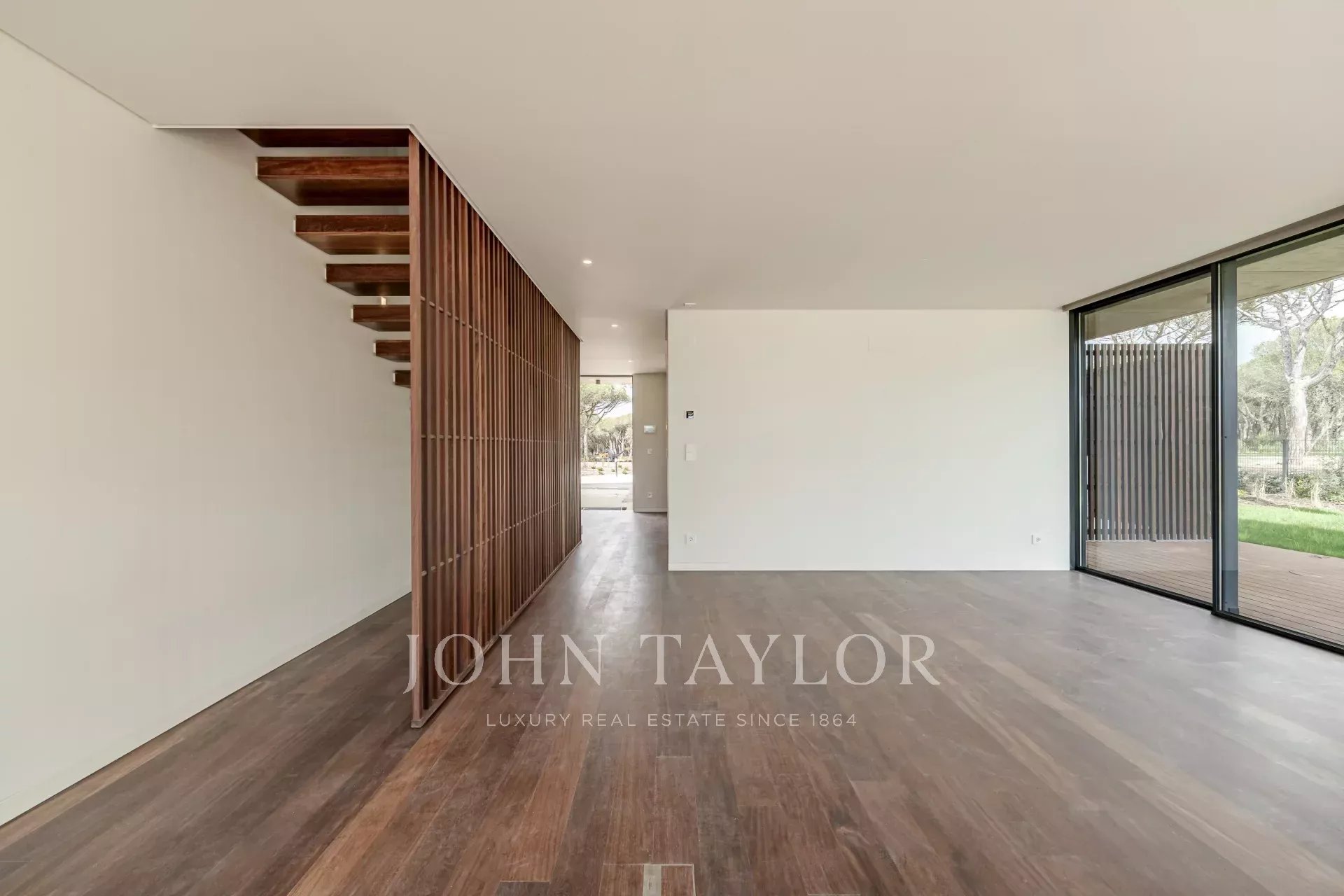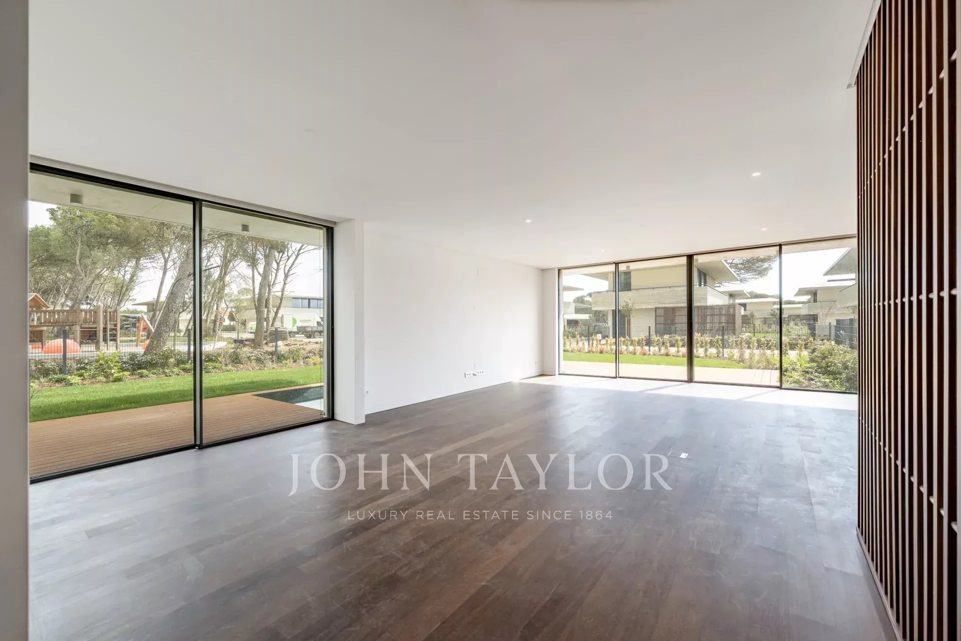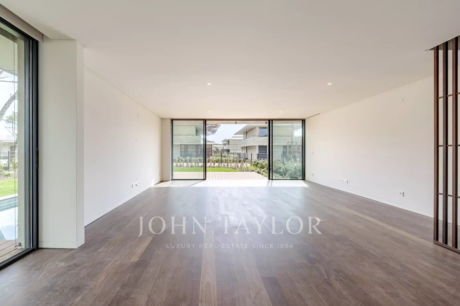 Im Erdgeschoss befindet sich ein geräumiger, 48 m² großer, offener Wohn- und Essbereich mit direktem Zugang zur Terrasse und zum Garten, wodurch ein nahtloser Übergang zwischen Innen- und Außenbereich entsteht. Auf dieser Ebene befinden sich auch eine voll ausgestattete Küche, eine Waschküche mit Zugang zu einer Serviceterrasse und ein Gäste-WC. Die Villa verfügt über drei private Parkplätze.
