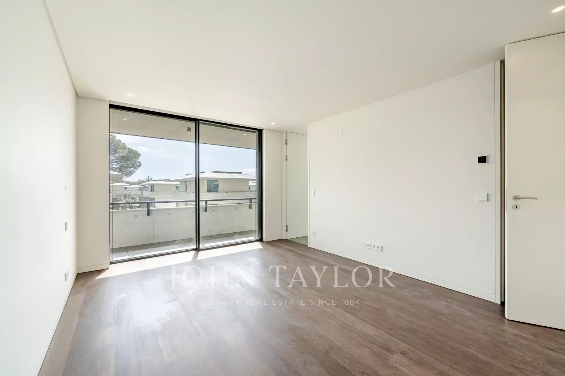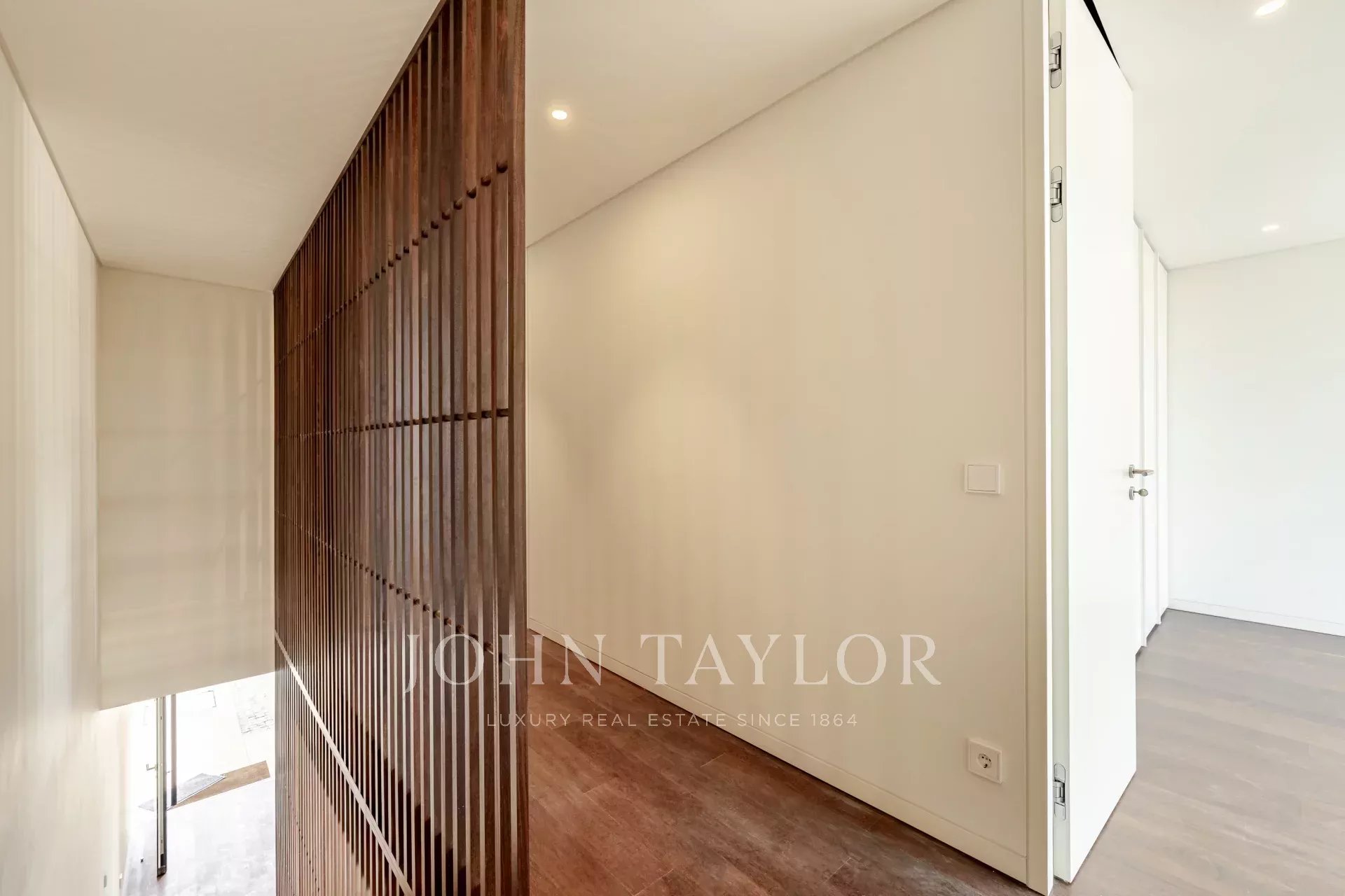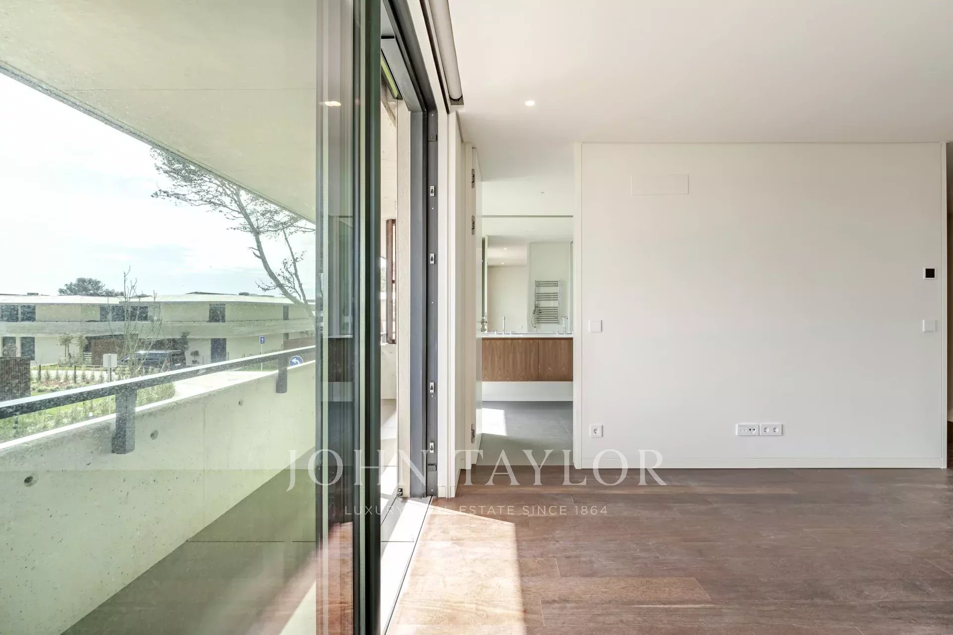 Im Obergeschoss befinden sich drei Schlafzimmer mit eigenem Bad, jedes mit Zugang zu einem gemeinsamen 29 m² großen Balkon, der viel Licht und eine schöne Aussicht bietet.