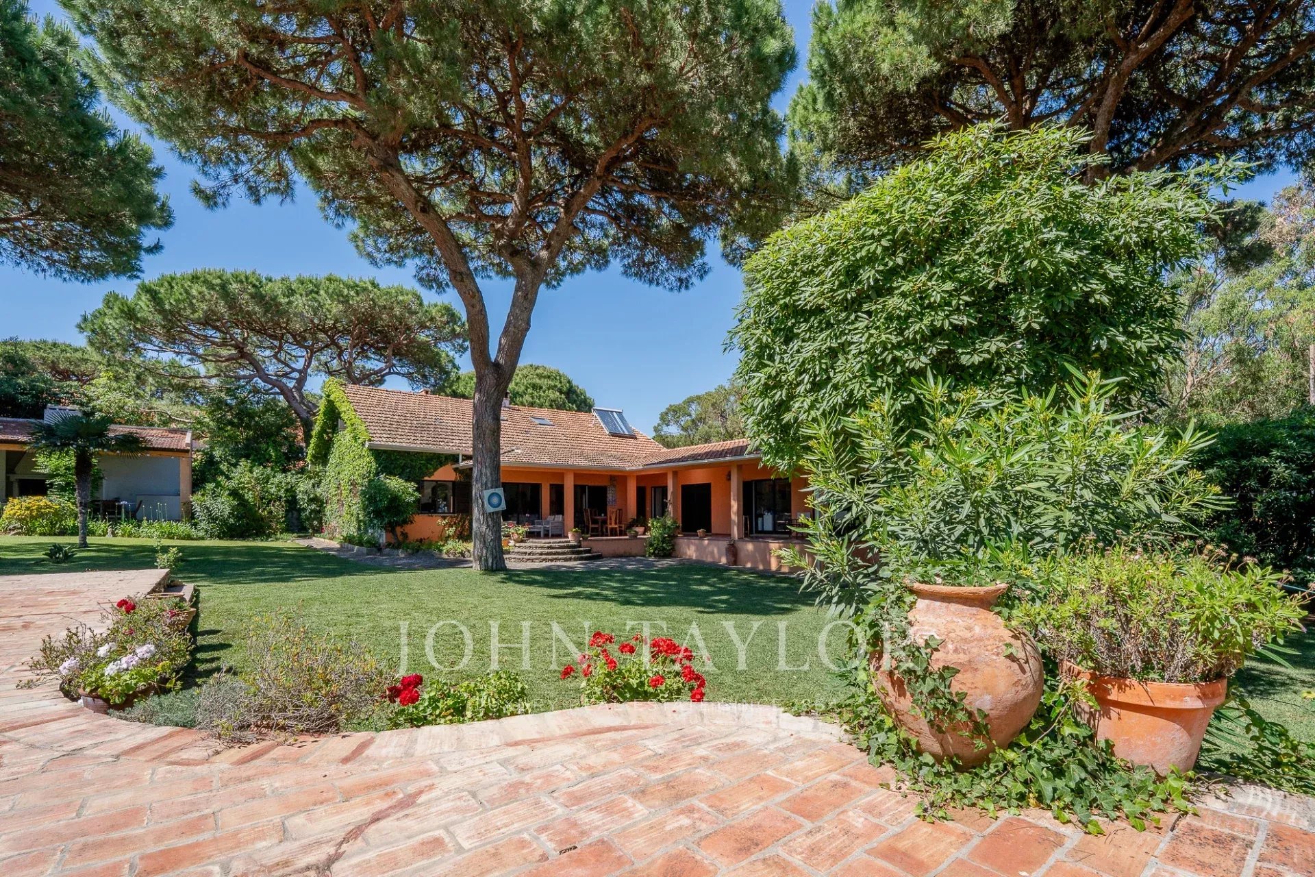 Umgeben von viel Grün und der friedlichen Atmosphäre des Golfplatzes liegt diese Villa in einer seltenen natürlichen Umgebung, ideal für diejenigen, die einen Lebensstil mit absoluter Privatsphäre, direktem Kontakt zur Natur und der Nähe zum Meer, den besten Golfplätzen der Region, Reitzentren, Luxushotels und renommierten Restaurants suchen.