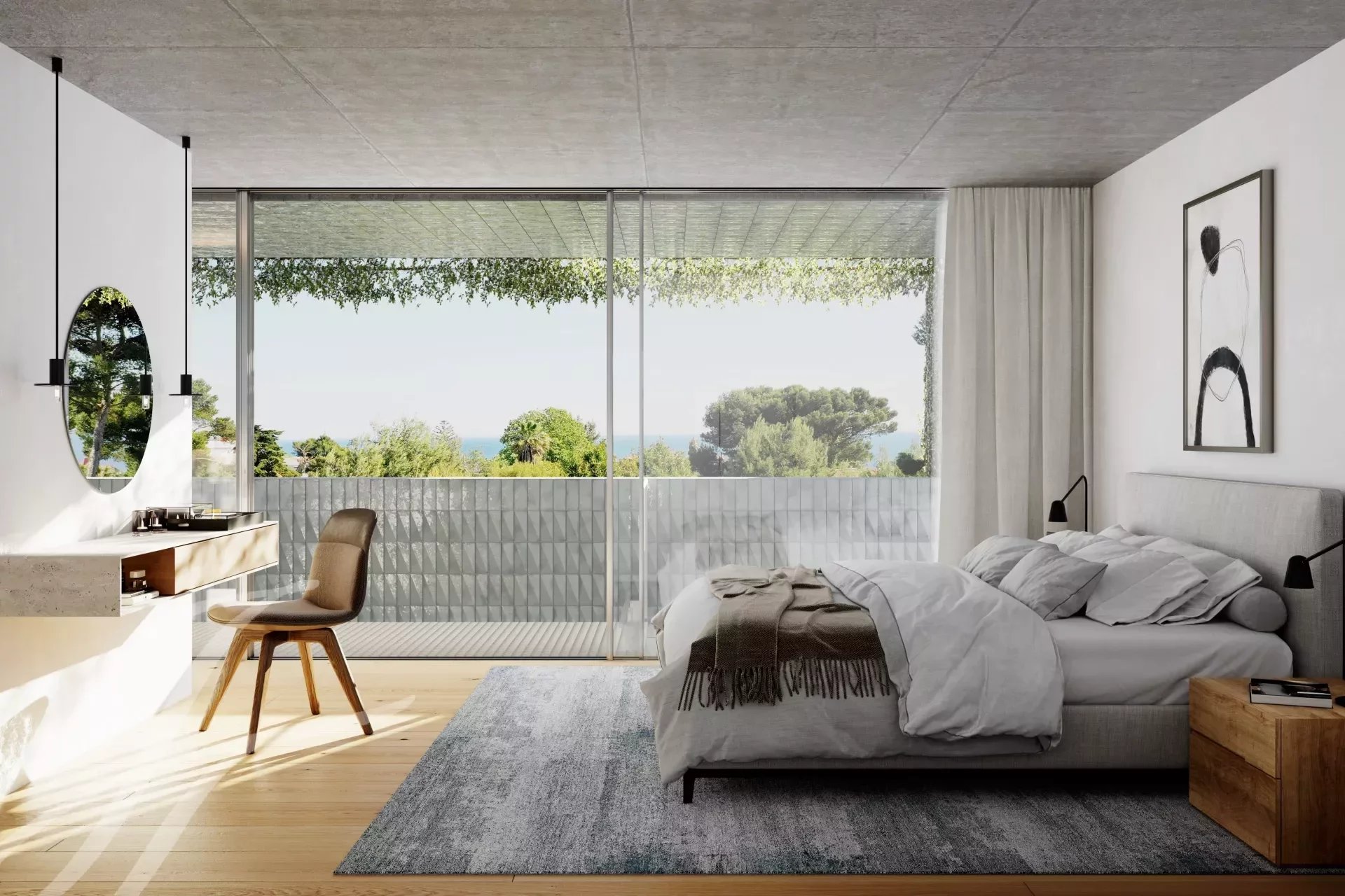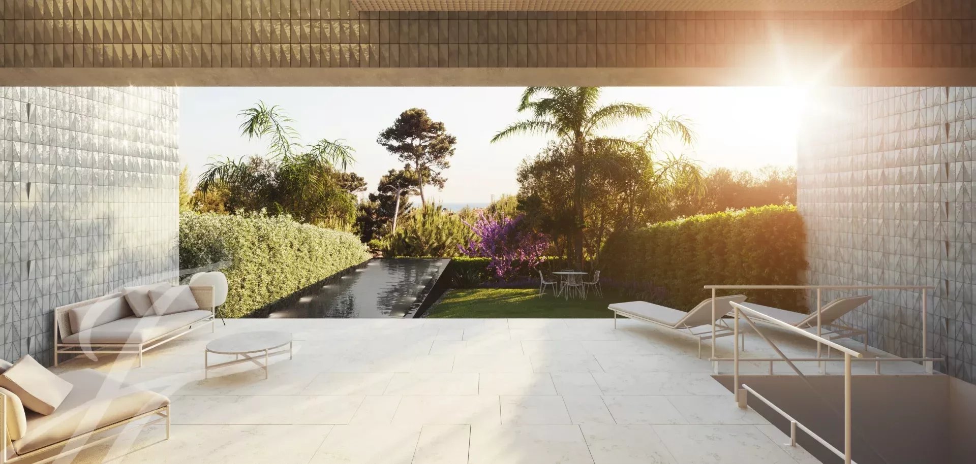 Mit ihrem minimalistischen Design, den offenen Räumen und der exzellenten Sonnenausrichtung liegt diese exklusive Siedlung mit nur sieben Villen direkt neben dem Garten Pinhal de Santa Maria an der Avenida do Lidador und bietet einen atemberaubenden Garten- und Meerblick.