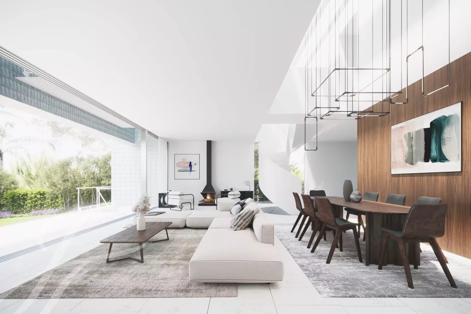 Jede Villa verfügt über einen privaten Garten, einen Infinity-Pool, eine Lounge auf dem Dach, eine private Wäscherei und einen Fitnessraum sowie einen Panoramablick auf das Meer von Estoril bis zur Bucht von Cascais. Sie sind mit Hausautomatisierungssystemen, einem Aufzug und Parkplätzen mit vorinstallierten Ladestationen für Elektrofahrzeuge ausgestattet.