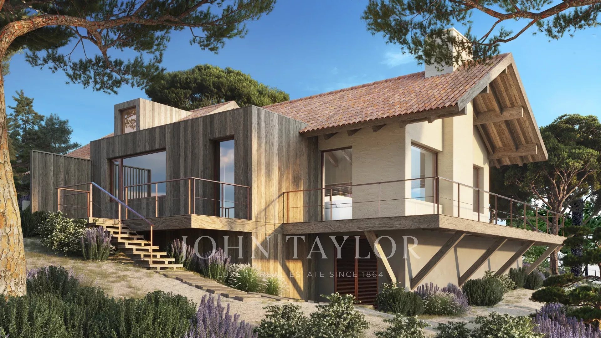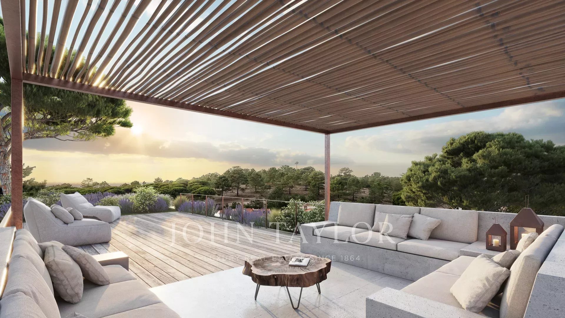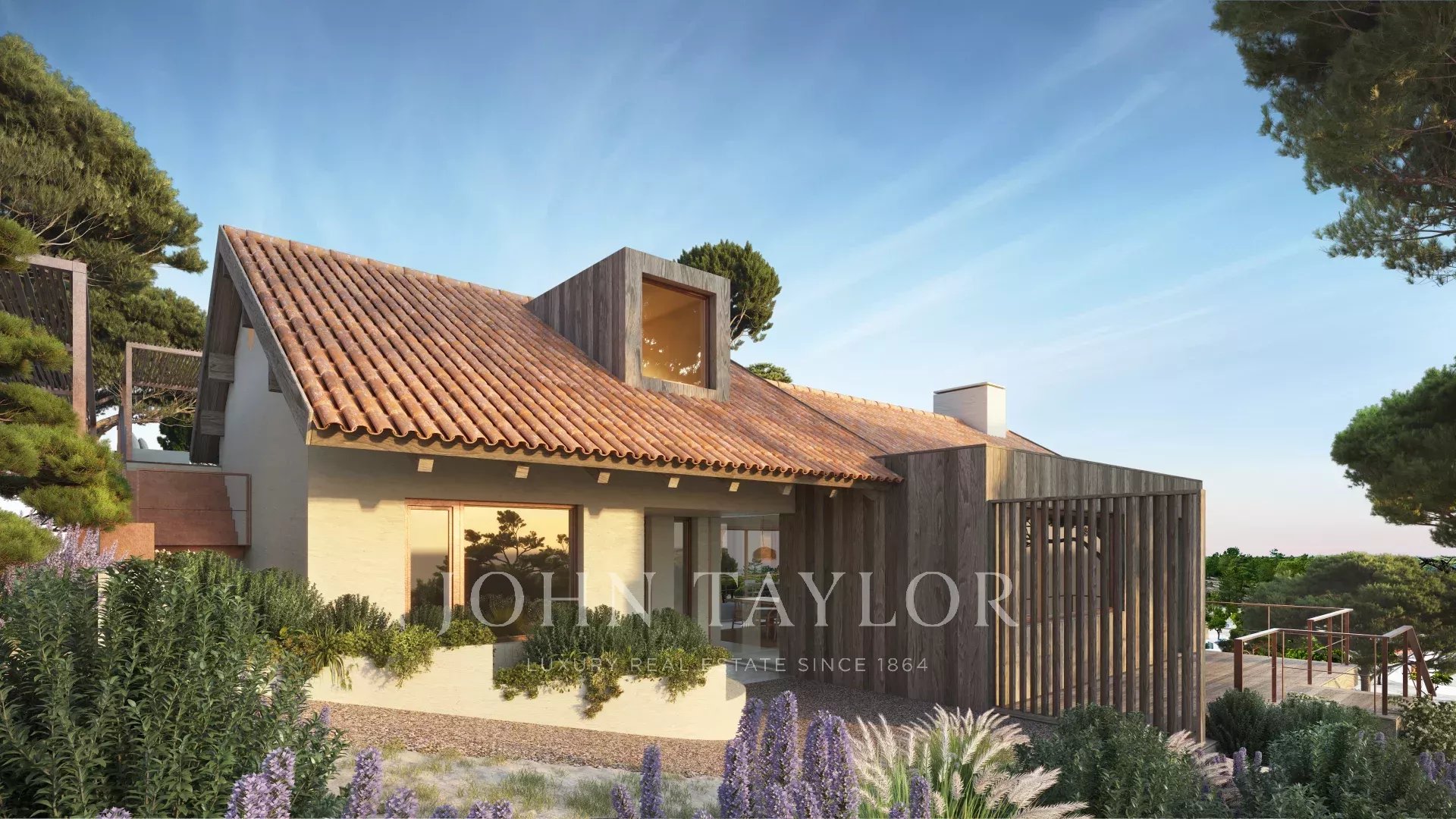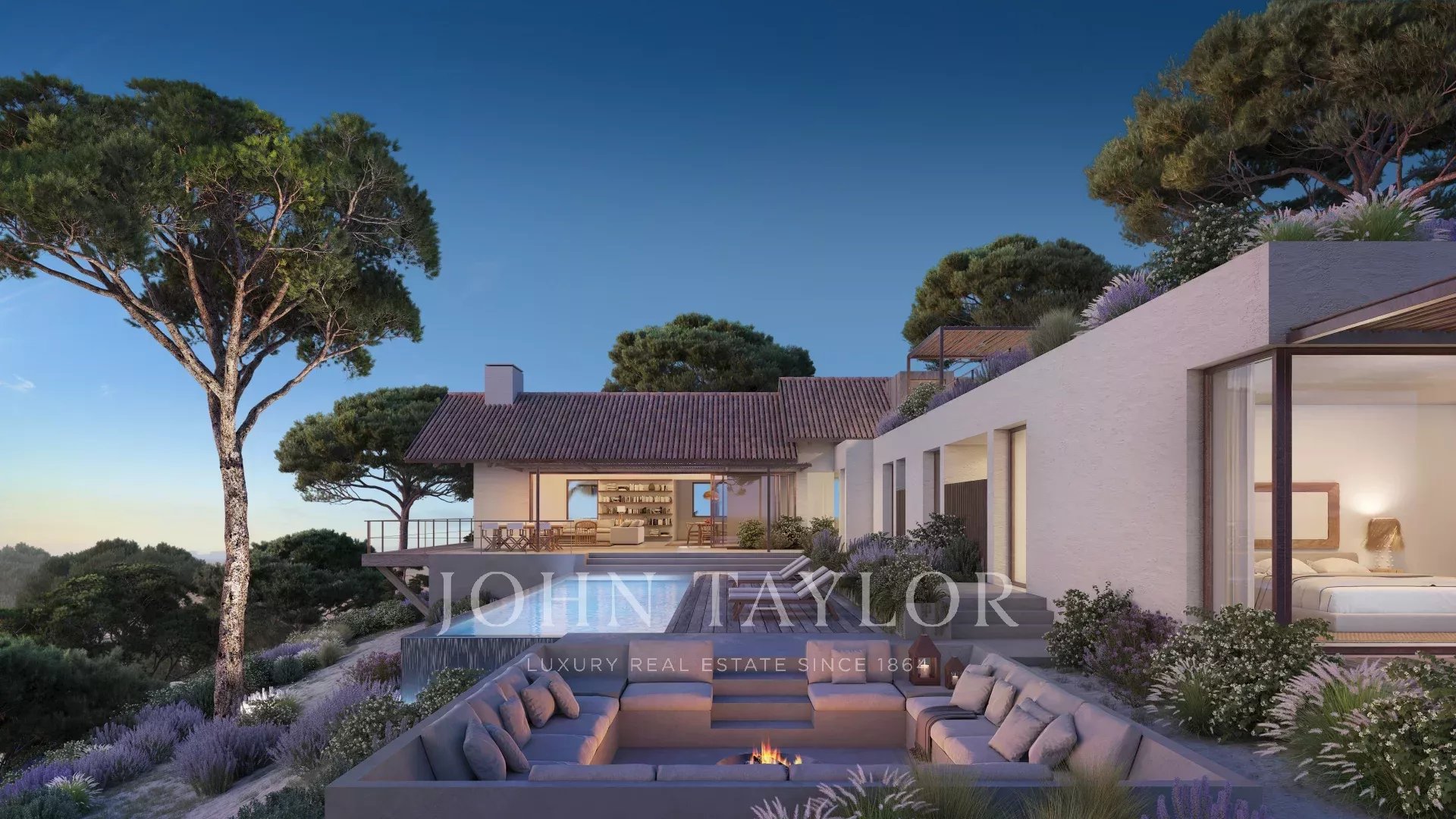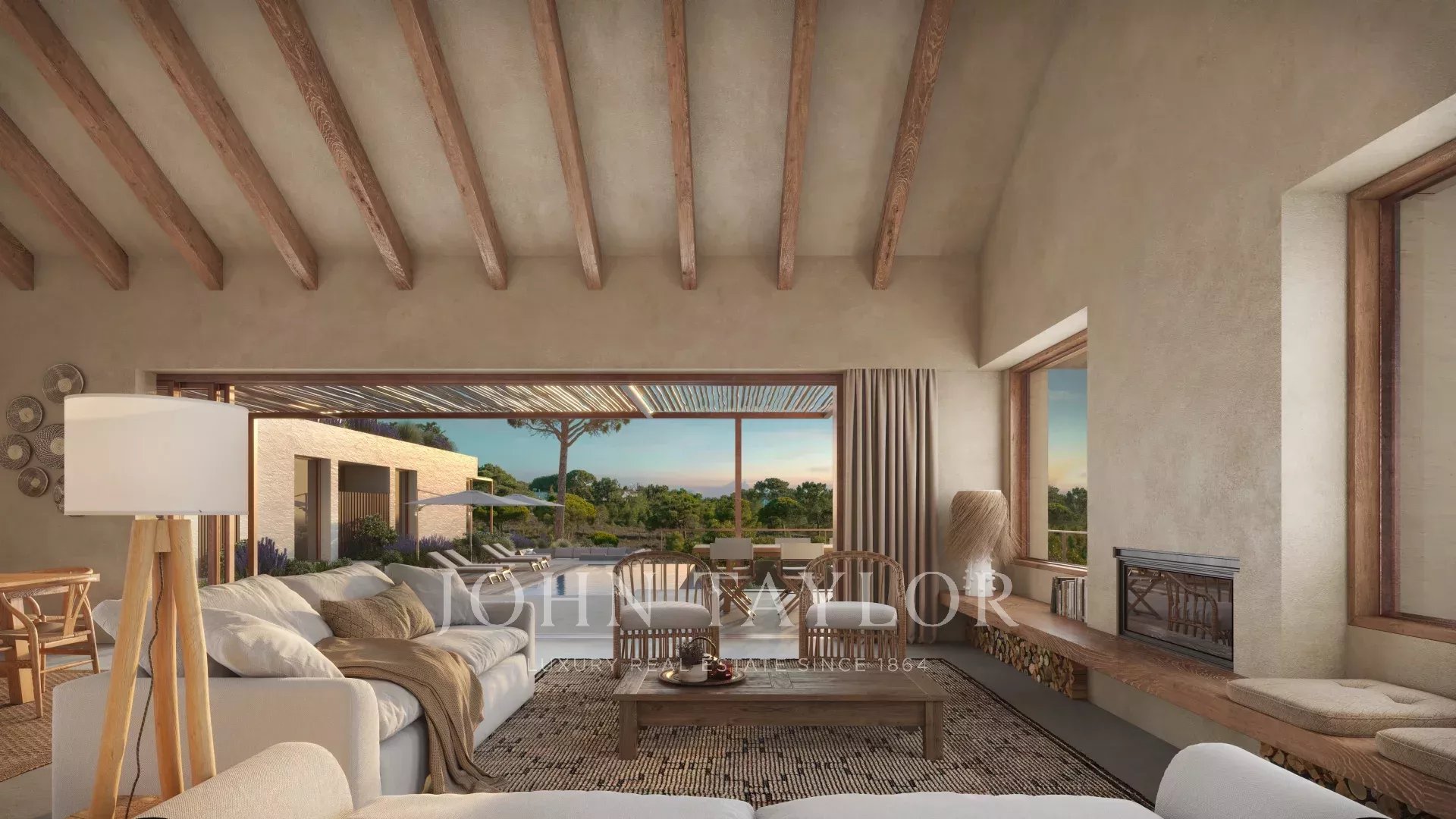 Der Außenbereich umfasst 100 m² überdachte Terrassen, einen 50 m² großen beheizten Pool, eine Feuerstelle für kühlere Abende und eine 70 m² große Dachterrasse, von der aus man die umliegende Landschaft genießen kann.