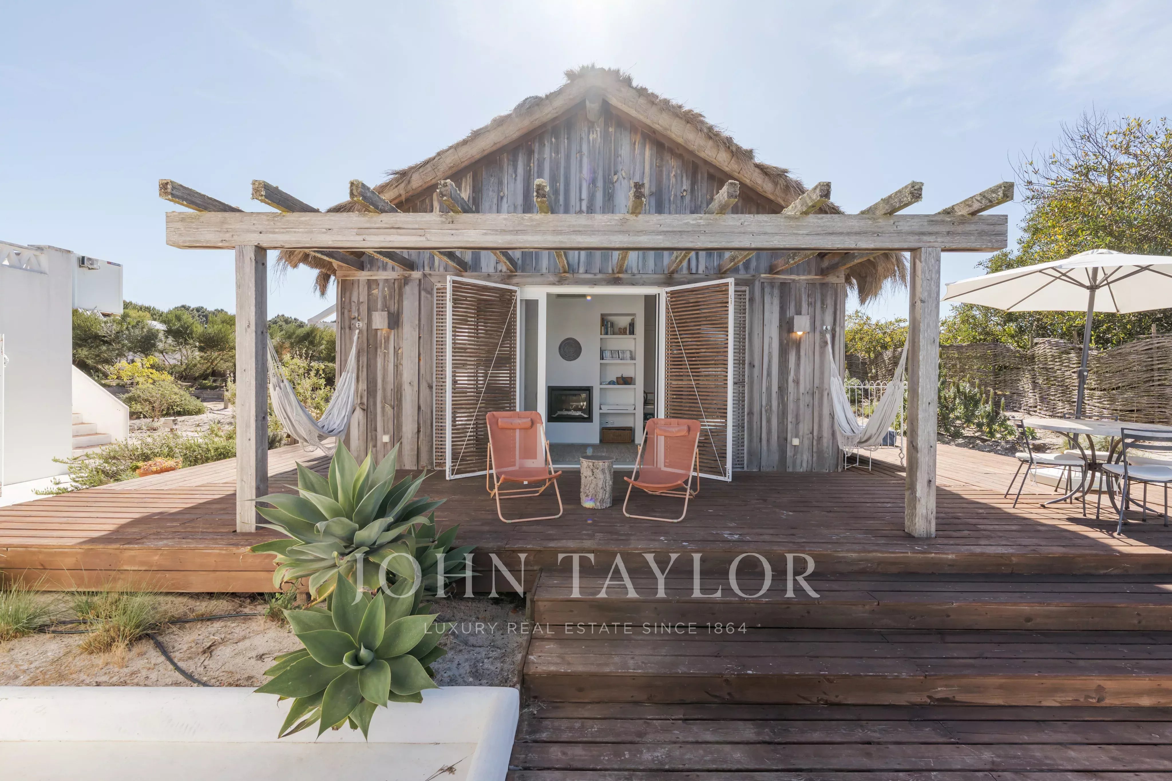 Die Außenbereiche erweitern das Wohnerlebnis, mit mehreren Terrassen und Dachflächen, die die natürliche Umgebung vollständig umarmen. Der gestaltete Garten fügt sich harmonisch in die Umgebung ein, während der Swimmingpool ideal positioniert ist, um offene Ausblicke über die Felder, Dünen und atemberaubende Sonnenuntergänge zu bieten.