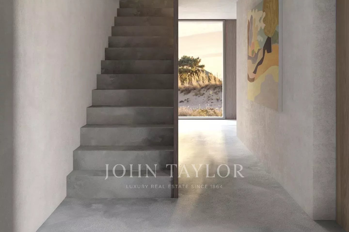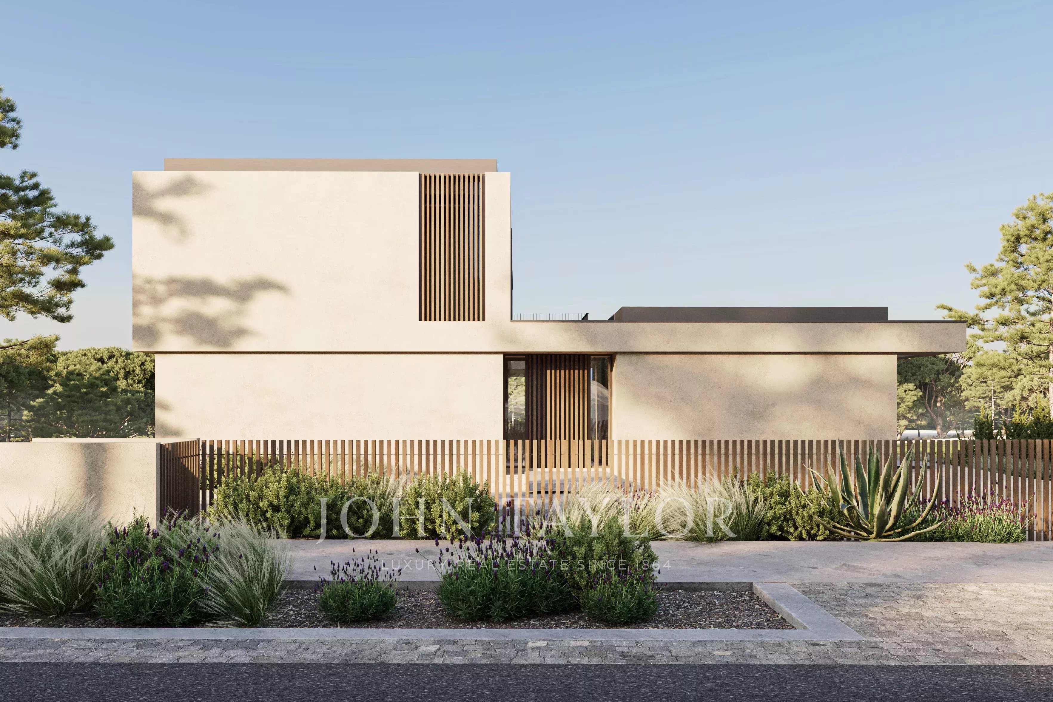 Die Architektur zeichnet sich durch klare horizontale Volumen, minimalistische Linien und große verglaste Öffnungen aus, die die Transparenz erhöhen und die Kontinuität zwischen Innen- und Außenräumen verstärken.