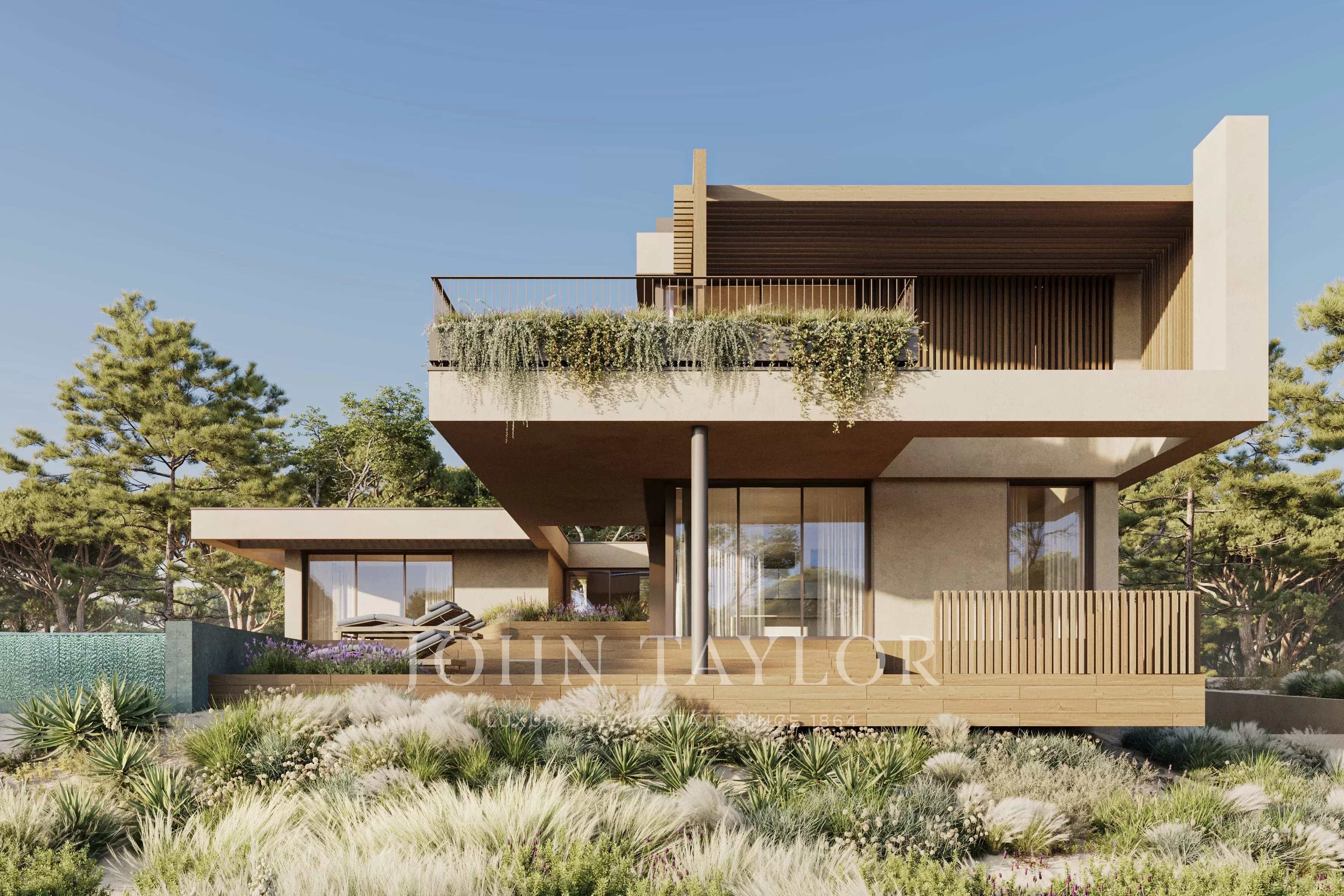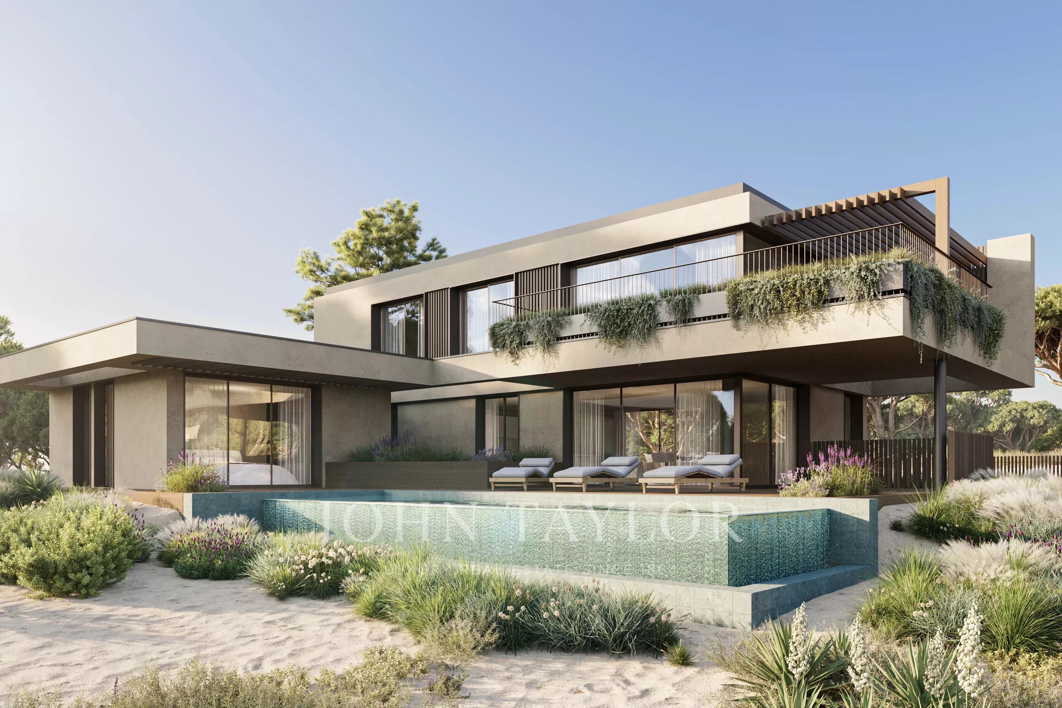 Diese 4-Schlafzimmer-Villa befindet sich in der prestigeträchtigen Anlage Pinheirinho Comporta auf einem 1.000 m² großen Grundstück in erstklassiger Golflage und bietet einen freien Blick auf den Golfplatz und die Seen sowie eine ruhige natürliche Umgebung. Die vom Architekturbüro Metro Urbe entworfene Immobilie wird schlüsselfertig und nach einem hohen Standard fertiggestellt übergeben.