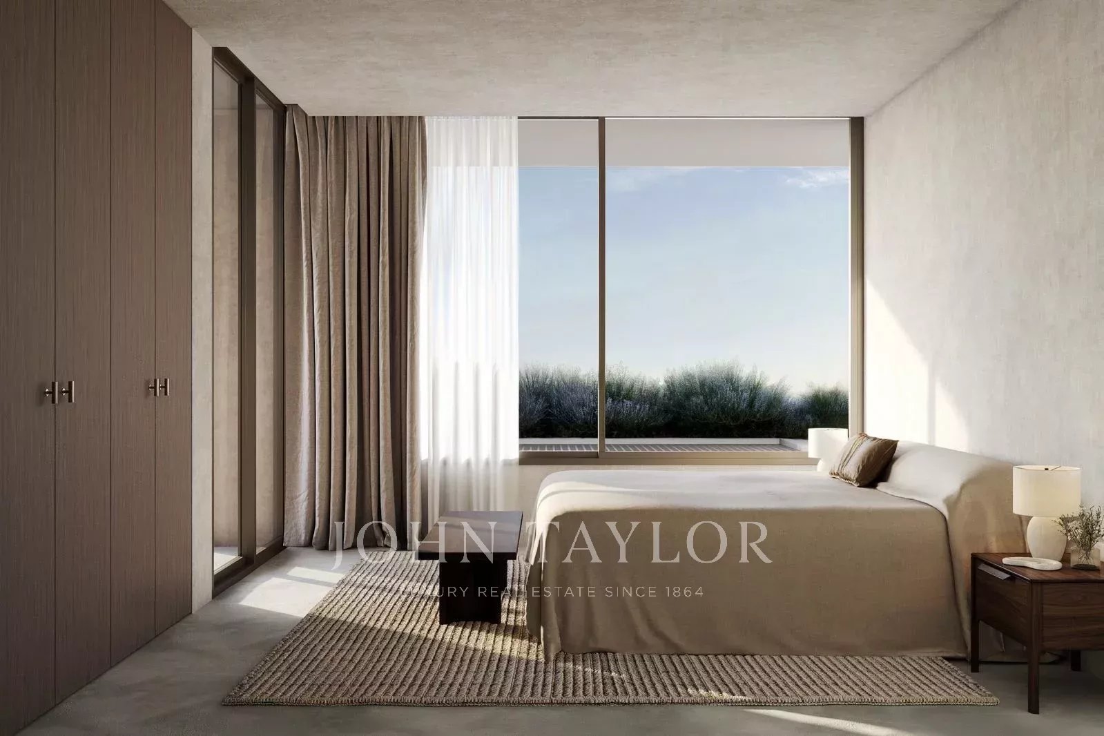 Im Obergeschoss befinden sich die 29 m² große Hauptsuite mit einem 14 m² großen Badezimmer und einem privaten Balkon sowie drei weitere Schlafzimmer mit eigenem Bad und großzügigen Proportionen. Die Aufteilung sorgt für Privatsphäre und Komfort, mit sorgfältig durchdachten Verkehrsflächen.