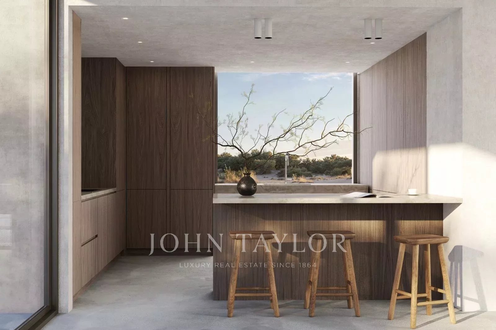 Diese Villa mit 4 Schlafzimmern befindet sich in der prestigeträchtigen Siedlung Pinheirinho Comporta auf einem großzügigen 1.500 m² großen Grundstück, das Privatsphäre und eine nahtlose Integration in die umgebende Pinienwald- und Dünenlandschaft bietet. Die von AQA Architecture entworfene Immobilie folgt einer zeitgenössischen architektonischen Sprache, die sich durch niedrige, lineare Volumina, natürliche Materialien und einen zurückhaltenden ästhetischen Ansatz auszeichnet.