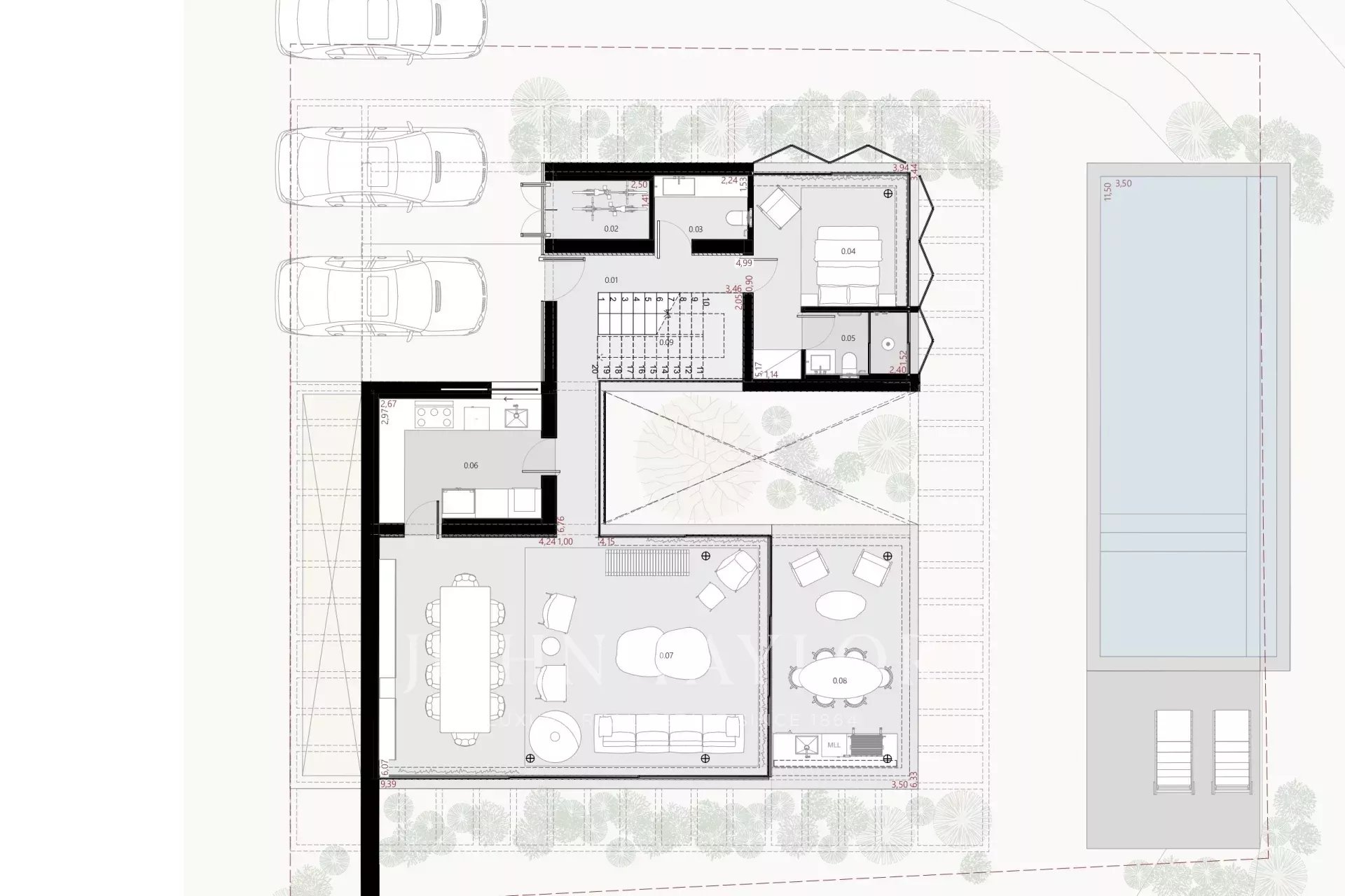 Die Villa bietet vier Schlafzimmer mit eigenem Bad, ein geräumiges Wohnzimmer mit direktem Zugang zum Garten und ein Untergeschoss mit natürlichem Licht, das für ein Heimkino, ein Büro oder eine zusätzliche Suite vorbereitet ist. Eine Waschküche und ein Servicebereich sind ebenfalls vorhanden. Die Fertigstellung wird bis Ende 2025 erwartet.