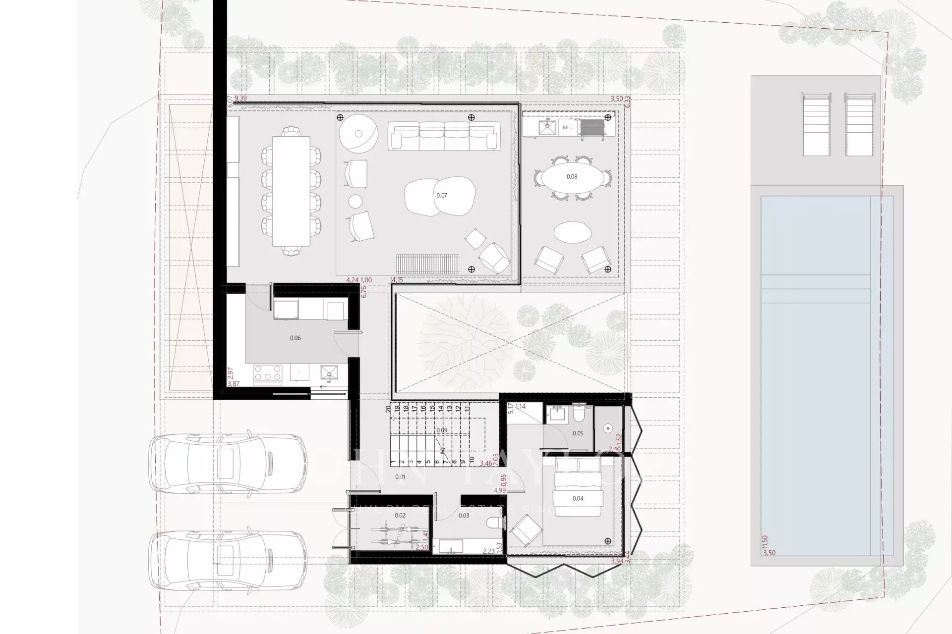 Die Villa bietet vier Schlafzimmer mit eigenem Bad, ein geräumiges Wohnzimmer mit direktem Zugang zum Garten und ein Untergeschoss mit natürlichem Licht, das für ein Heimkino, ein Büro oder eine zusätzliche Suite vorbereitet ist. Eine Waschküche und ein Servicebereich sind ebenfalls vorhanden. Die Fertigstellung wird bis Ende 2025 erwartet.