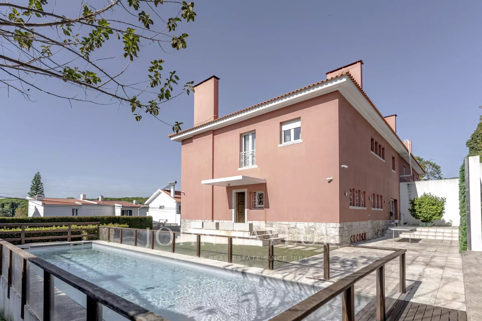 Das Anwesen verfügt über einen hellen, einladenden Swimmingpool, der sich perfekt für die Freizeitgestaltung der Familie eignet. Umgeben von erstklassigen Annehmlichkeiten wie Schulen, Supermärkten, Apotheken und Erholungsgebieten bietet es auch einen schnellen Zugang zum Zentrum von Lissabon und der malerischen Küste von Cascais.