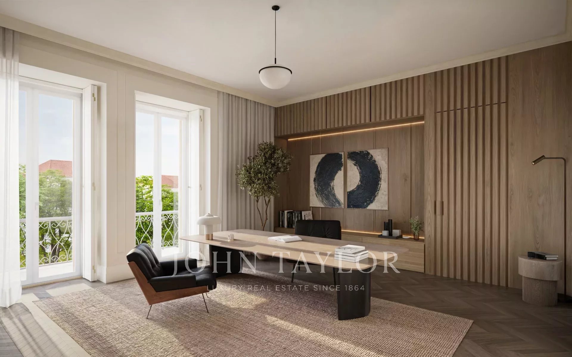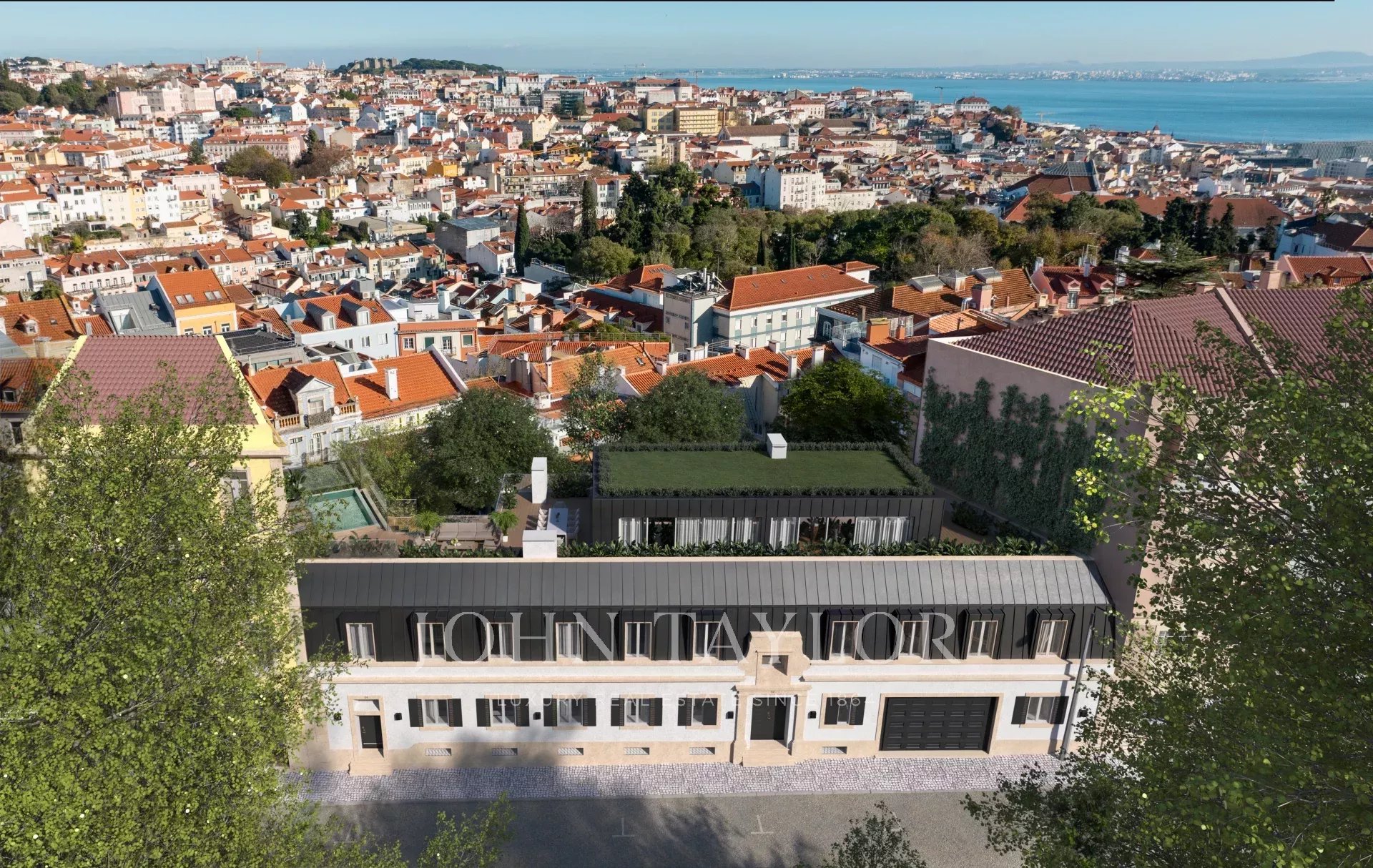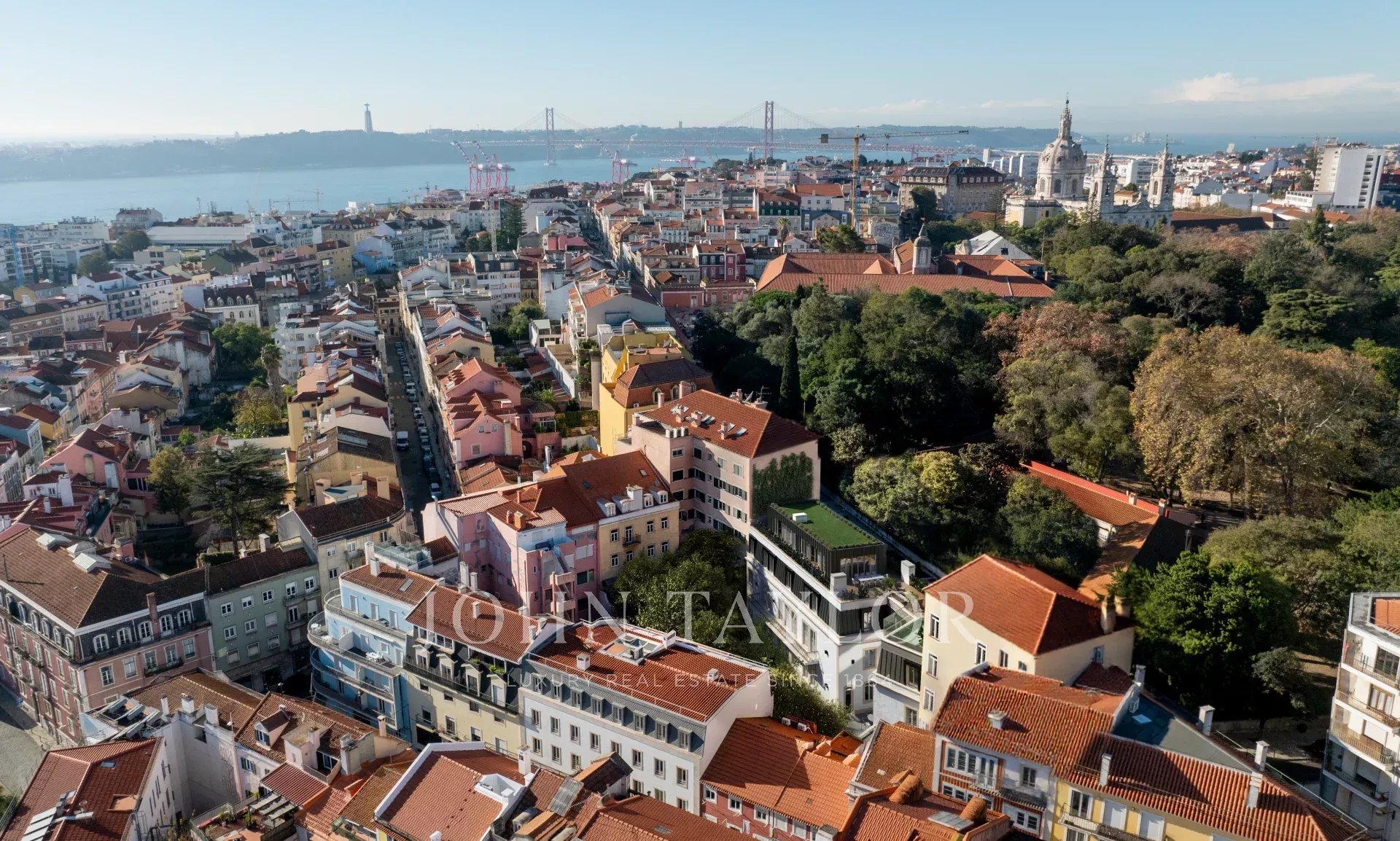 Nur wenige Schritte vom Jardim da Estrela entfernt und mit weitem Blick über den Tejo erstreckt sich die Immobilie über vier Etagen und 1.250 m² Wohnfläche auf einem 660 m² großen Grundstück. Es ist lichtdurchflutet und verfügt über acht geräumige Schlafzimmer, Familiensuiten und großzügige Empfangsbereiche mit direktem Zugang zu einem 250 m² großen Privatgarten.