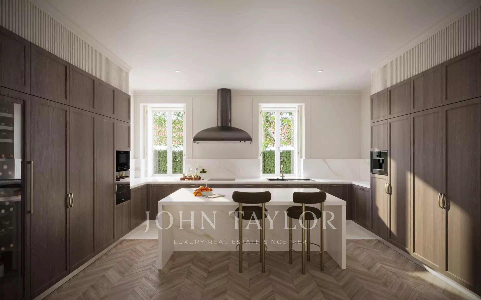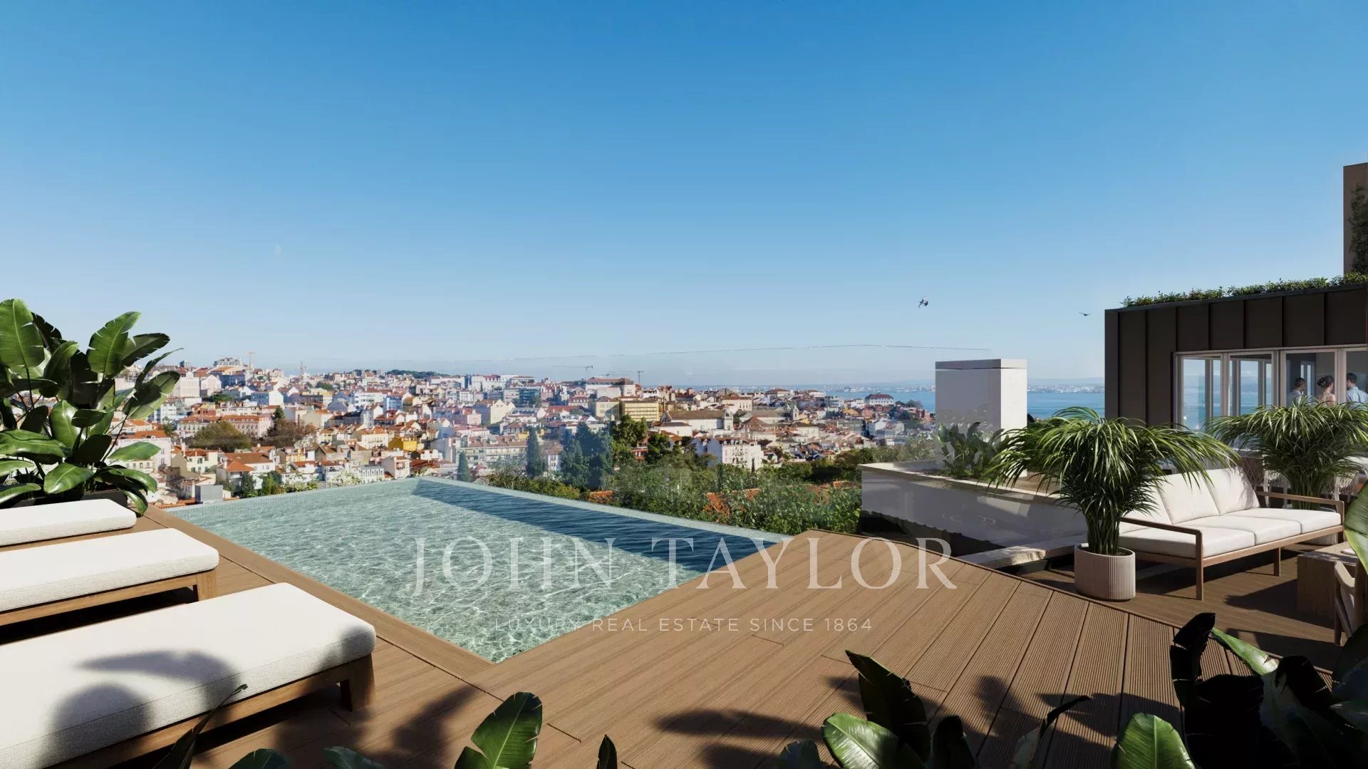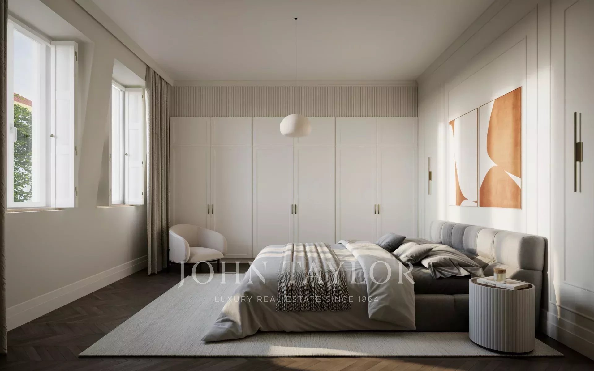 Nur wenige Schritte vom Jardim da Estrela entfernt und mit weitem Blick über den Tejo erstreckt sich die Immobilie über vier Etagen und 1.250 m² Wohnfläche auf einem 660 m² großen Grundstück. Es ist lichtdurchflutet und verfügt über acht geräumige Schlafzimmer, Familiensuiten und großzügige Empfangsbereiche mit direktem Zugang zu einem 250 m² großen Privatgarten.