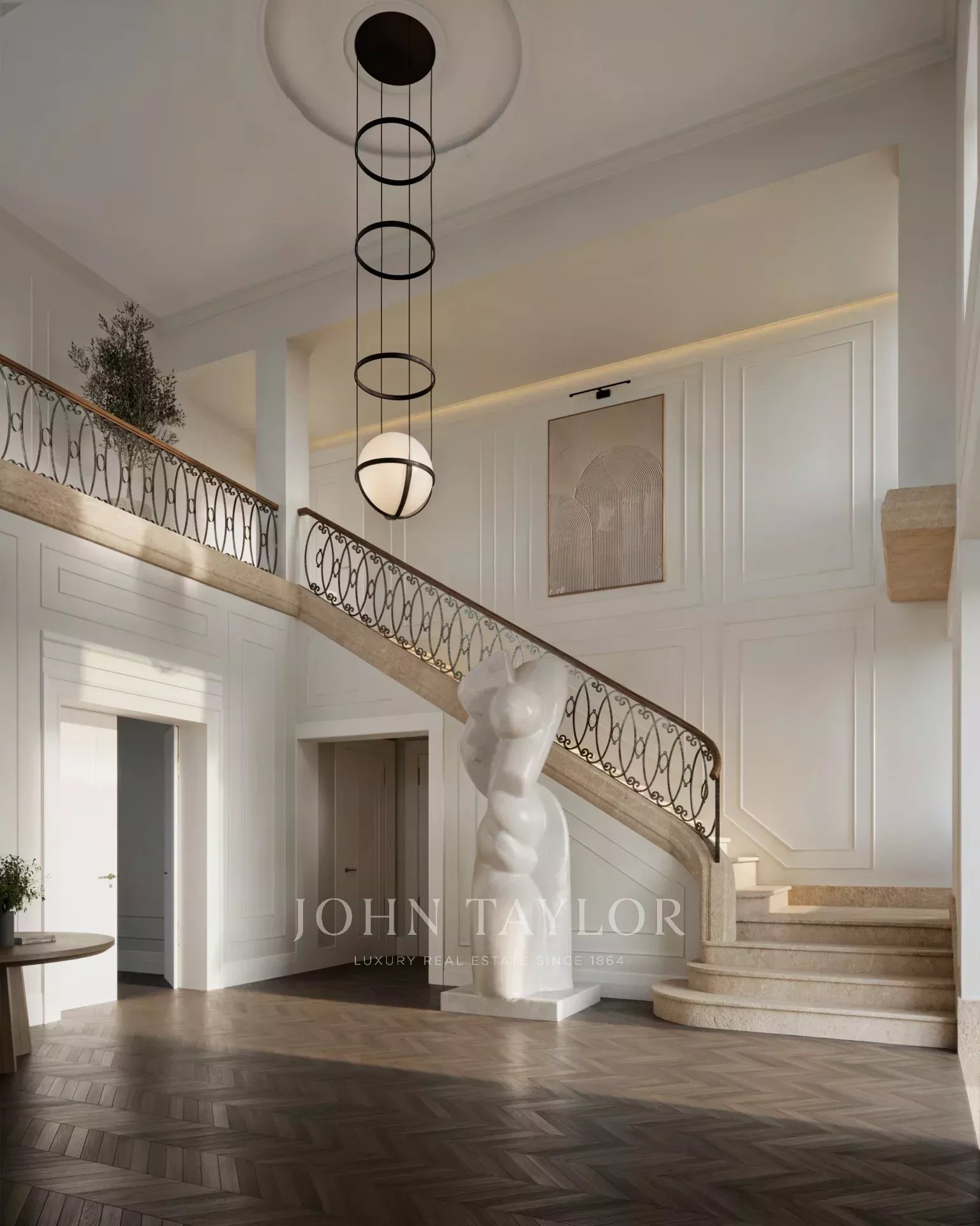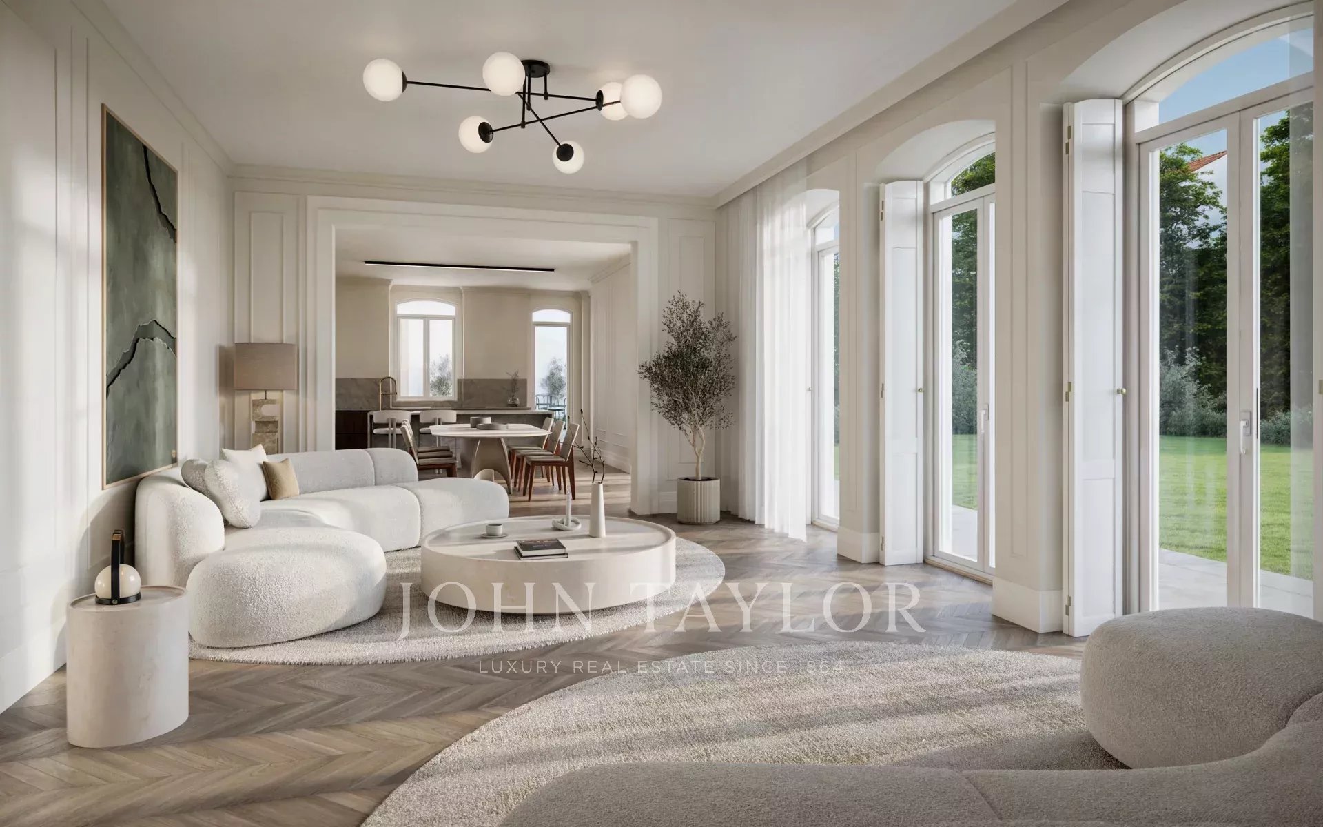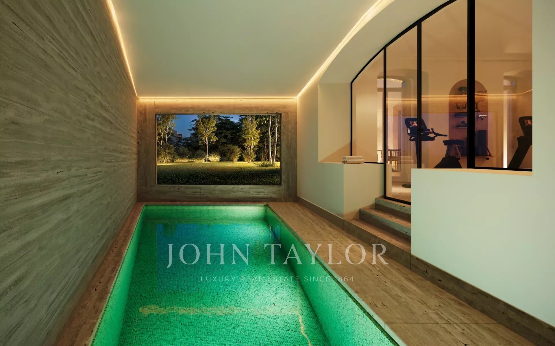 Der Grundriss ist auf ein einfaches, elegantes Leben ausgelegt. Die wichtigsten sozialen Bereiche befinden sich im Erdgeschoss, während die oberen Etagen private, erholsame Räume bieten. Eine Dachterrasse mit beheiztem Pool, Jacuzzi, Essbereich im Freien und Loungebereichen mit Blick auf den Fluss und den Garten rundet das Ganze ab.