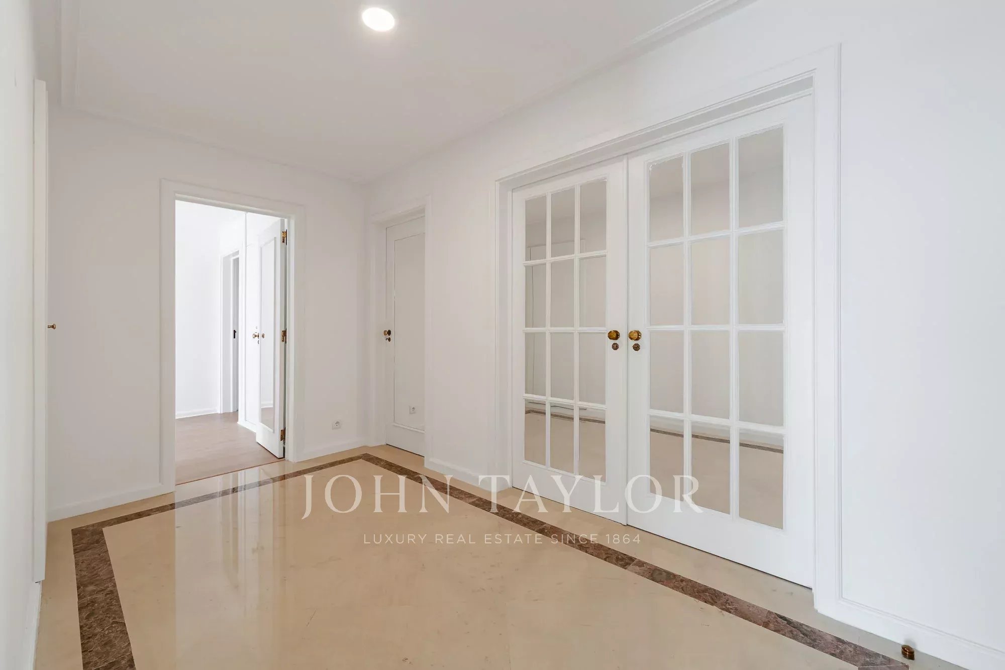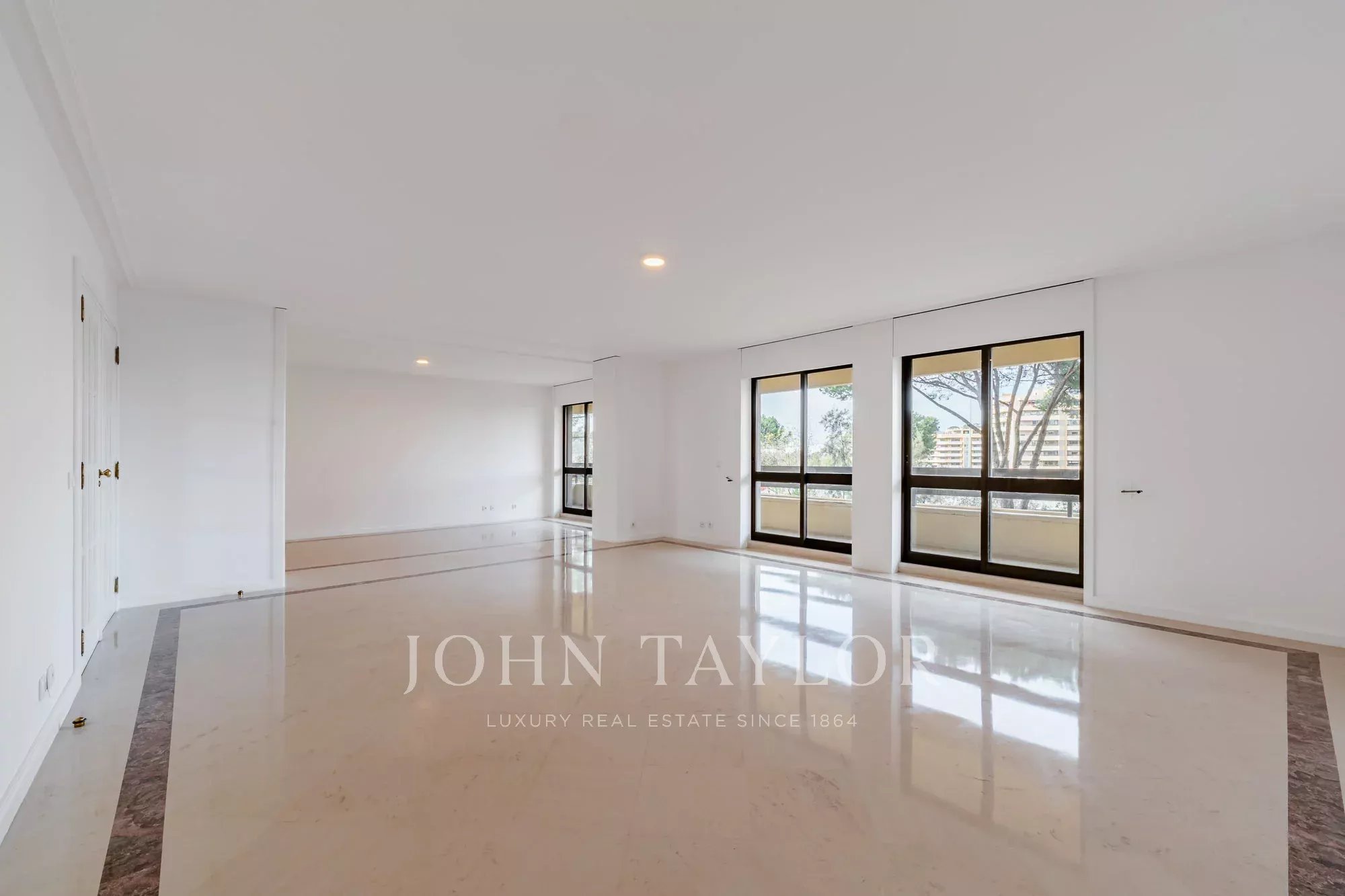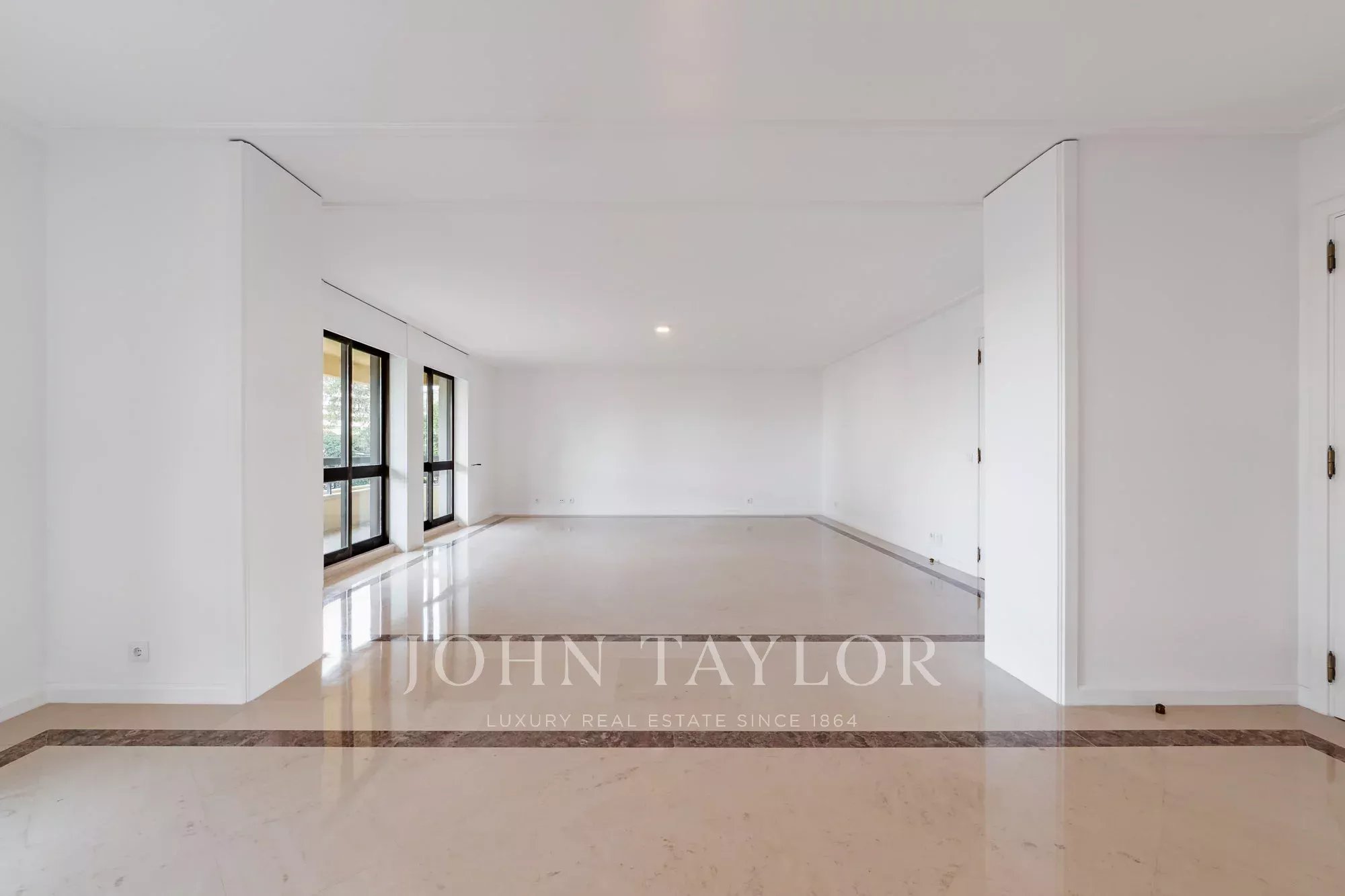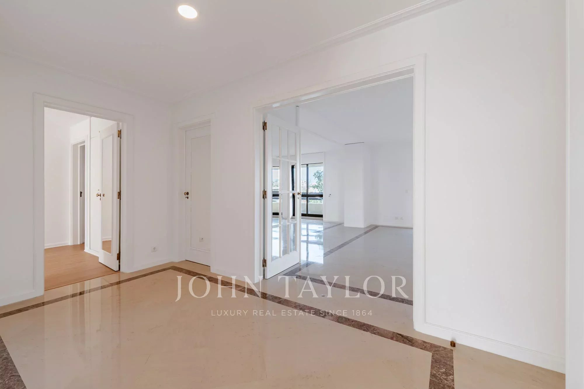 Die Wohnung verfügt über ein großzügiges, lichtdurchflutetes Doppelwohnzimmer, das sich sowohl zum Entspannen als auch zum Unterhalten eignet und direkten Zugang zu einladenden Terrassen bietet. Ein geräumiger Essbereich bietet den perfekten Rahmen für Familienmahlzeiten und geselliges Beisammensein.