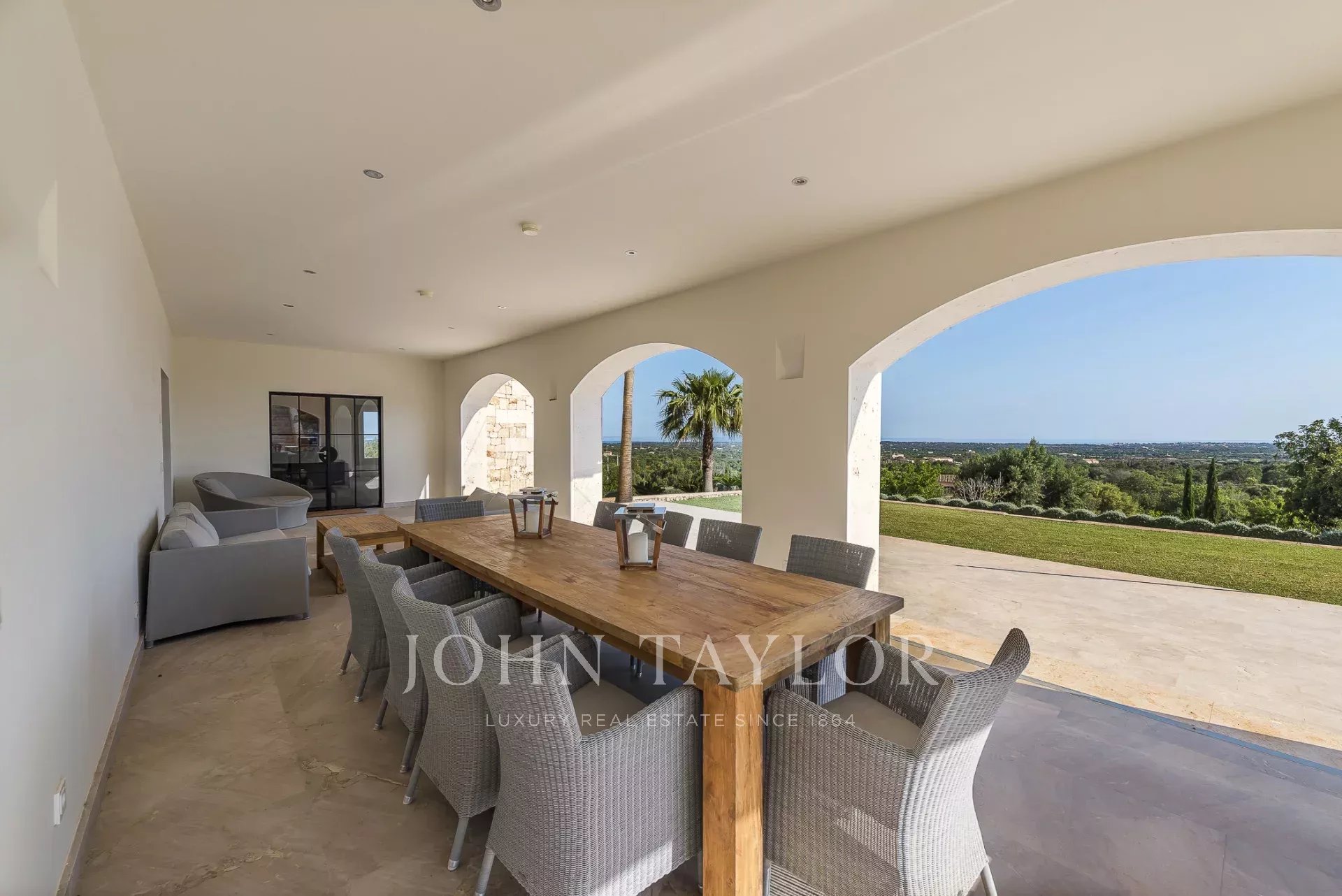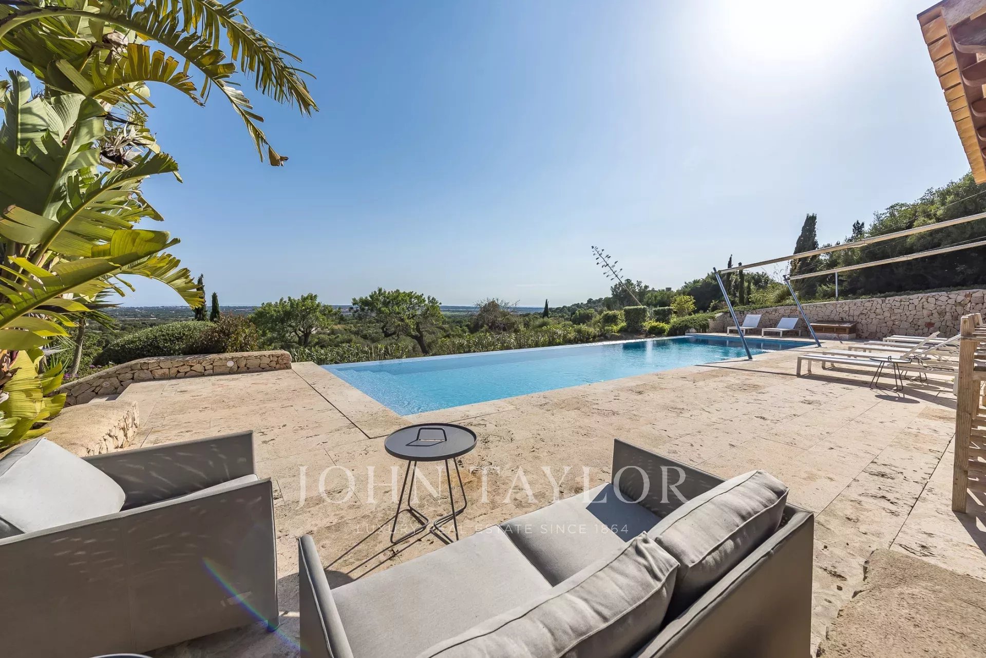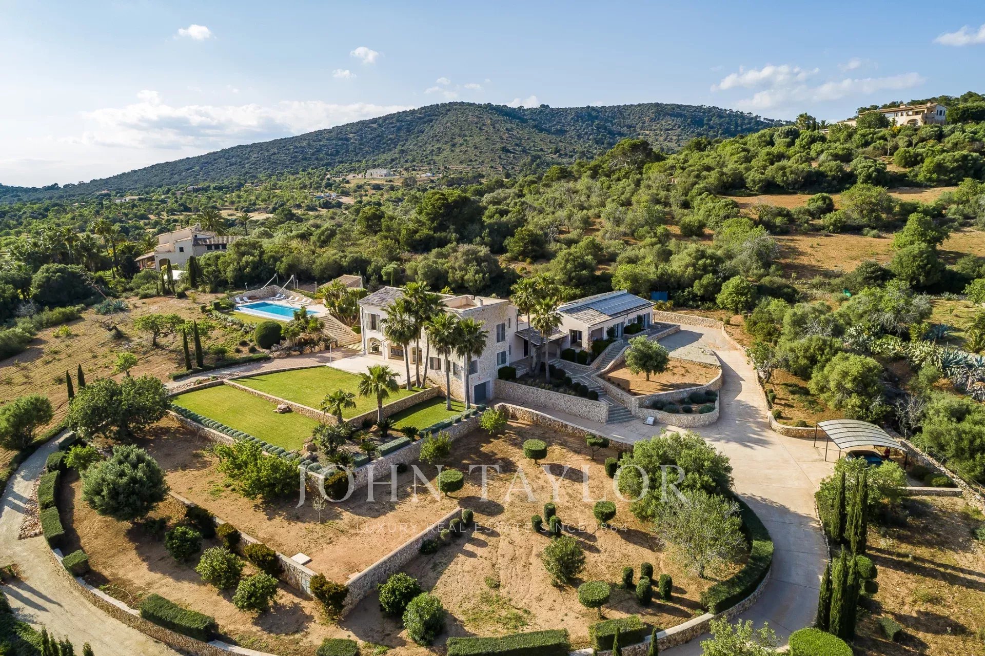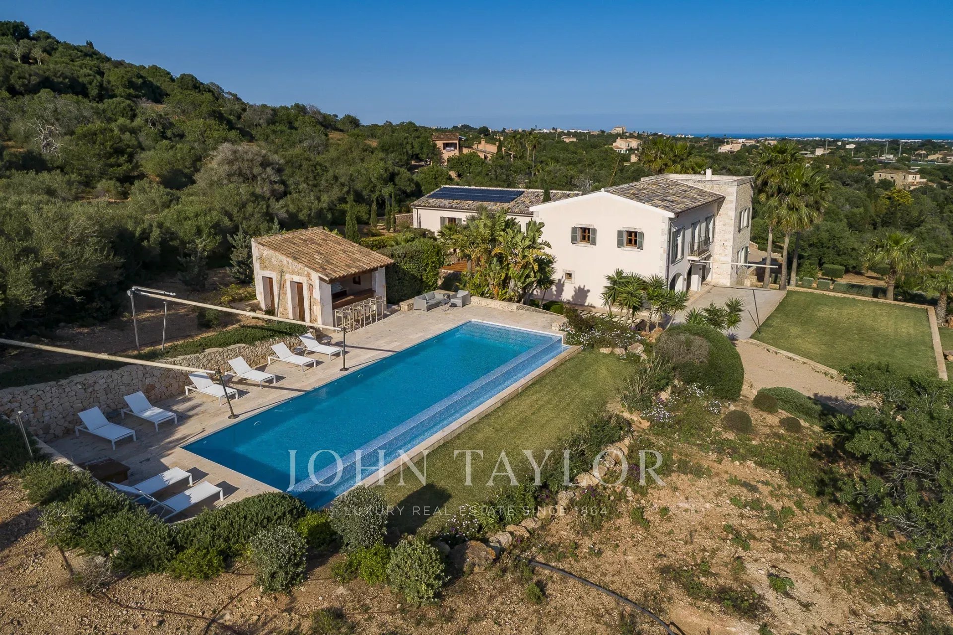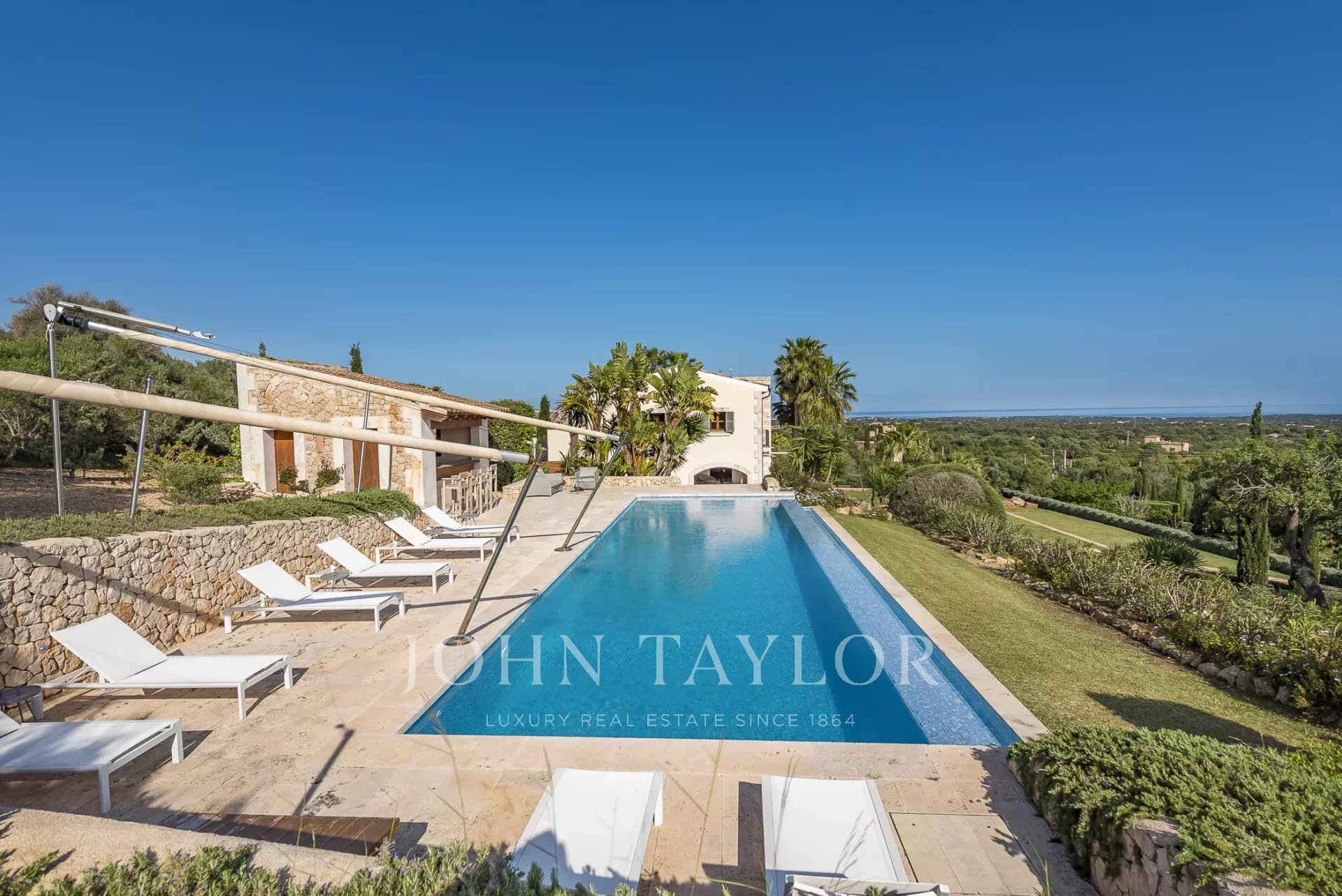 Im Südosten der Insel, inmitten einer gepflegten, aufwendig angelegten Gartenlandschaft befindet sich diese neu erbaute Finca. Sie bietet Platz für bis zu 8 Personen, aufgeteilt auf ein Haupthaus mit Turmzimmer sowie einem Gästetrakt. Mehrere überdachte und offene Terrassen mit Chill-out Bereichen und ein grosser Esszimmertisch laden zum gemeinsamen Verweilen ein. Genießen Sie ein leckeres Steak vom eigenen Grill oder ein Glas Wein, während Sie Ihren Blick über Alqueria Blanca bis hin zum Meer und der kleinen Insel Cabrera schweifen lassen. Der 18 Meter lange Überlauf-Pool auf der großen Sonnenterrasse sorgt für eine angenehme Erfrischung an heißen Sommertagen. Die moderne und gehobene Ausstattung der Finca, sowie die vollausgestattete Designerküche lassen keine Wünsche offen. Ein besonderes Highlight bietet der kleine Spa-Bereich mit beheizbarem Indoor-Pool mit Wasserfall, Duschbereich und einem WC. Die Finca ist nach Süden hin ausgerichtet und bietet damit viel Sonne. Klimaanlage und Fußbodenheizung machen diese Finca auch in den Wintermonaten attraktiv. Viele der beliebten Strände, sowie auch die Strände des Naturparks Mondragò sind in wenigen Autominuten zu erreichen. Der kleine Ort Alqueria Blanca mit einigen kleinen Restaurants befindet sich ebenfalls nur wenige Minuten entfernt.
