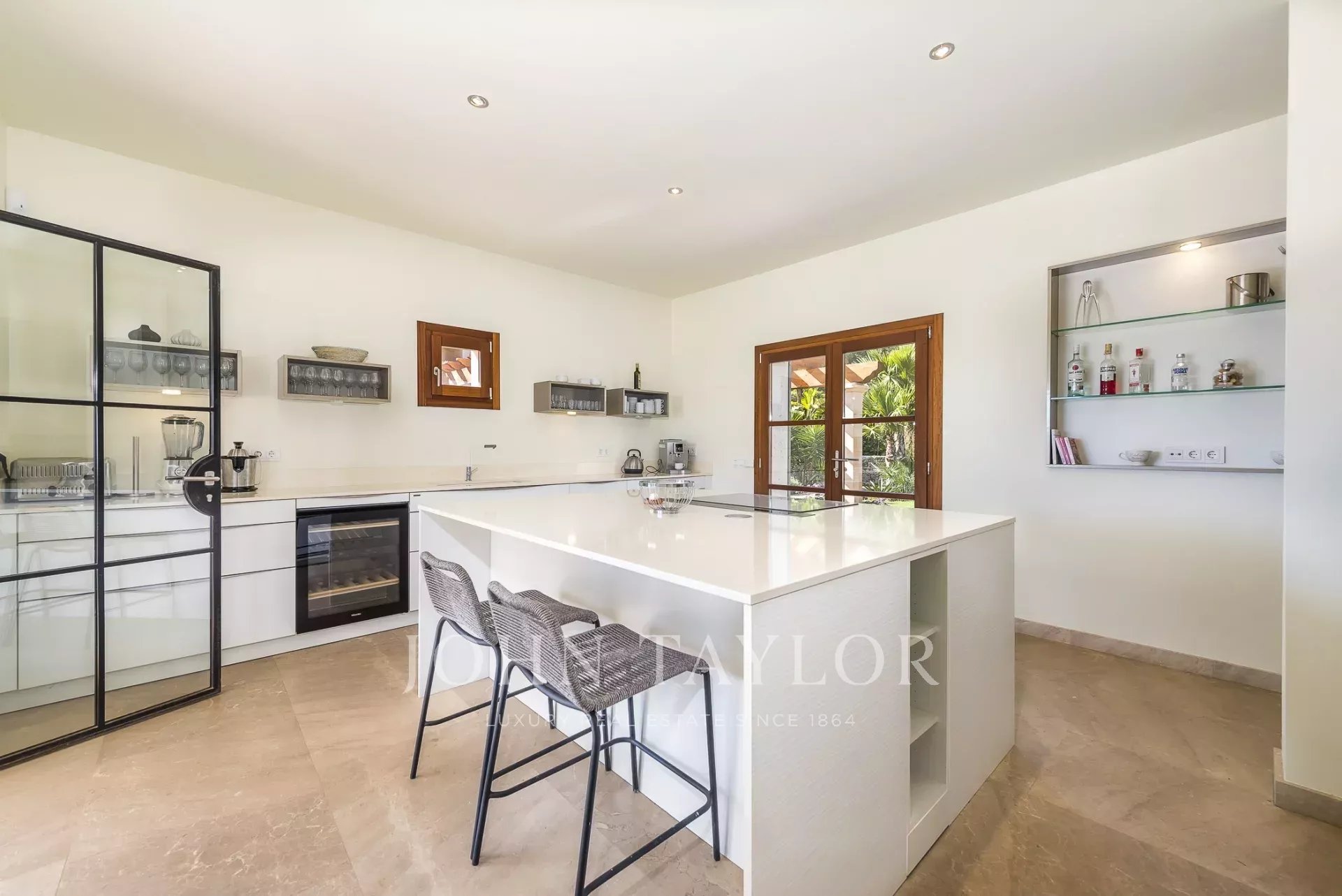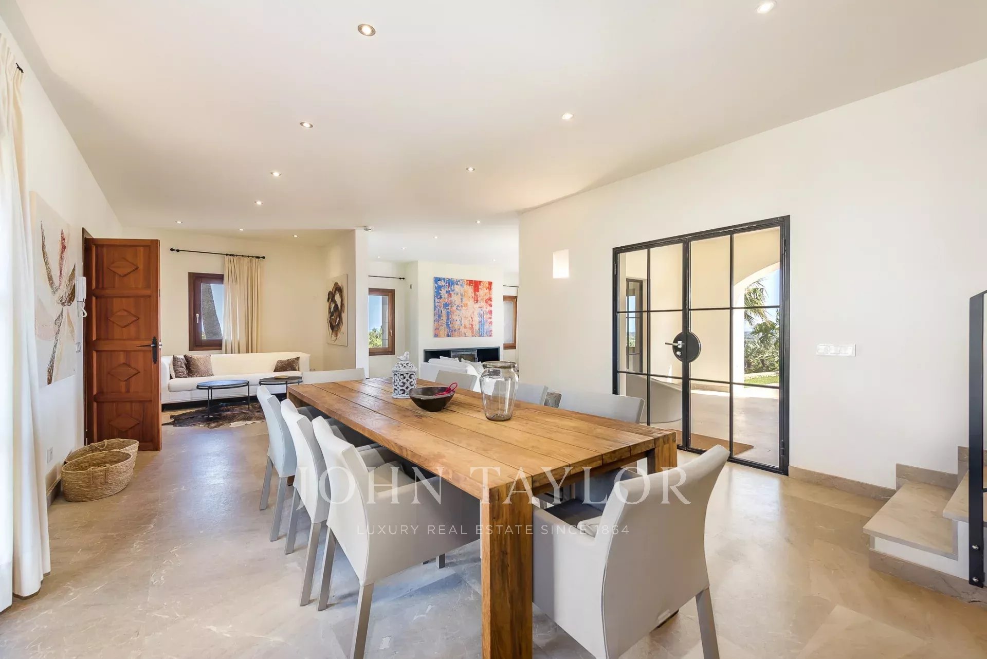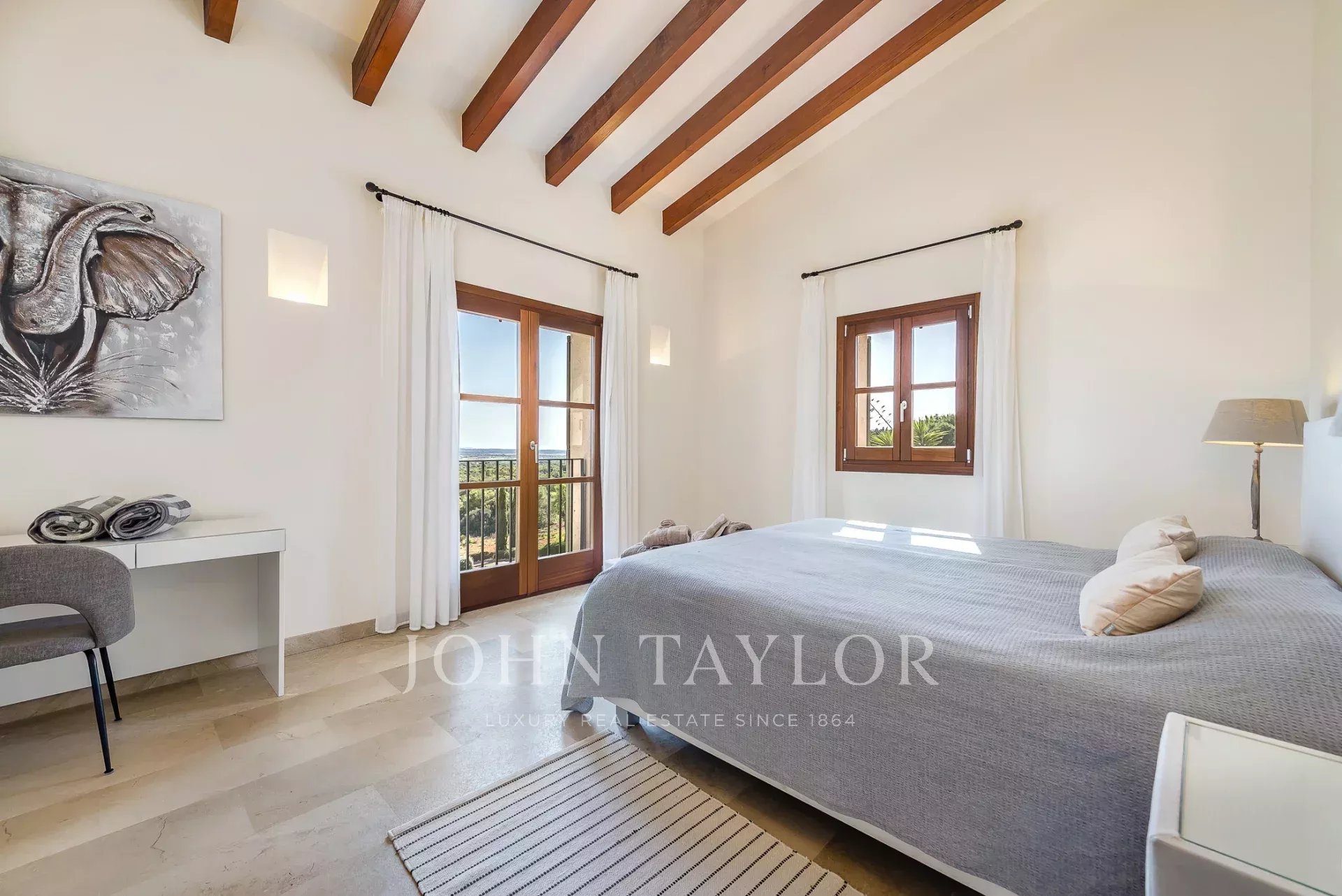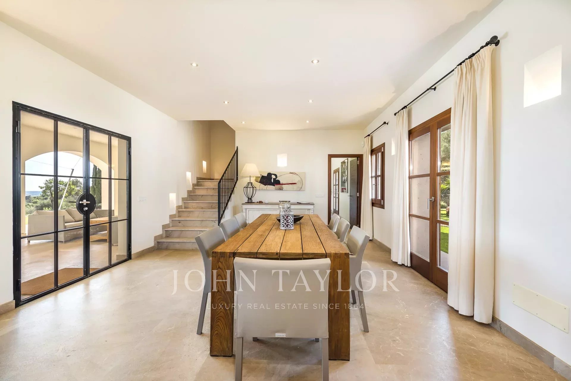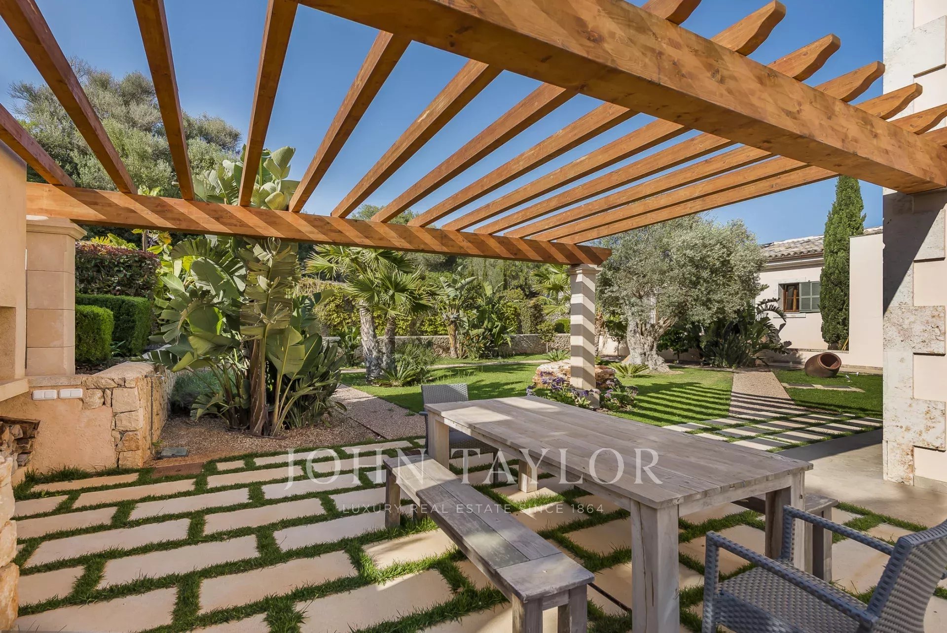 Im Südosten der Insel, inmitten einer gepflegten, aufwendig angelegten Gartenlandschaft befindet sich diese neu erbaute Finca. Sie bietet Platz für bis zu 8 Personen, aufgeteilt auf ein Haupthaus mit Turmzimmer sowie einem Gästetrakt. Mehrere überdachte und offene Terrassen mit Chill-out Bereichen und ein grosser Esszimmertisch laden zum gemeinsamen Verweilen ein. Genießen Sie ein leckeres Steak vom eigenen Grill oder ein Glas Wein, während Sie Ihren Blick über Alqueria Blanca bis hin zum Meer und der kleinen Insel Cabrera schweifen lassen. Der 18 Meter lange Überlauf-Pool auf der großen Sonnenterrasse sorgt für eine angenehme Erfrischung an heißen Sommertagen. Die moderne und gehobene Ausstattung der Finca, sowie die vollausgestattete Designerküche lassen keine Wünsche offen. Ein besonderes Highlight bietet der kleine Spa-Bereich mit beheizbarem Indoor-Pool mit Wasserfall, Duschbereich und einem WC. Die Finca ist nach Süden hin ausgerichtet und bietet damit viel Sonne. Klimaanlage und Fußbodenheizung machen diese Finca auch in den Wintermonaten attraktiv. Viele der beliebten Strände, sowie auch die Strände des Naturparks Mondragò sind in wenigen Autominuten zu erreichen. Der kleine Ort Alqueria Blanca mit einigen kleinen Restaurants befindet sich ebenfalls nur wenige Minuten entfernt.
