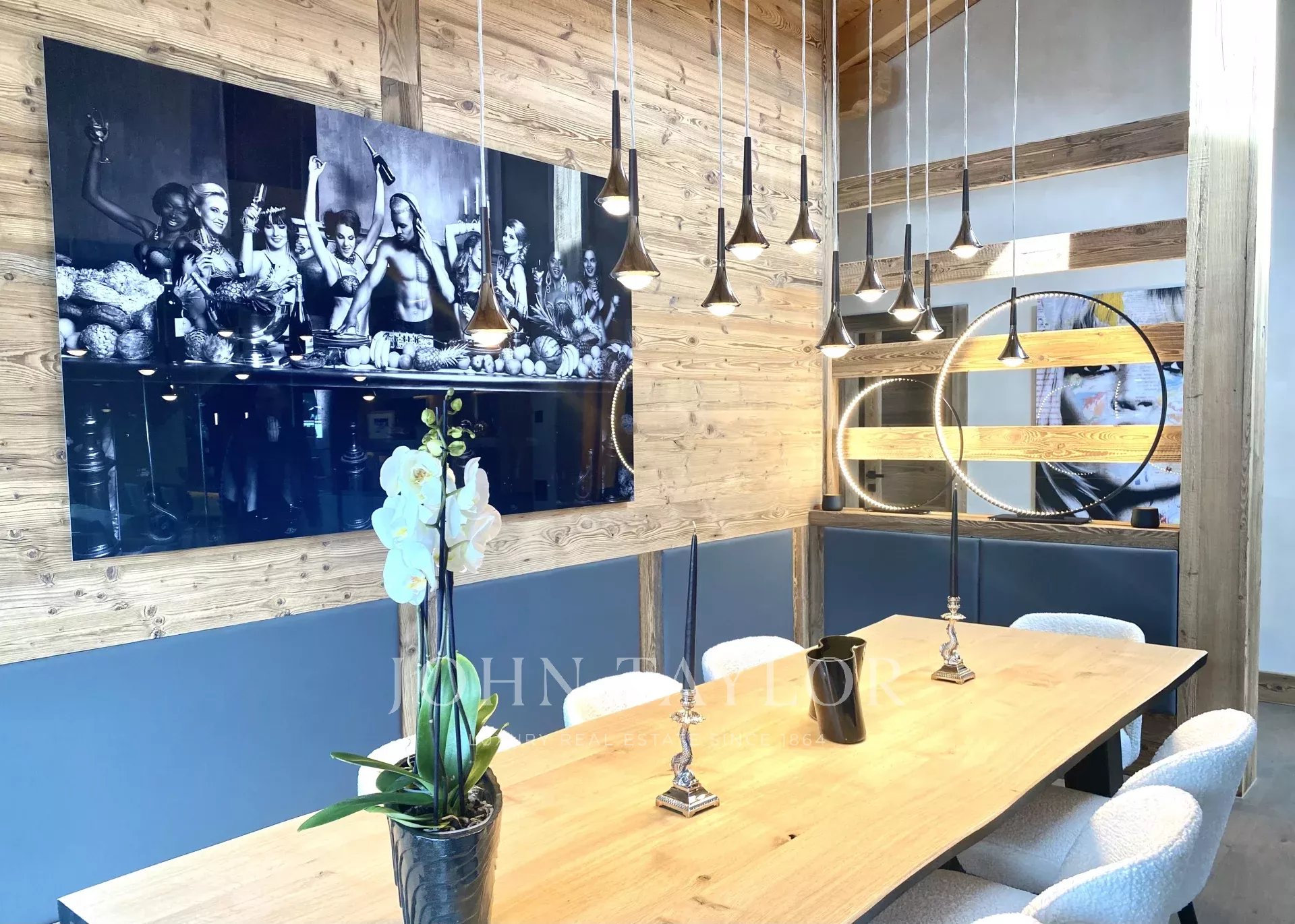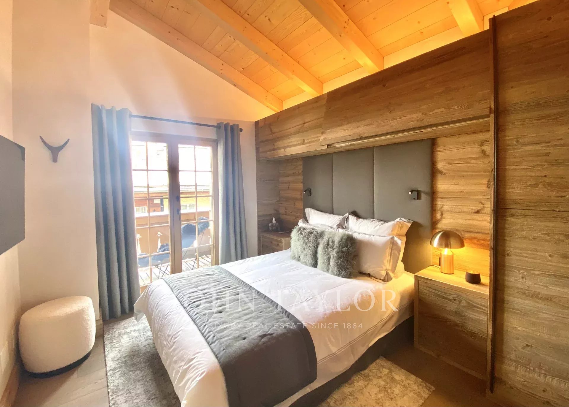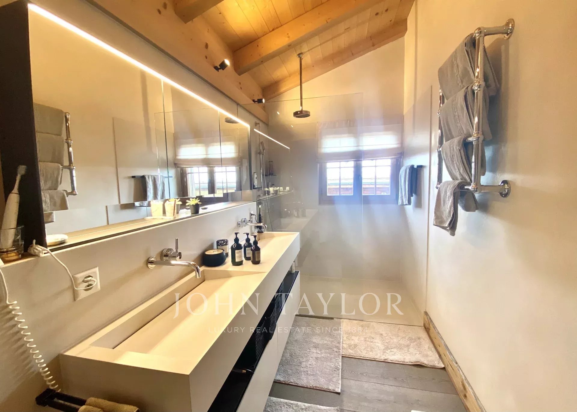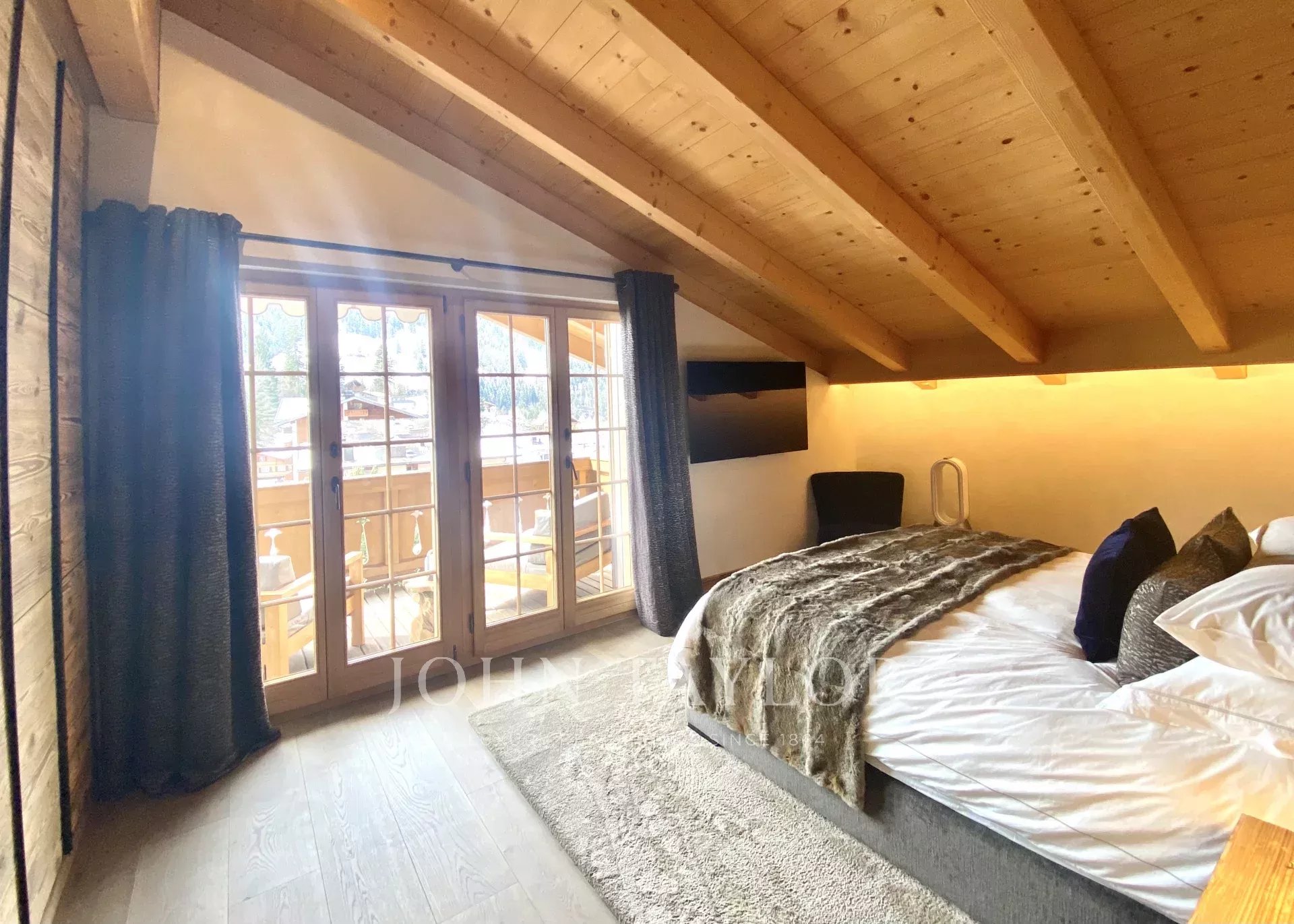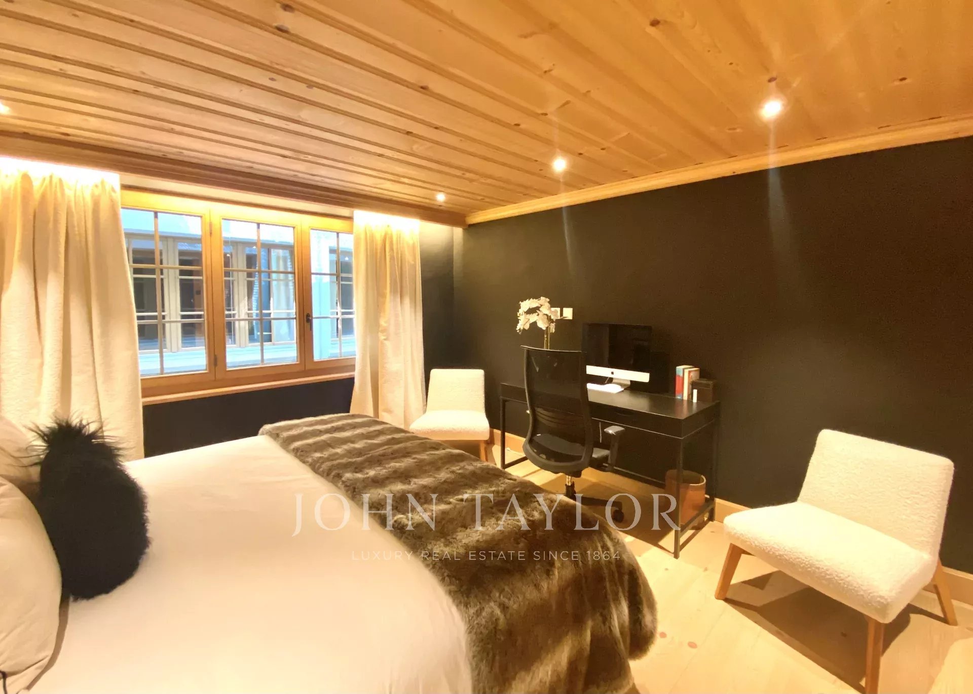 Dieses Penthouse befindet sich 20 Meter von der Promenade von Gstaad entfernt und besticht durch seine hohen Decken, den großen Wohnbereich und den grandiosen Blick auf Gstaad und die umliegenden Berge.