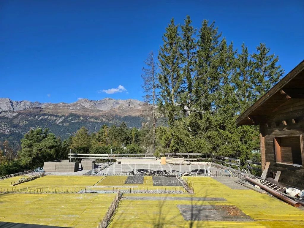 In einem ruhigen Wohnviertel gelegen, nur 5 Autominuten vom Zentrum von Crans-Montana entfernt, befindet sich dieses Projekt auf einem großen Grundstück von 1'412 m².