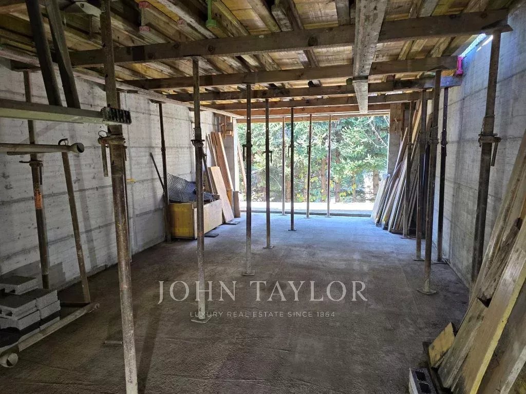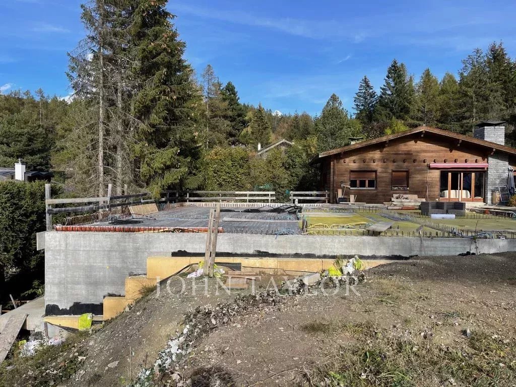 Ein Bauprojekt mit bereits erteilter Baugenehmigung wurde angenommen, um das bestehende Chalet zu erweitern und in ein luxuriöses Chalet von etwa 400 m² Wohnfläche in Zweitwohnsitznutzung umzuwandeln.