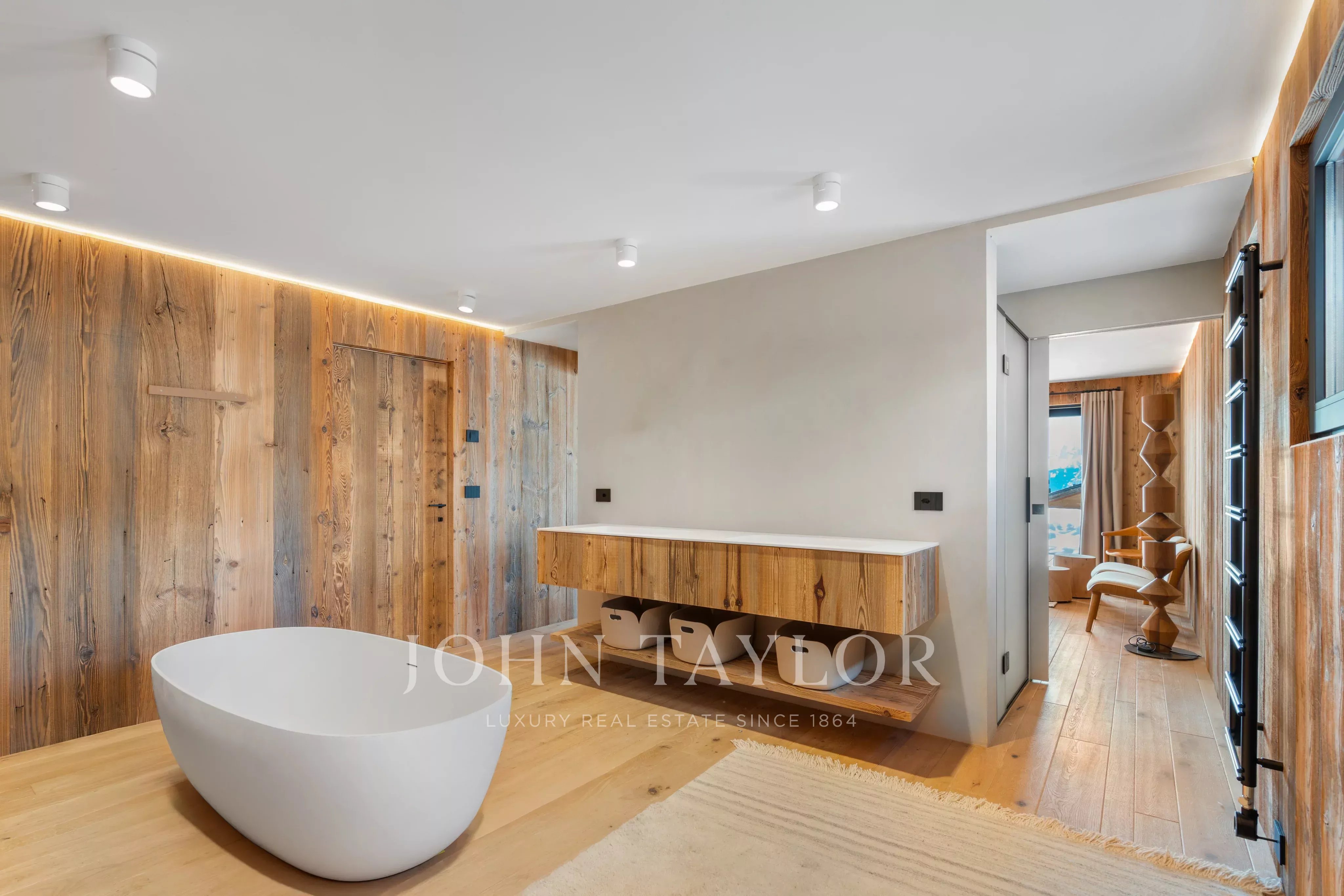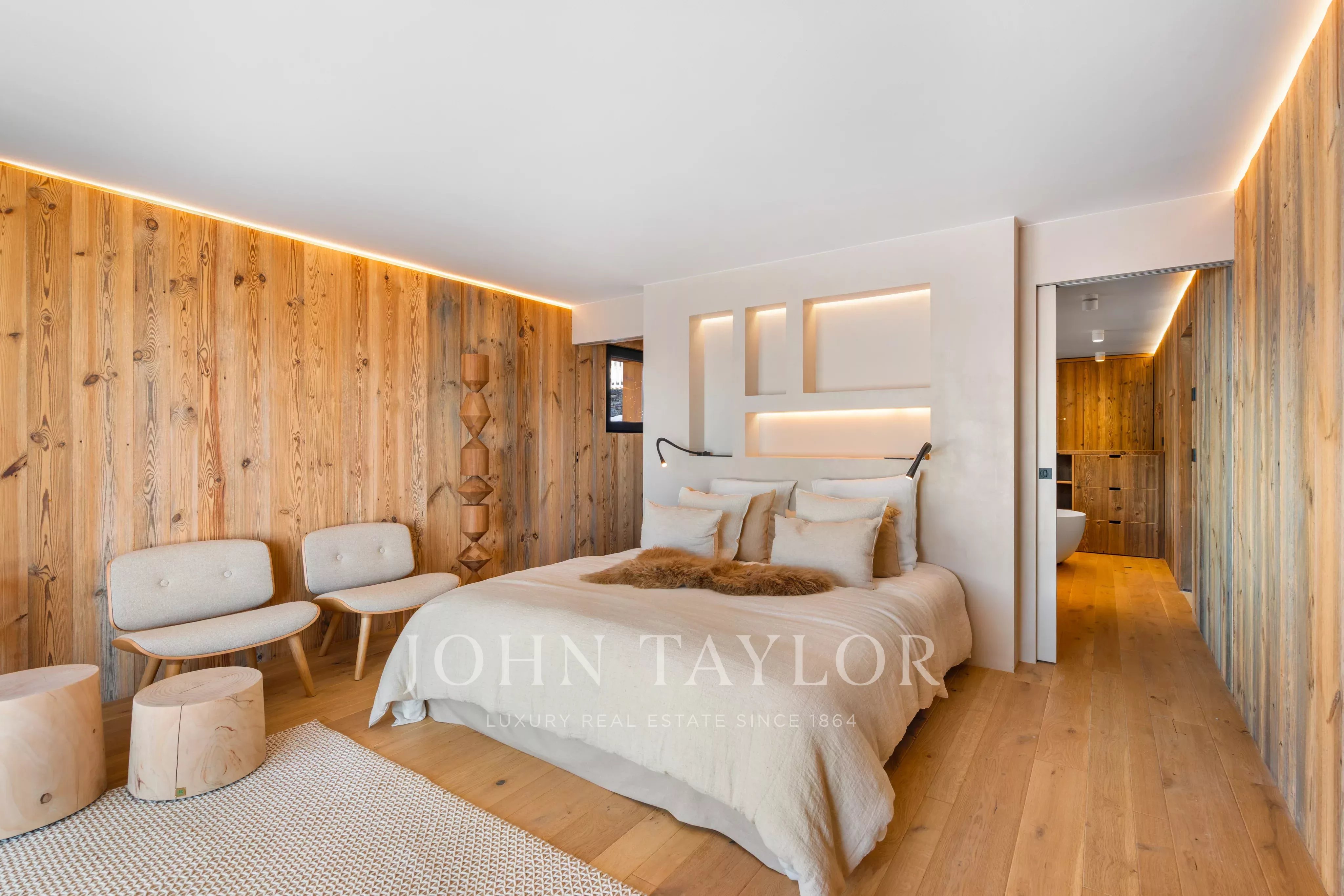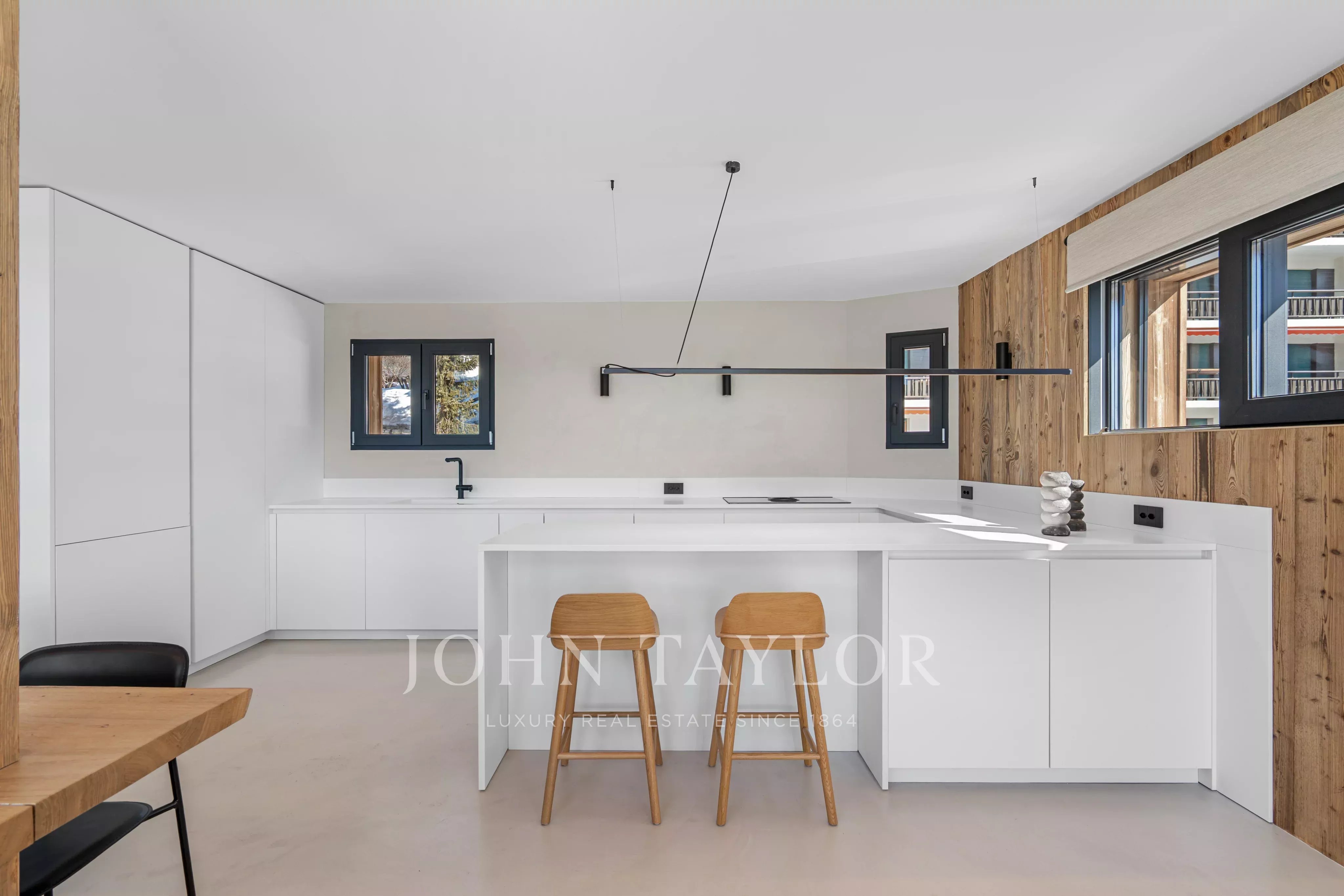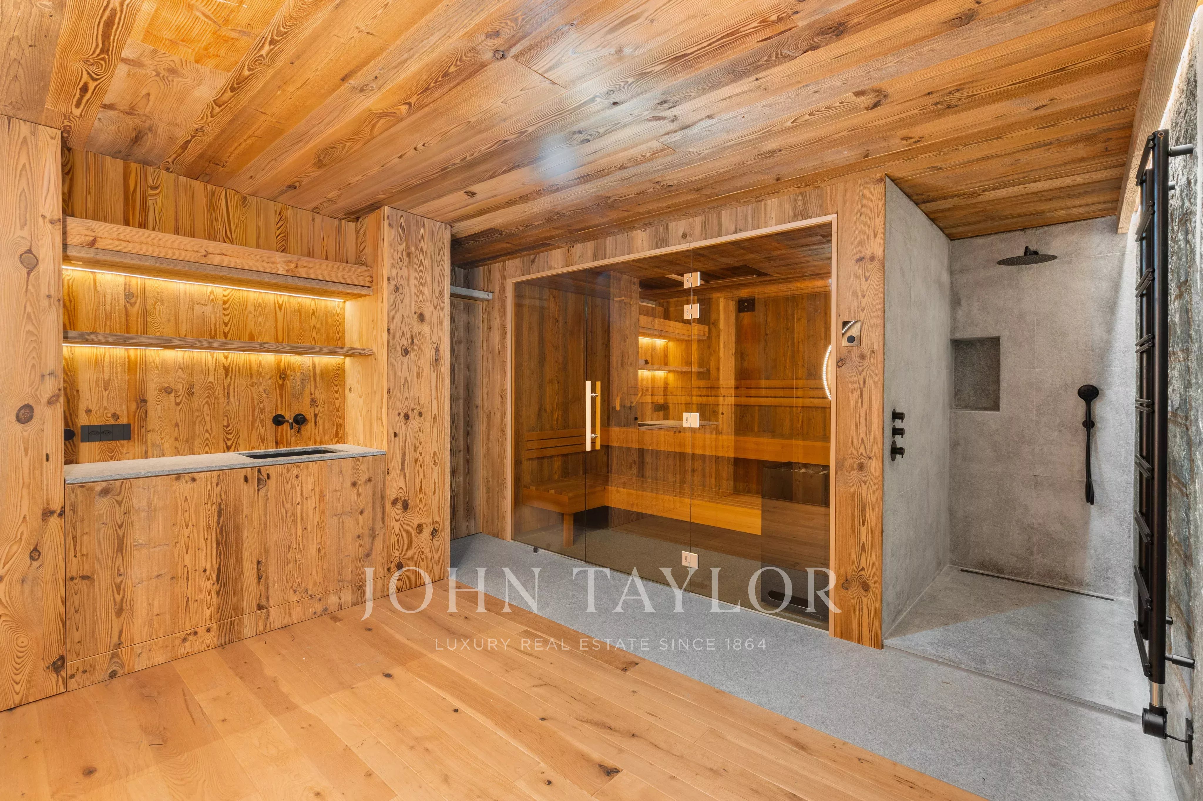 Das auf drei Ebenen verteilte Chalet besticht durch seine bemerkenswerte Helligkeit dank der großen Fensterfronten und der hohen Decken, die den Wohnräumen ein Gefühl von Offenheit und Eleganz verleihen, das in den Bergen selten anzutreffen ist.