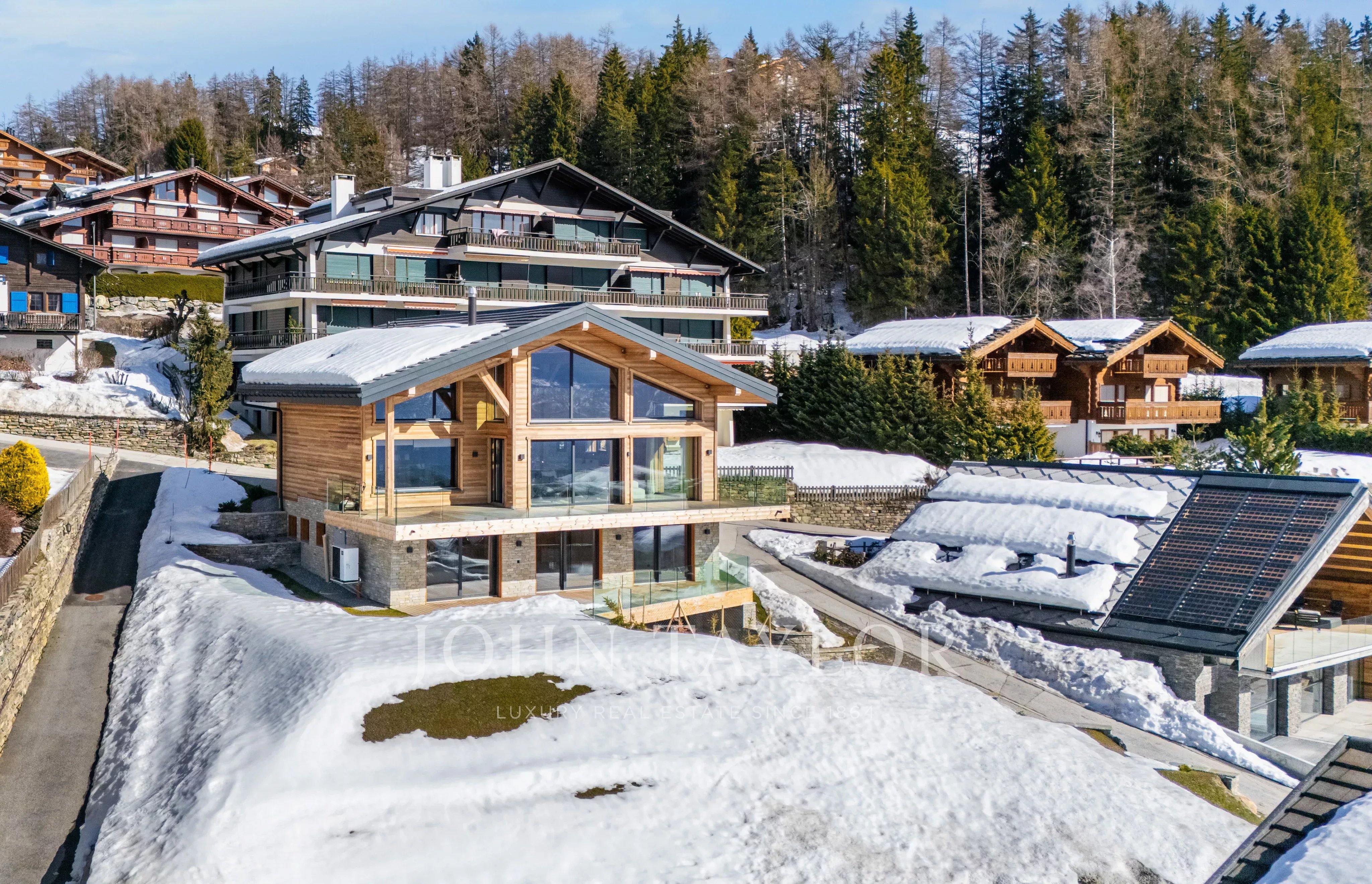 In einer privilegierten Umgebung in Crans-Montana gelegen, verkörpert dieses außergewöhnliche Chalet, das 2025 erbaut wurde, perfekt die Verbindung zwischen zeitgenössischer Architektur, großzügigen Volumen und hochwertigen Leistungen.