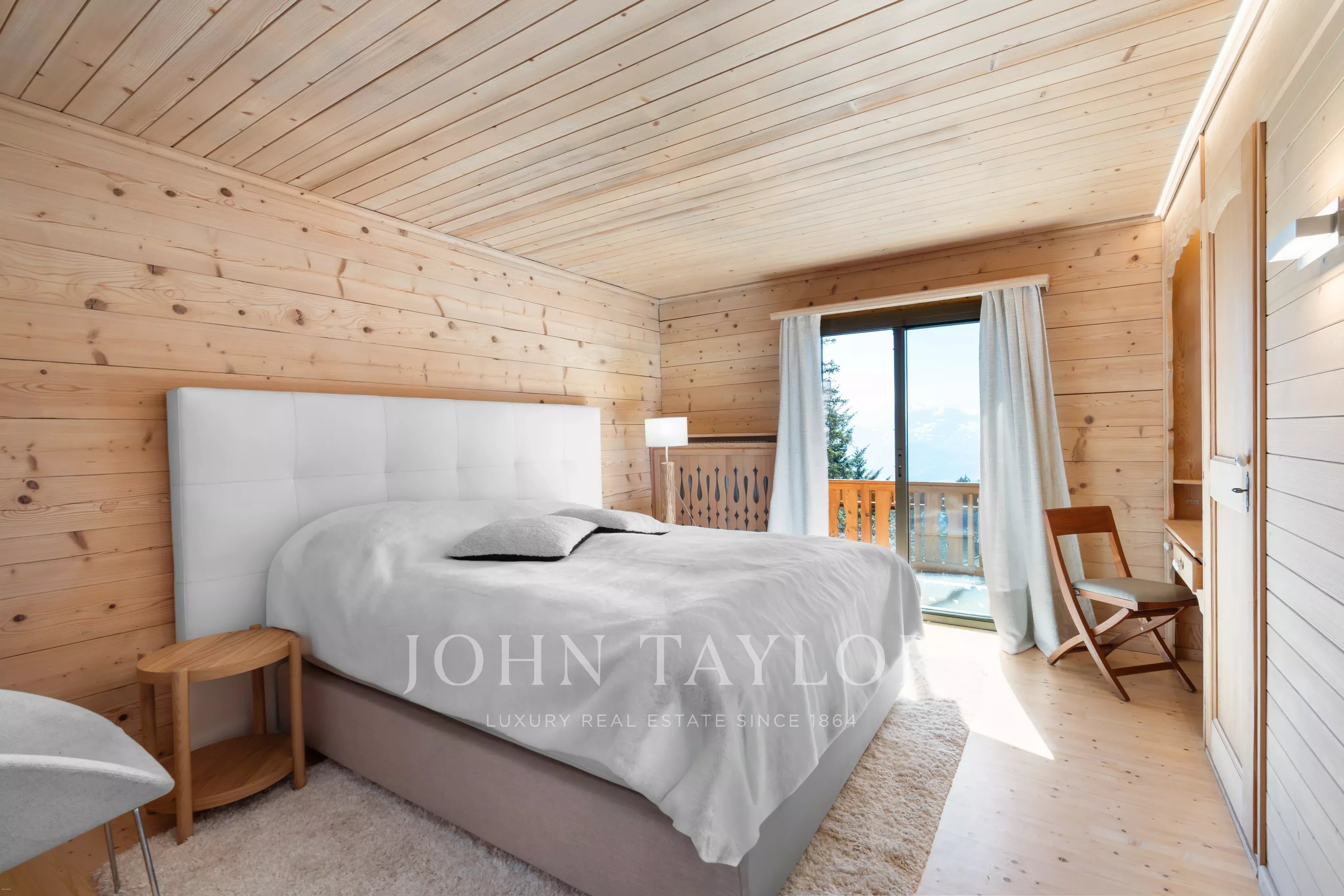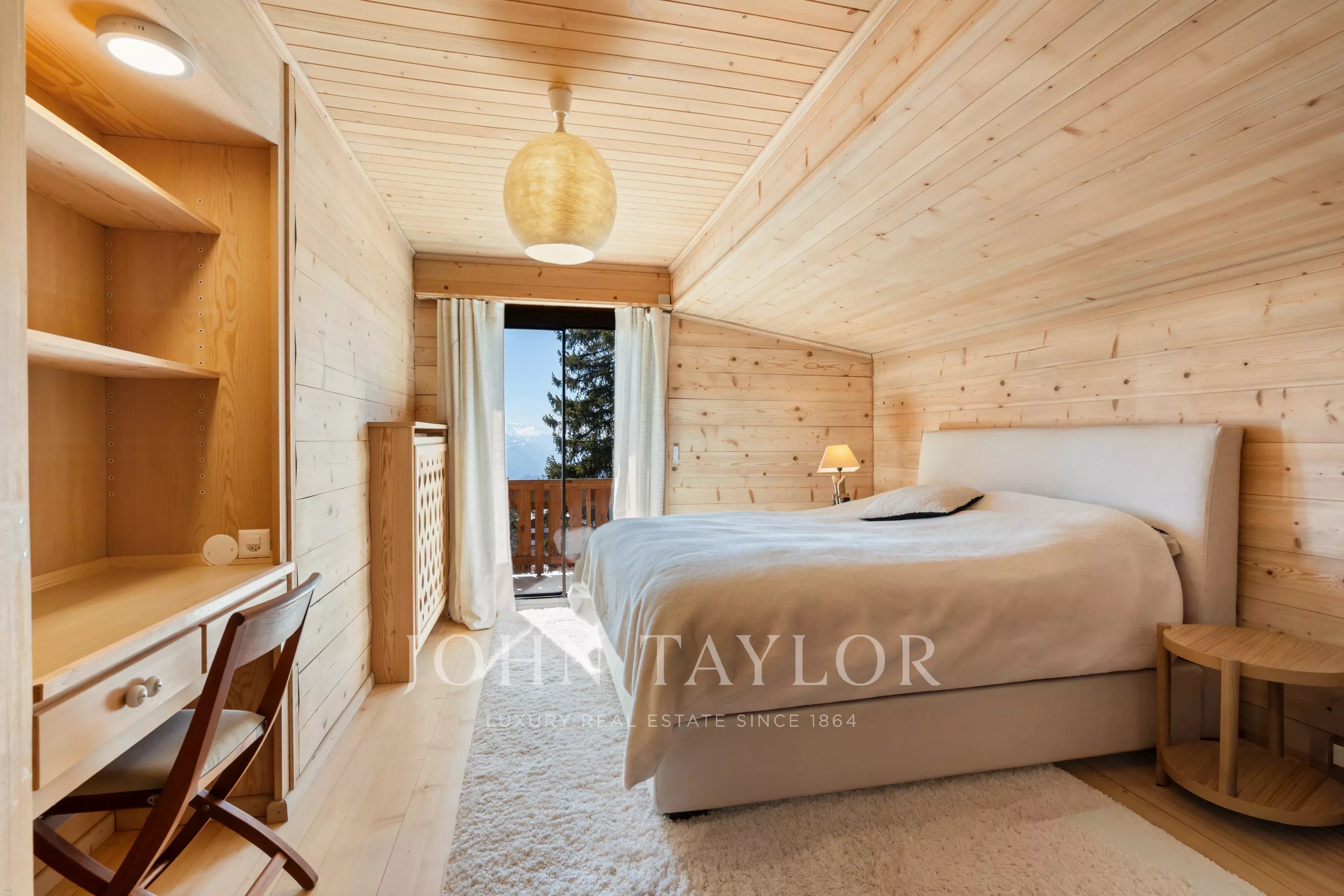Großzügiges Chalet mit 7 Schlafzimmern und 5 Badezimmern auf drei Ebenen, ideal für eine Familie, die einen Zweitwohnsitz in Crans-Montana mit zahlreichen Zimmern sucht und ein privilegiertes Wohnumfeld genießen möchte.