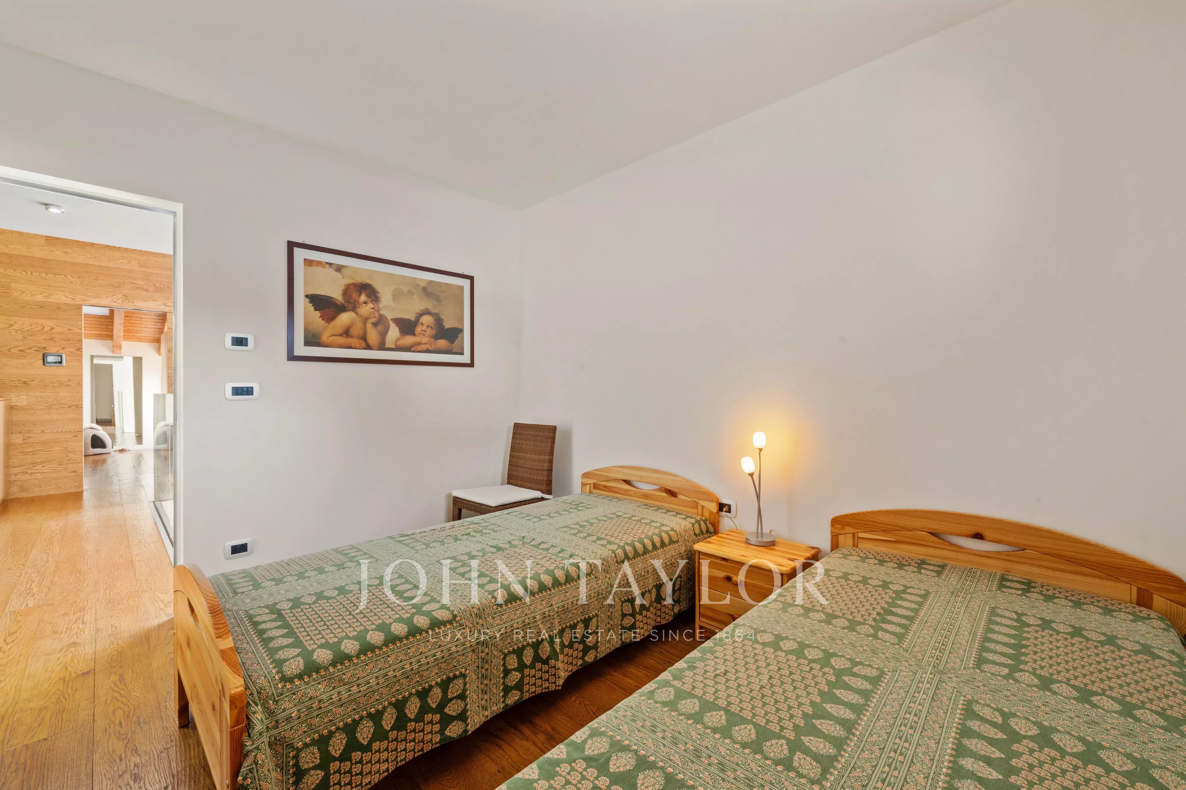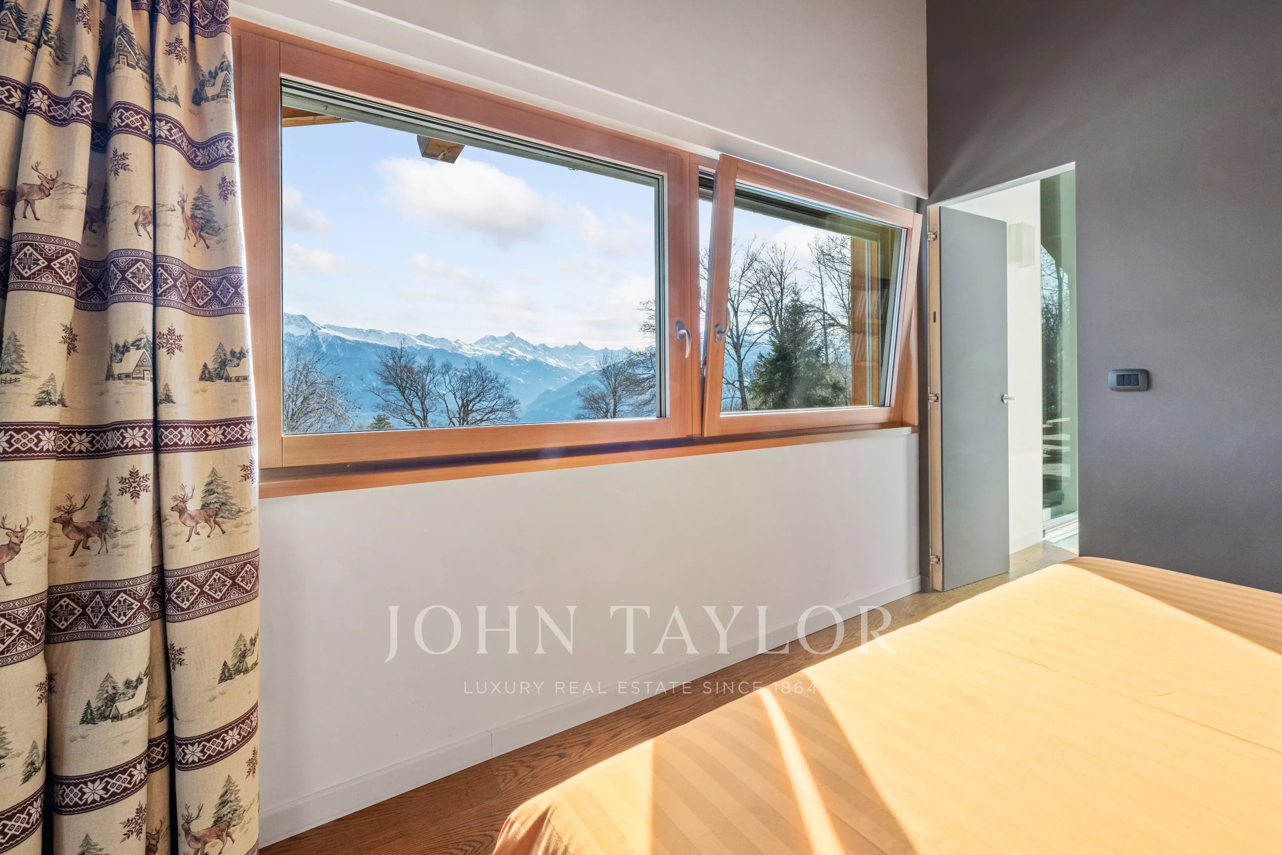 Dieses helle Chalet mit 3 Schlafzimmern und einem Büro vereint modernen Stil mit gemütlicher Atmosphäre und grosszügigen Raumvolumen und ist auf allen Etagen mit einem Lift erschlossen.